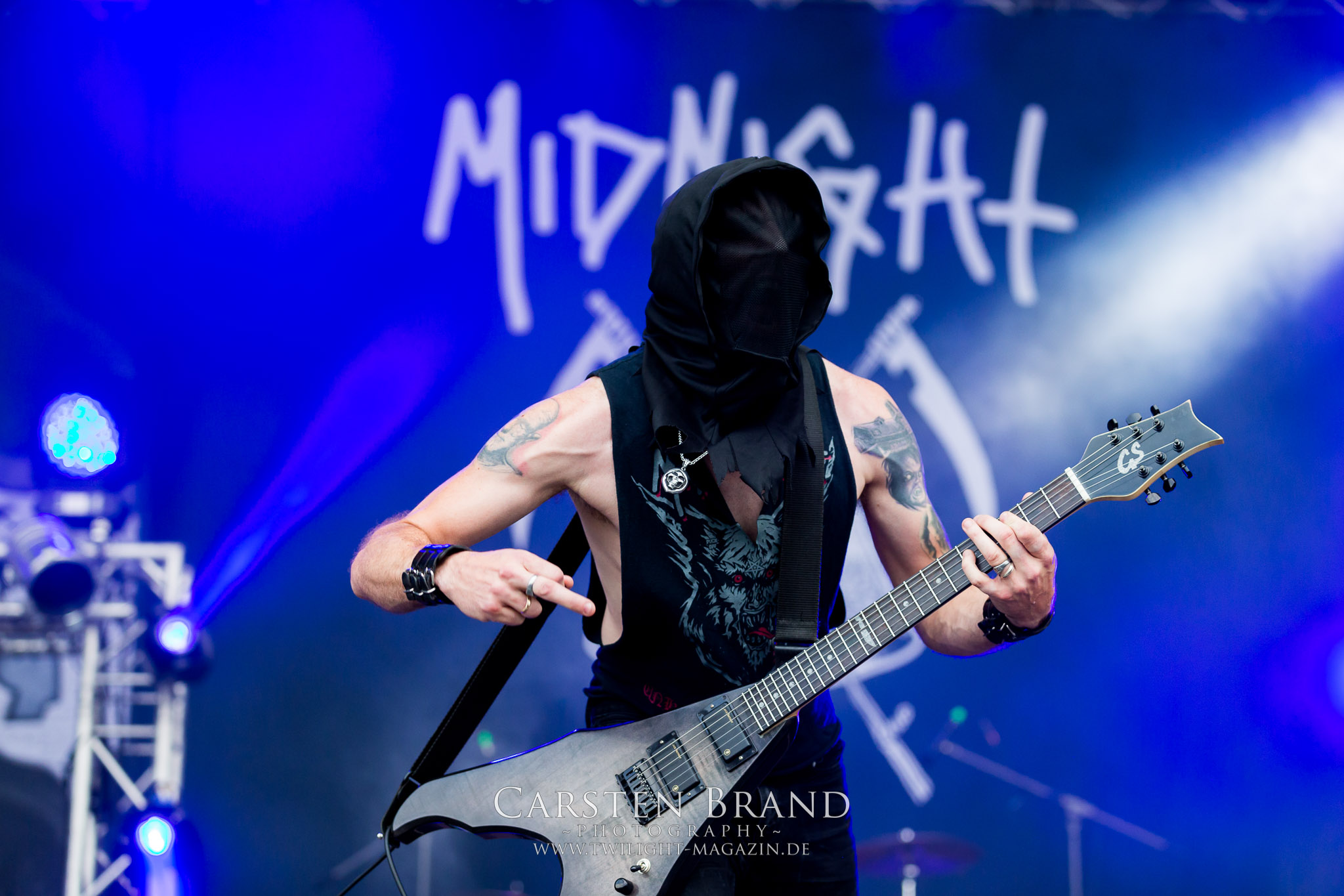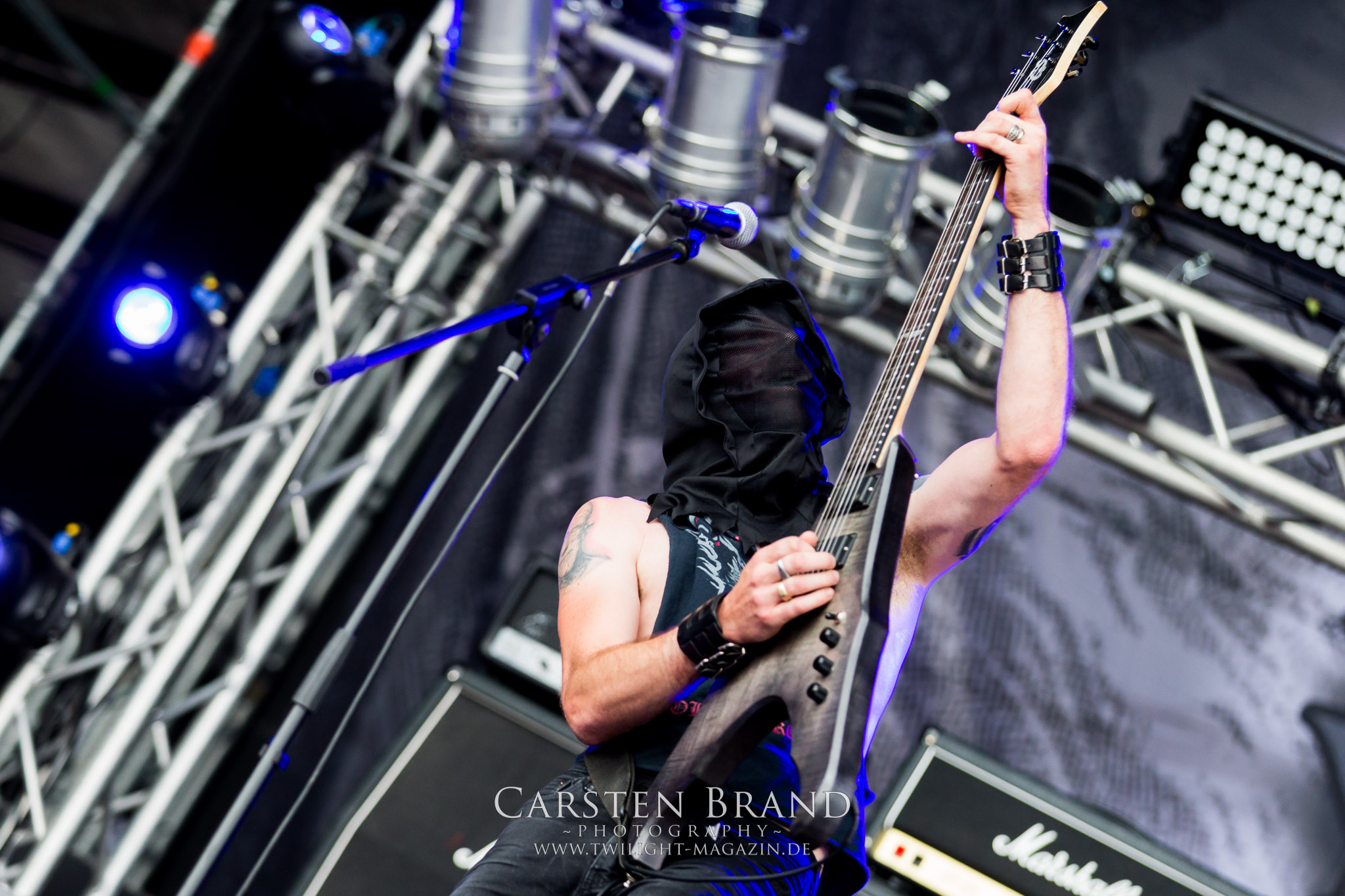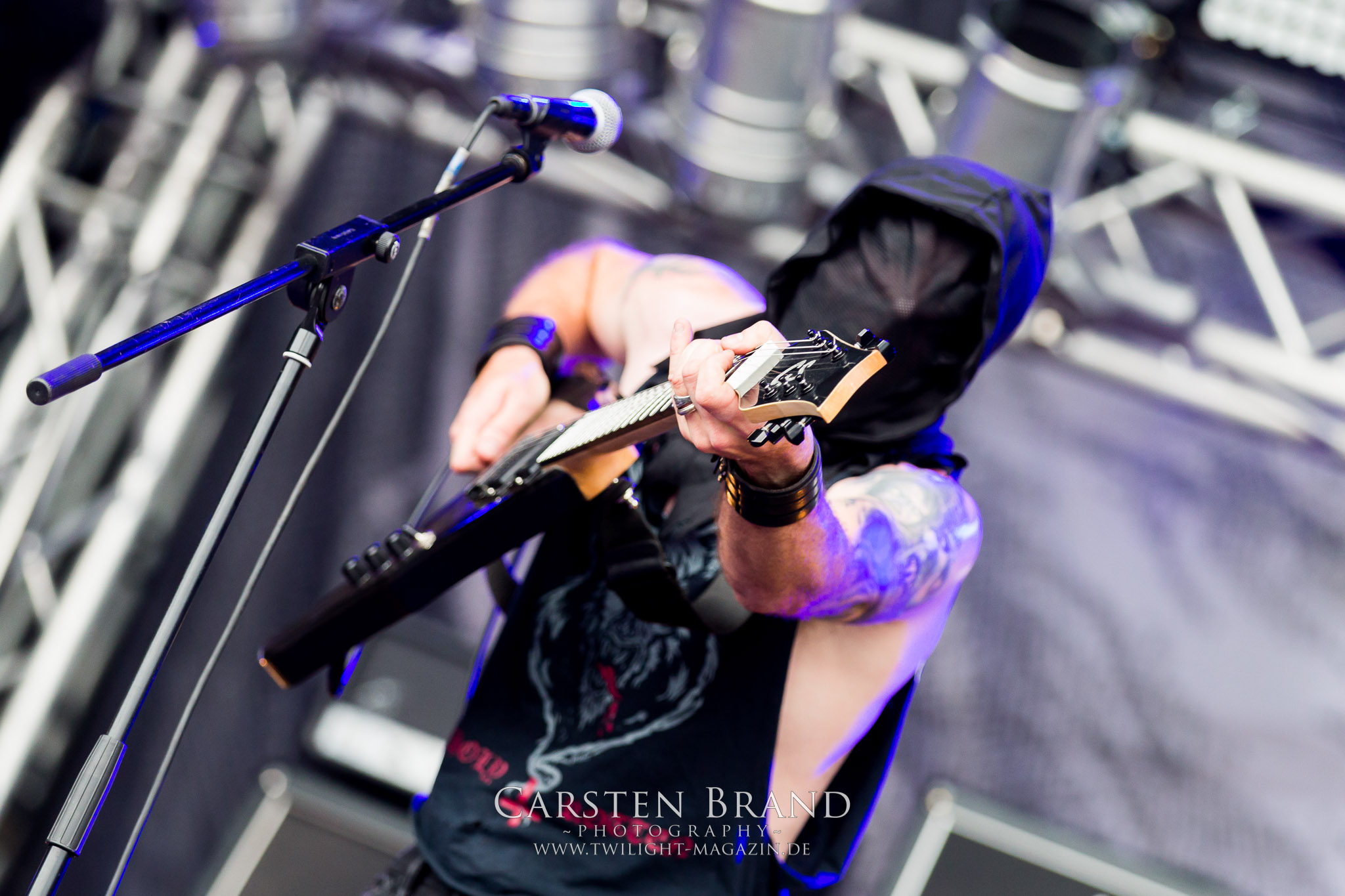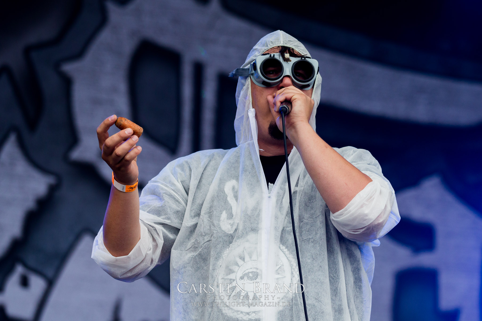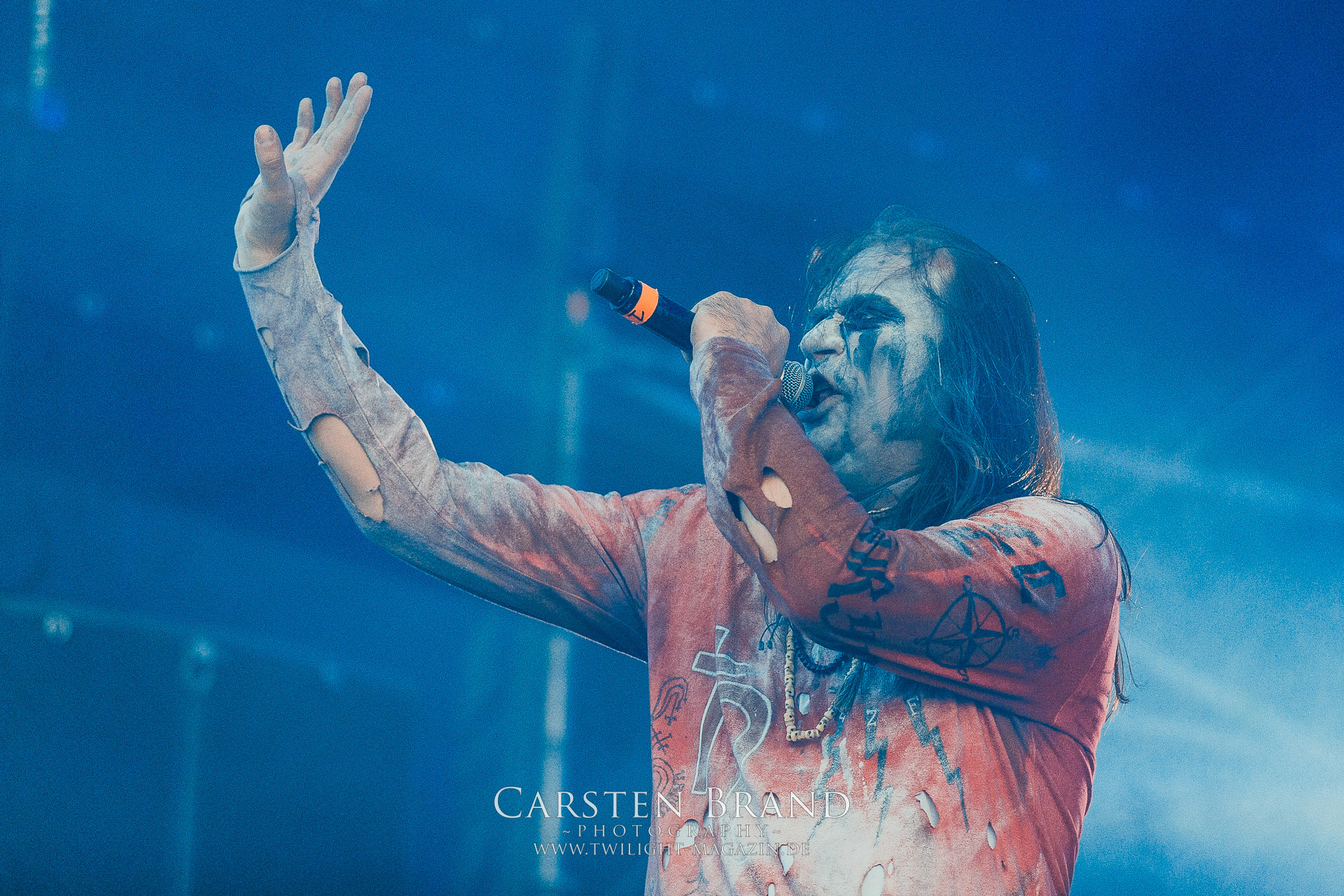 Zeit für die unverwüstlichen deutschen Thrash-Giganten DESTRUCTION. Die Mannen um Frontshouter Schmier haben ihr neues Album „Born to Perish“ im Gepäck und sind gierig darauf, die neuen Sachen auch live zu zocken. Untermalt werden die Songs wie „Betrayer“ von eine mächtigen Feuershow. Unter dem Motto „Thrash ´til Death“ zeigt der Vierer, dass über 30 Jahre alte Songs wie „Bestial Invasion“ immer noch richtig zünden, auch wenn ein großer Anteil des Publikums damals wahrscheinlich noch flüssig war. Direkt im Anschluss trifft der geneigte PARTY.SAN-Gänger auf alte Bekannte, denn NAGLFAR sind schon zum fünften Mal auf dem unheiligen Acker anwesend. Und auf selbigen befinden sich zumindest gefühlt mehr Personen als bei Destruction, um dem melodischen Black Metal zu huldigen. Dabei kommt auch die endlich vorhandene Dunkelheit der nun besser zur Geltung kommenden Lightshow zugute. (MS) Bei IMMOLATION zog ich mich noch einmal kurzzeitig ins Camp zurück, um für die Finals im Zelt und auf der Hauptbühne gewappnet zu sein. MALOKARPATAN gewinnen auf jeden Fall den Preis für die kauzigste Performance des Festivals. Die Slowaken werden gerne in einem Atemzug mit den Tschechen von Master´s Hammer genannt. Was vom Kauzigkeitsfaktor hinkommt, hinkt musikalisch gewaltig. Denn die Herren aus Bratislawa sind viel weniger avantgardistisch unterwegs, als im klassischen Heavy Metal, Black Metal, Thrash und im Rock ´N´Roll verwurzelt. Was Malokarpatan aus diesem Gebräu köcheln ist nicht nur in der Konserve deftig, sondern geht von der Bühne direkt in die Magengrube, in Bein, Schädel und Nacken. Was für eine wilde und chaotische Reise durchs "Nordkarpatenland" mit weintrinkenden Heavy Metal-Romantikern samt Vorliebe für klassische Märchen und Hörspiele.