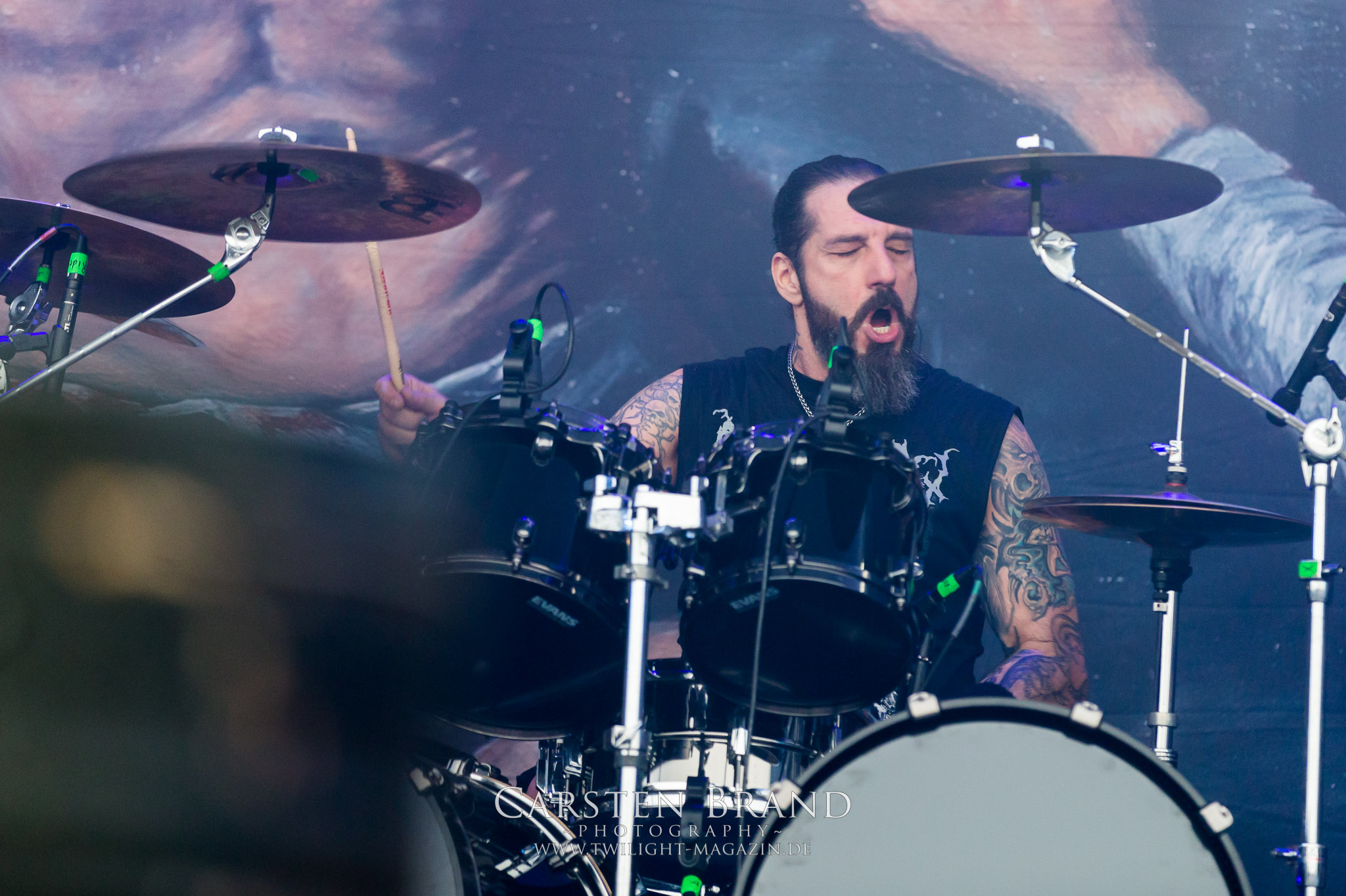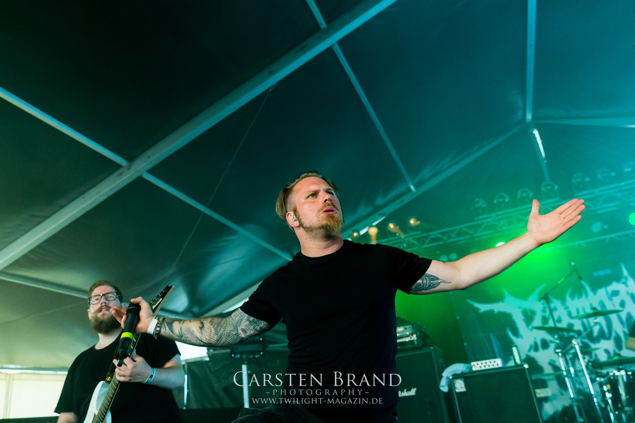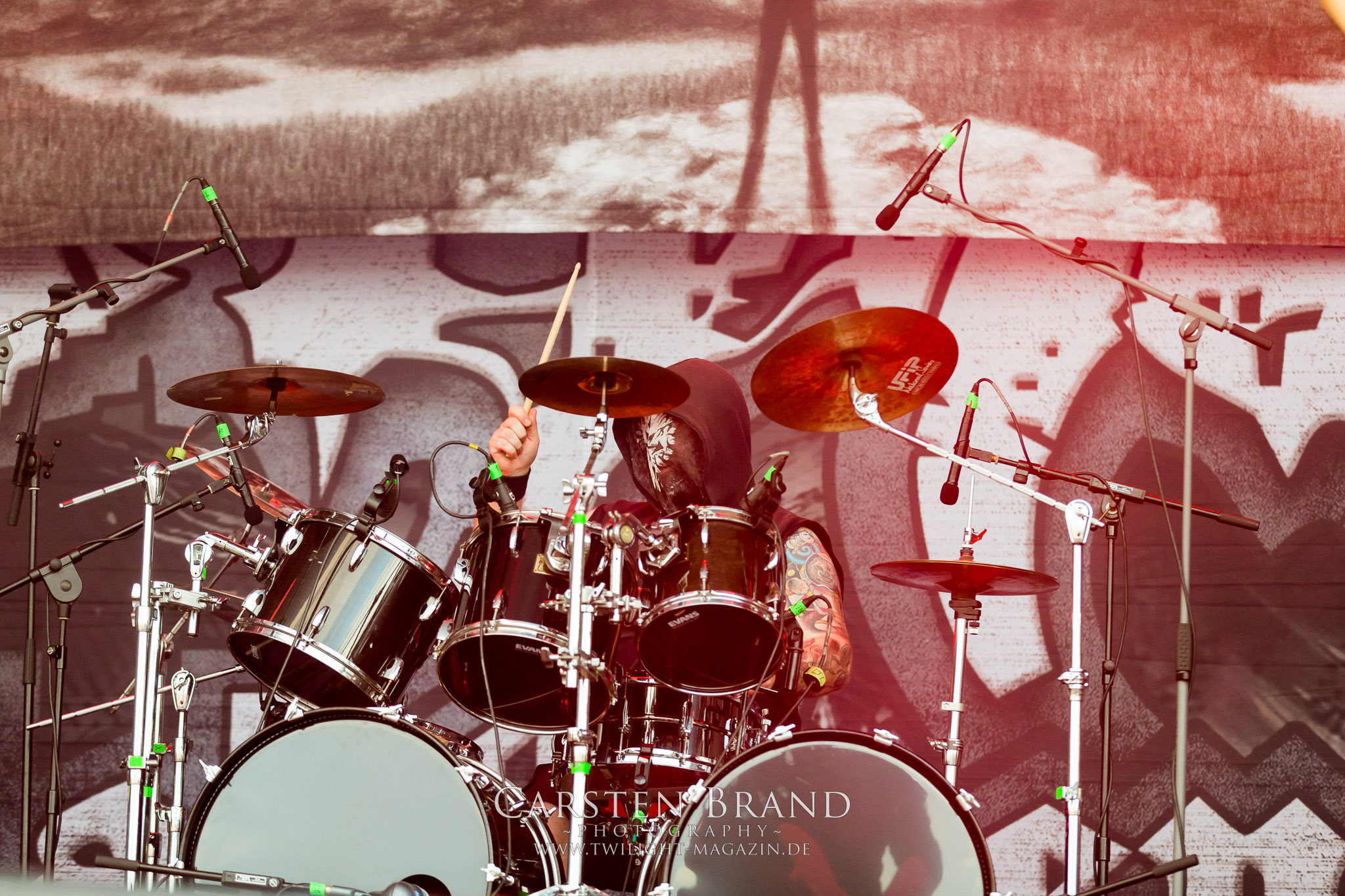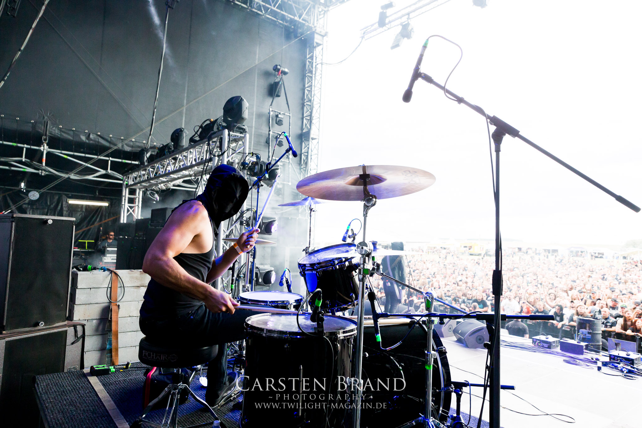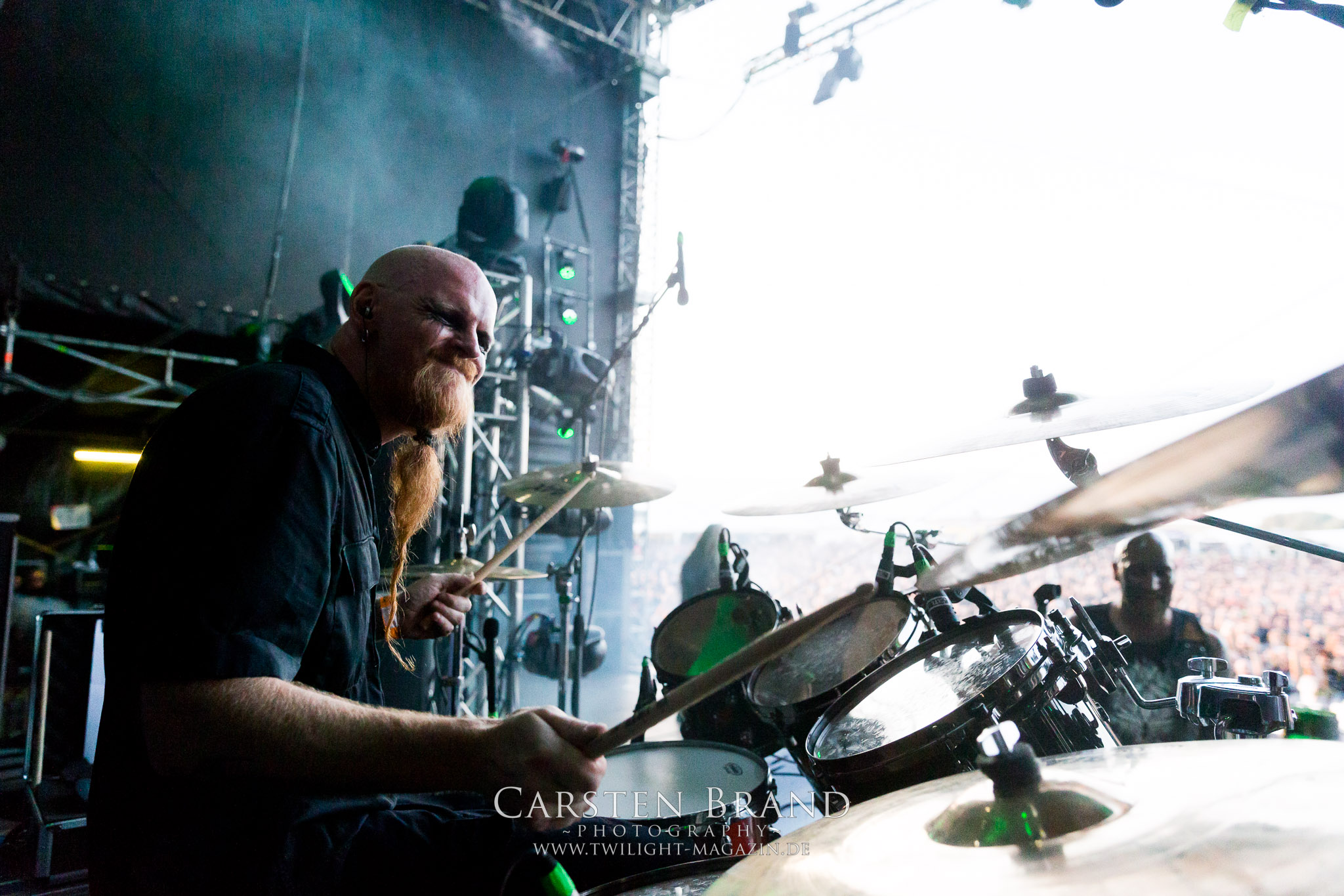 Nachdem die Schweden von Soilwork aus meiner Sicht einen unerwartet positiven Farbtupfer ins Billing setzen konnten, wird es bei den Landsleuten von CRAFT schwarz-weiß. Nihilistischer Black Metal mit Antihaltung as fuck, gespielt von dürren, ungesund aussehenden Personen, die sich in klirrender Gitarrenatmosphäre suhlen. Ich finde das Ganze wesentlich stimmiger, als den Auftritt von Carpathian Forest im Vorjahr. Dennoch kommt der Sound der Band, die sich musikalisch seit ihren Anfangstagen beachtlich entwickelt hat, insbesondere auf dem letztjährigen Werk "White Noise And Black Metal" wesentlich intensiver rüber. Eine Steilvorlage für ASCENSION, deren Gig auf diesem Slot eher Herausforderung als Bürde zu sein scheint. In Sachen Atmosphäre und Wucht steht die an diesem Tag namentlich vermeintlich kleinste Band auf der Hauptbühne den Kollegen um nichts nach. Die Band aus Bayern, die in der Tradition von jüngeren Akteuren wie Bölzer, Ruins Of Beverast oder Essenz steht, schafft es tatsächlich über weite Strecken mit der sprichwörtlichen, ätherischen Atmosphäre von "Under Ether" zu fesseln. Für mich neben Runemagick eine der positiven Überraschungen des Donnerstags.(JD)
