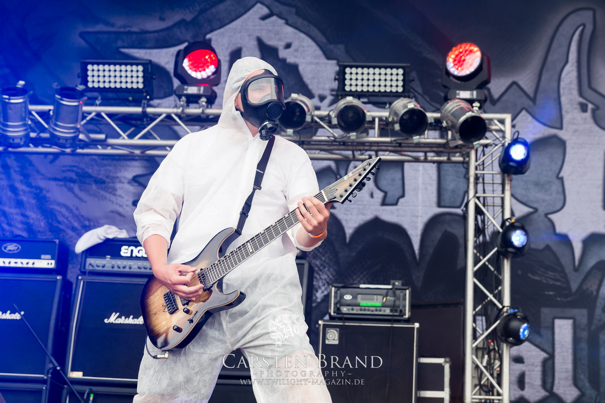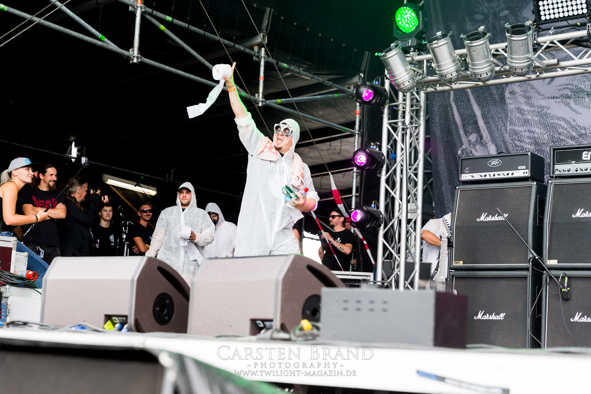 Bedingt durch den späte Ansetzung des Headliners am Abend war die Nacht kurz. Und doch gilt es für mich fit zu sein, denn am heutigen Freitag reihen sich für mich viele persönliche Highlights aneinander, die nur wenig Zeit zum Verschnaufen lassen. Erwartungsfreudig blicke ich einem Tag zwischen Musik, Party und hoffentlich unfallfreiem Genuss von Craft Bier, Cubra Libre und White Russion entgegen. In Wallung kommt man zur Mittagszeit traditionell am besten mit Grindcore. Die Tschechen von GUTALAX sind zum zweiten Mal beim PARTY.SAN METAL OPEN AIR dabei und auf diese Ehre richtig Stolz, was man der Band nicht nur anhört, sondern auch ansieht. Was folgt ist ein mittägliches Intensiv-Training in Sachen Klobürsten-Polonäse, einer Wall Of Death mit ganz viel Liebe, ausdauernden Kreiselpits und Ruderregatten vor der Bühne, während grooviger und stampfender Goregrind mit unkenntlichem Sangesgegurgel über Körperöffnungen-, -flüssigkeiten und allerlei eklige Missgeschicke die musikalische Untermalung dazu bilden. Krass, welch´ beachtliche Massen Gutalax als Opener auf das Infield ziehen. Inwieweit das Ganze tatsächlich musikalischen Wert hat, sei einmal dahin gestellt. Spaß macht es aber auf alle Fälle und es hebt den Blutdruck sowie die Laune zum Auftakt. Nach der Frühschicht geht es übrigens für die Tschechen direkt weiter zum nächsten Gig. (JD)