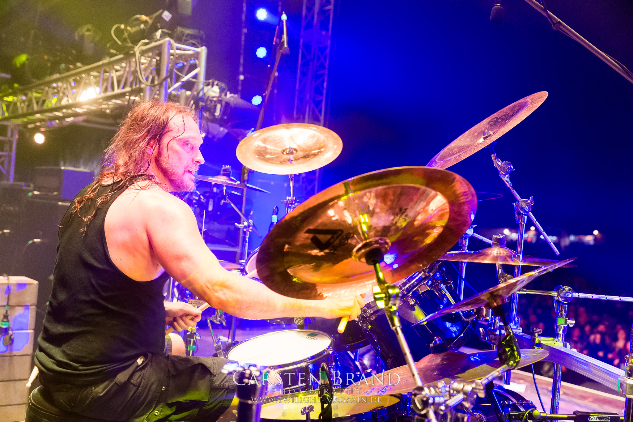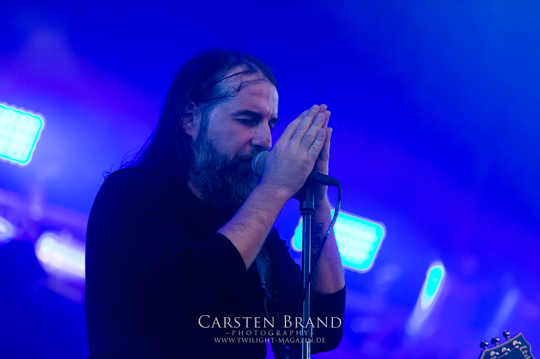 Später am Abend haben sich SOLSTAFIR dann auf die Fahnen geschrieben, „Love and Heavy Metal“ zu verbreiten. Dem langen Festivalstress und der ruhigen Musik geschuldet ist die Menge nicht mehr ganz so enthusiastisch und lässt sich eher von der Musik treiben. Beim letzten Song „Goddess of the Ages“ inklusive Feuereinsatz wird dann aber doch mitgesungen und die Band wird gebührend verabschiedet. Zum Abschluss des diesjährigen PARTY.SAN gibt es dann noch einmal ein besonderes Schmankerl: Nach der obligatorischen Danksagung der Veranstalter betreten BLOODBATH zum dritten Mal in ihrer Karriere die thüringische Bühne. Einmal mehr ist es Paradise Lost’s Nick Holmes, der bei der Death Metal-Allstar-Combo die Stimmbänder stärker strapazieren darf als bei seiner Hausband. Sein Können stellt er dann auch gleich bei dem noch für seinen Vorsänger geschriebenen Song „So you die“ unter Beweis. Auch bei den Peter Tägtgren-Songs „Eaten“ und „Cancer of the Souls“ lässt er nichts anbrennen und die Backing-Band aus Katatonia, Craft- und Opeth-Mitgliedern hat auch sichtlich ihren Spaß.(MS)