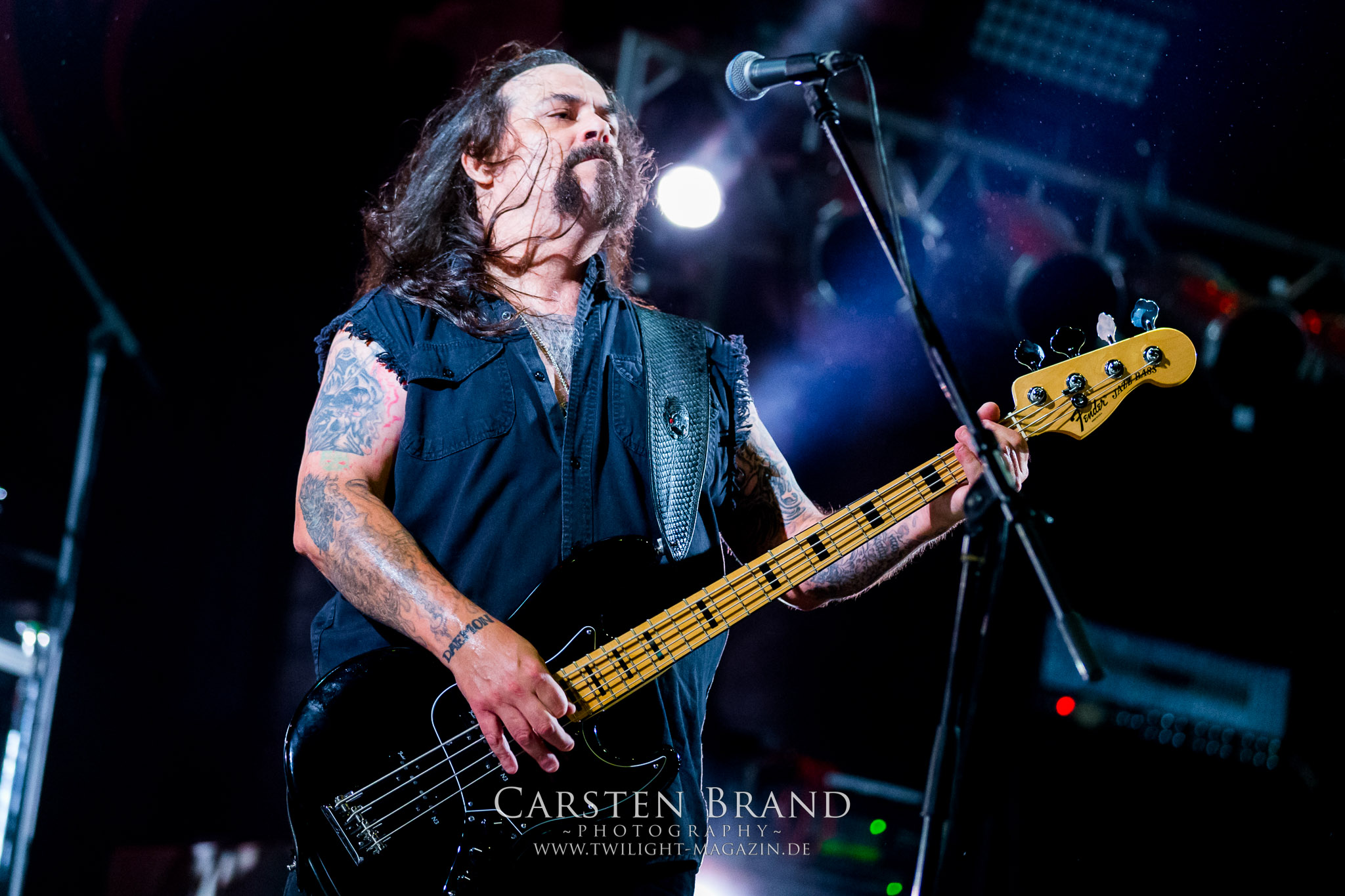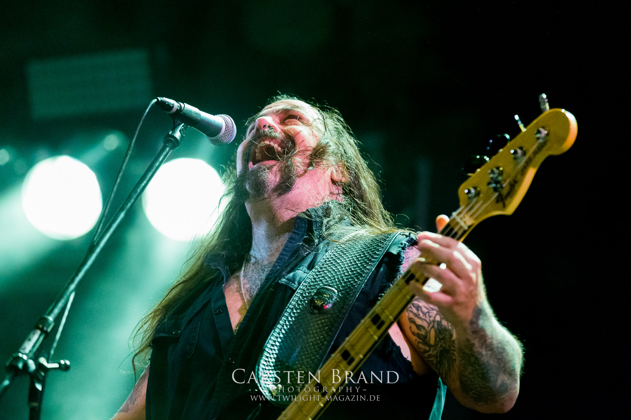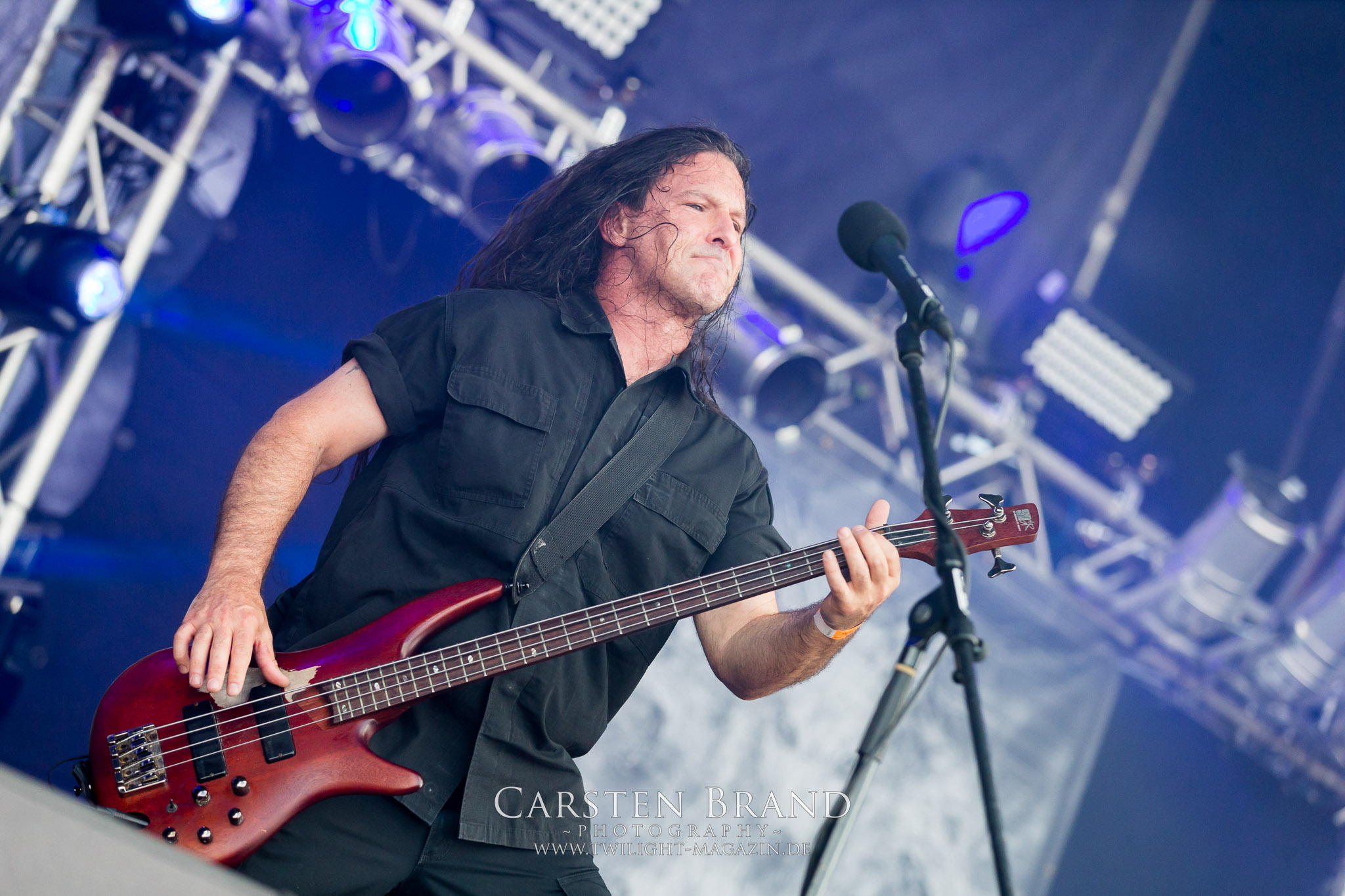 Die NWOBHM-Legende Satan tritt ohne Steve Ramsey mit nur einem Gitarristen an, der aus persönlichen Gründen passen muss. Dadurch driften die verspielten Songs noch mehr in Richtung Classic Rock ab. Obwohl mit Graeme English ein weiteres Skyclad-Mitglied mit an Bord ist werde ich mit dem hektischen Heavy Metal der gestandenen Mucker auf Dauer nicht warm und noch weniger kann ich die Kollegen des Deaf Forever verstehen, bei denen das aktuelle Album "Cruel Magic" zum Album des Monats gekürt wurde. Sänger Brian Ross wirkt anfangs auch nicht gerade übermotiviert. Trotzdem ist eine Combo wie SATAN einmal mehr Farbtupfer und Würze im Billing des PARTY.SAN METAL OPEN AIRs. Nach kurzzeitigen Aussetzern, mit allerlei Unbehagen und Schweißperlen auf der Stirn und anderswo, die mir die Rache Montezumas beim "Mittagsmahl" am Asia-Stand eingebrockt hatte, habe ich glücklicherweise keine weiteren Einschränkungen, außer einen Darm, der sich nach einem Reinraum anfühlt (Grüße übrigens an die Jungs von Gutalax *Zwinkersmiley*!). Insofern bin ich froh, dass ich mich den Berlinern von CARNAL TOMB nun ohne weitere körperliche Ablenkung widmen kann. Das Quartett aus der Hauptstadt gehört zu der in der Breite sehr gut aufgestellten zweiten Reihe an Todesmetall-Combos aus deutschen Landen. Der klassische und fulminante HM2-Sound dröhnt und sägt live aus meiner Sicht sehr viel besser und energetischer von der Bühne als auf den Studioaufnahmen, denen ich im Ansatz nicht soviel wie mein Kollege Rudi vom Hotel 666 abgewinnen kann. Aber es ist schon beeindruckend, wieviel Kraft und Willen CARNAL TOMB in diese halbe Stunde auf der Zeltbühne legen. Und das wird vom Publikum auch entsprechend honoriert. (JD)