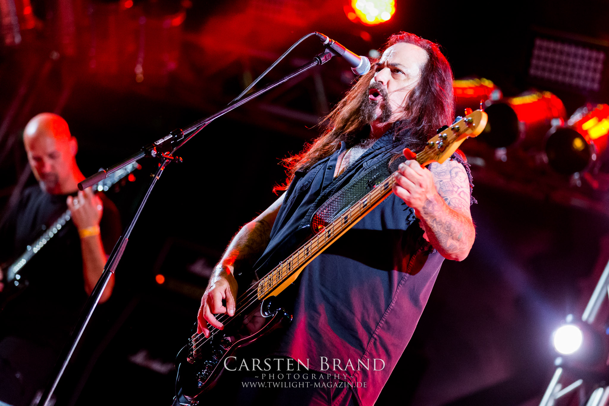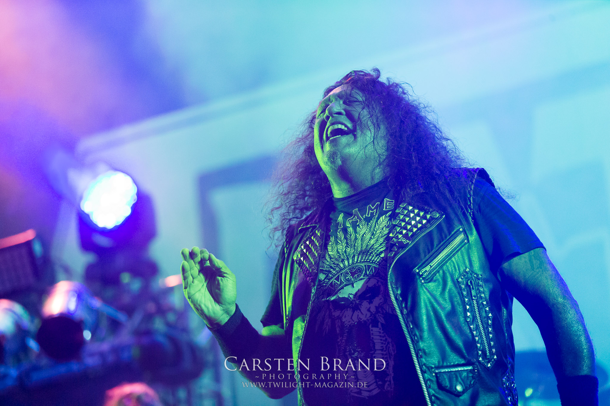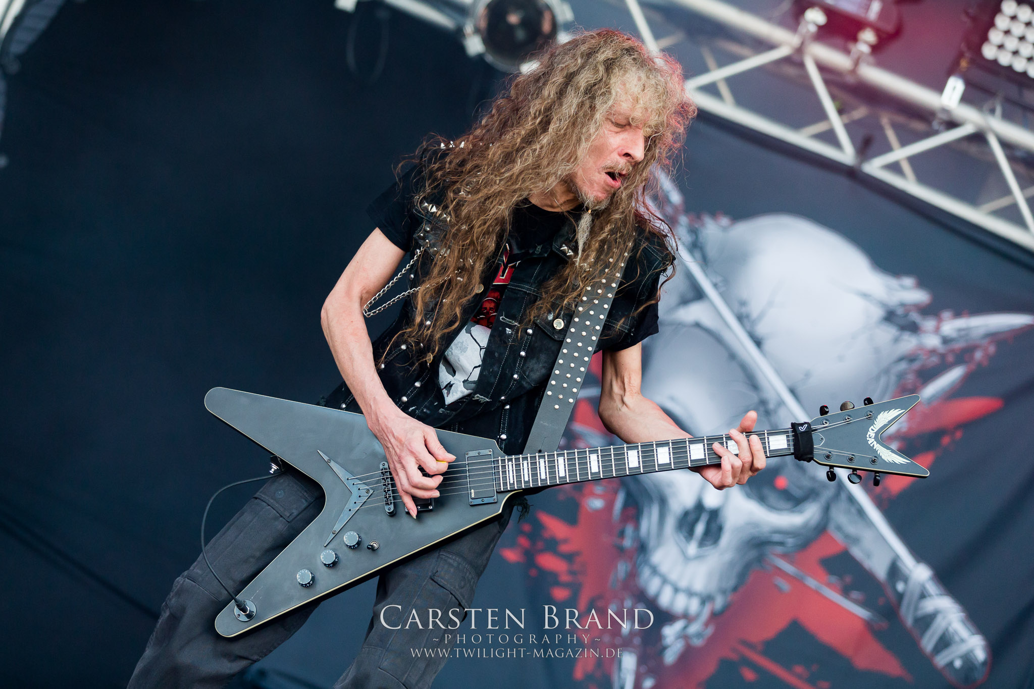 Dass Glen Benton und DEICIDE tatsächlich in Schlotheim antreten, das glaube ich erst, als sie tatsächlich auf der Bühne stehen. Ich muss zugeben, dass ich nicht viel erwartet hatte. Zumal ich kein Experte für die Ami-Deather bin, obschon ich "Once Upon The Cross" nicht nur aufgrund des zynischen Artworks liebe, viele Jahr rauf und runter gehört habe und selbst heute noch gerne auflege. Die Klassiker aus eben jenem Album bilden dann doch tatsächlich das Gerüst eines fett groovenden und stampfenden Sets. Alte amerikanische Todesmetall-Schule, wie sie besser nicht zelebriert werden kann. Ich bin nicht nur überrascht, sondern wirklich beeindruckt von DEICIDE. Dem göttlichen Gegenspieler von Satansbraten Benton scheint das Treiben in Schlotheim jedoch etwas zu weit zu gehen, so dass er kurzerhand mal die Schleusen öffnet, um das entfachte Höllenfeuer wieder etwas herunter zu kühlen. Wobei das feuchte Spektakel pünktlich zum Headliner auch schon wieder vorbei ist. TESTAMENT sind ein Segen für dieses Festival und ganz nebenbei eine der herausragendsten Thrash Metal – Formationen dieses Planeten. Rein musikalisch spielen Testament auf dem PARTY.SAN METAL OPEN AIR in einer anderen Liga. Wie ein atomar getacktetes Uhrwerk brennen Chuck Billy, Gene Hoglan, Alex Skolnick und Konsorten ein Feuerwerk ohne jeglichen Firlefanz und überflüssige Ansagen ab. Jeder Song ist eine Eruption an erhabener Spielfreude, die keinen Metal-Head kalt lassen sollte. Testament sind die Krönung eines musikalisch überragenden Festival-Tages und für mich DIE Band des Festivals. (JD)