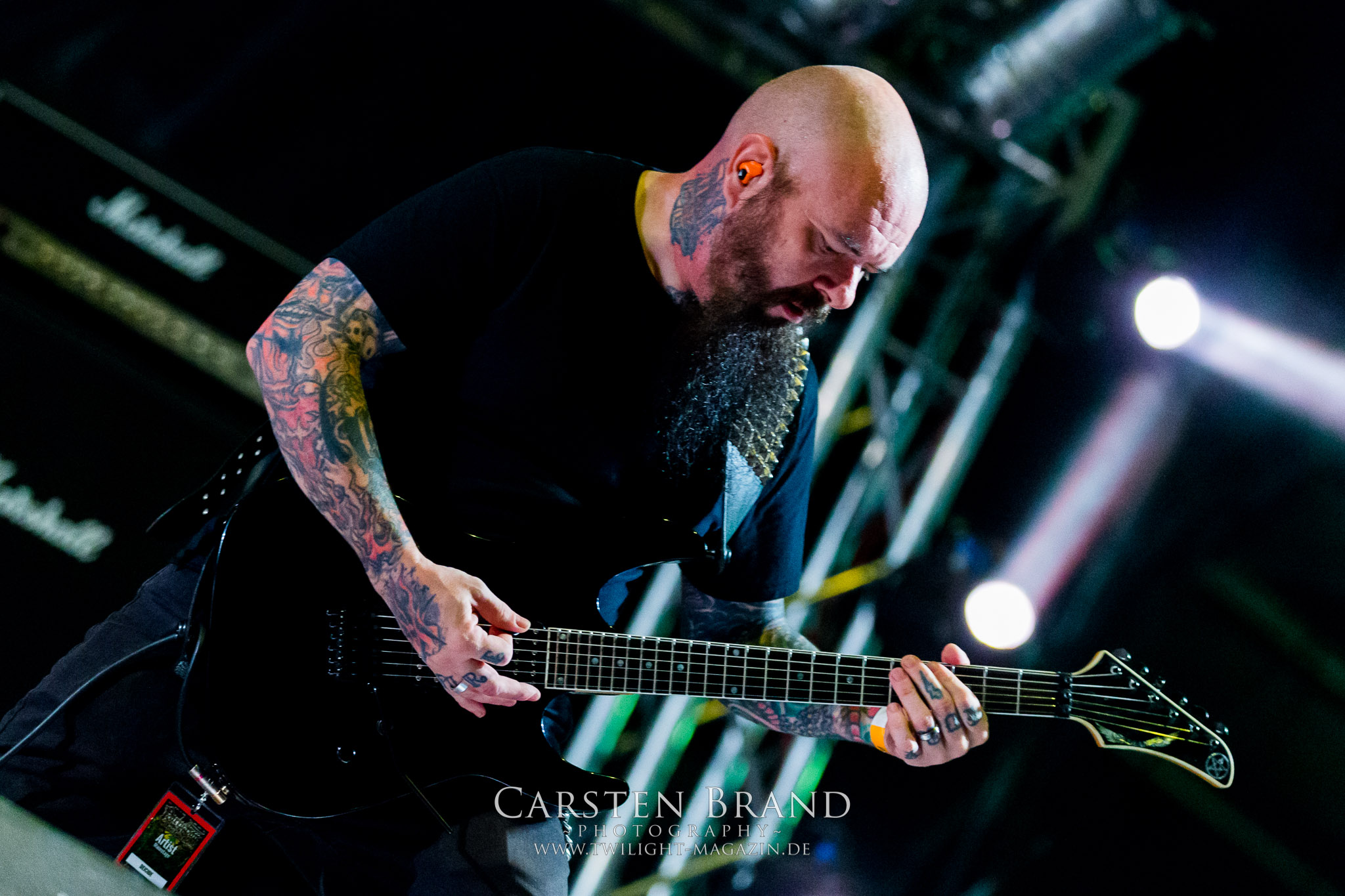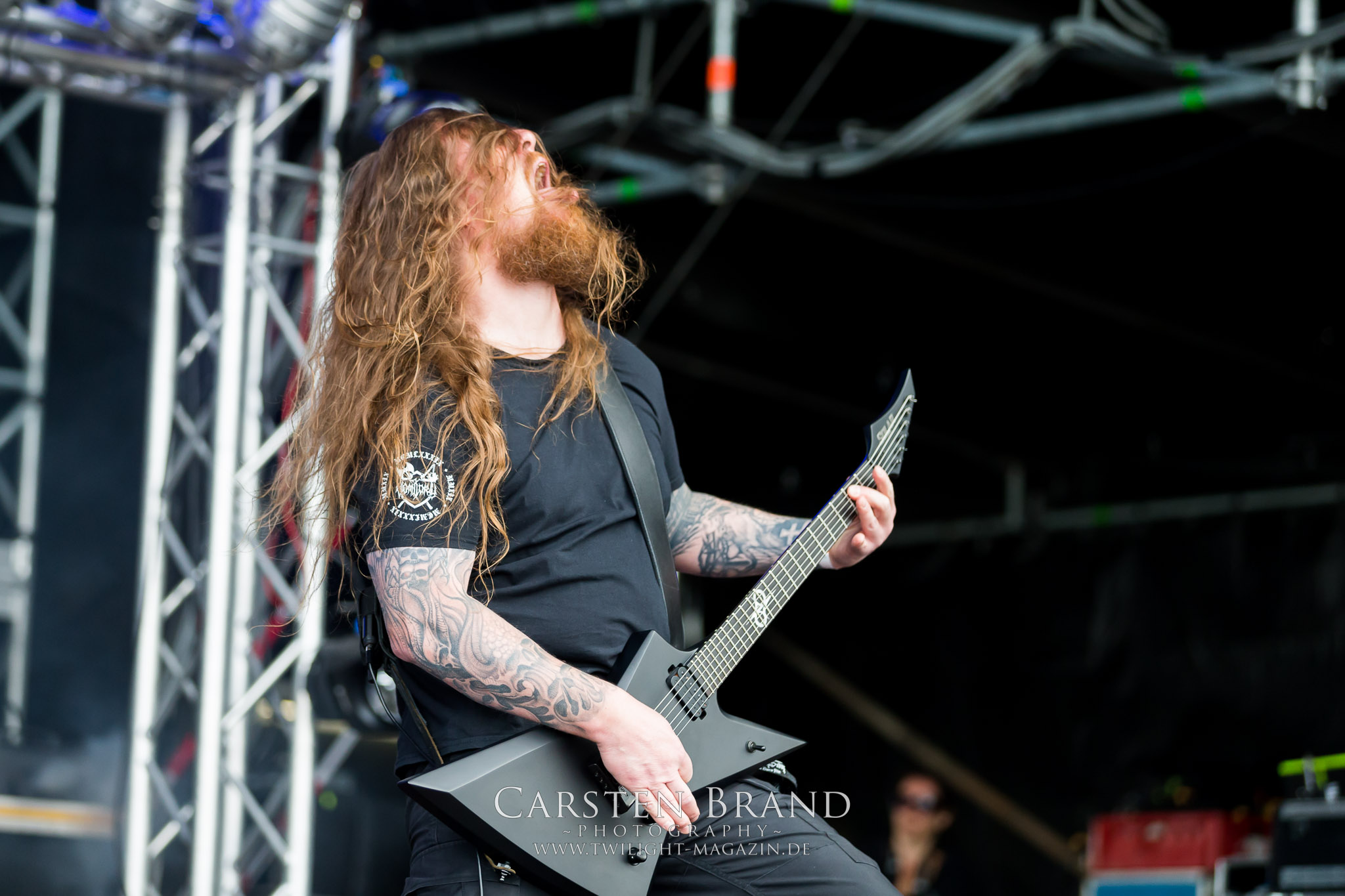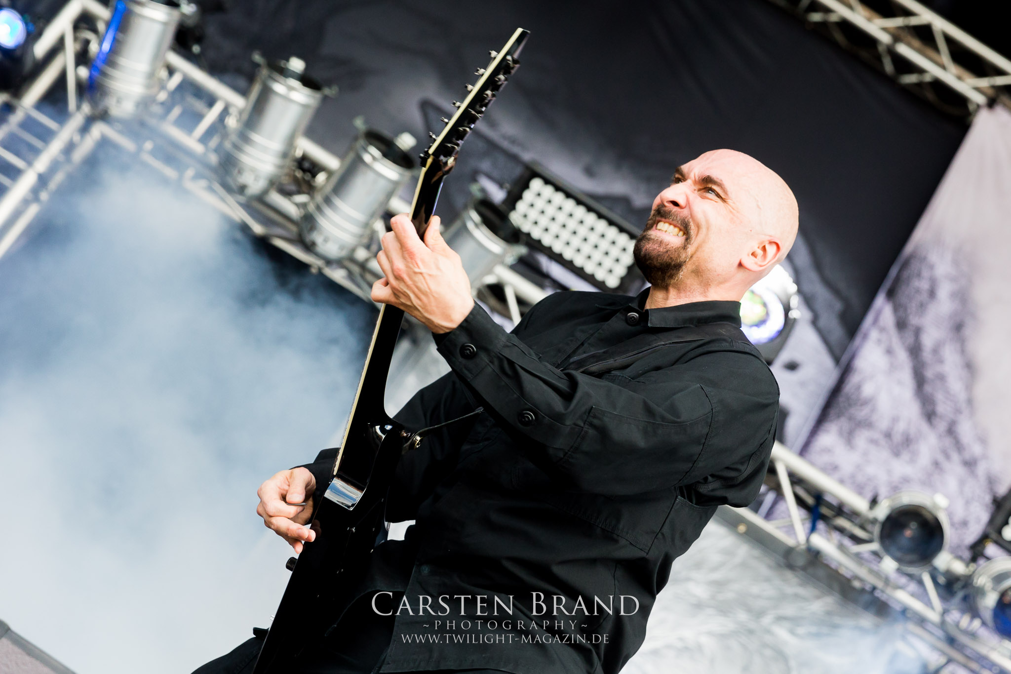Die Balten SKYFORGER haben dann gar keine Probleme mehr, ihre Fanbasis zu aktivieren und sich von Frontmann Peteris eine etwas einseitige Lektion in Sachen neuerer estnischer Geschichte anzuhören. Dass dabei die Flötentöne vom Band kommen, ist zu verschmerzen, da die Band ihre heidnischen Klänge sehr tight in die die Menge feuert und zum Mitgrölen animieren kann. (MS) INCANTATION waren nie meine persönliche Kragenweite, obwohl die Amis ein absolutes Urgestein und Aushängeschild der alten US-Todesmetallschule sind. Allerdings hat man in unseren Breiten nicht wirklich oft die Möglichkeit, die seit 30 Jahren ununterbrochen aktive Band live zu bestaunen. Wie auf dem Protzen 2014 bieten die Amis gehobene Donnerstag-Nachmittagskost, nicht mehr und nicht weniger. (JD) SOILWORK hatte ich seit zehn Jahren etwas aus den Augen verloren. Zu Unrecht, wie nicht nur der neue Song „Full Moon Shoals“ zeigt, der auch im Publikum gut ankommt. Trotzdem sind es die alten Schwedentod-Gassenhauer wie „Bastard Chain“, die am meisten zum Mähneschütteln anregen. (MS)