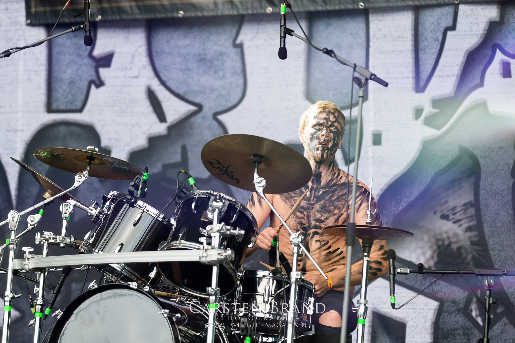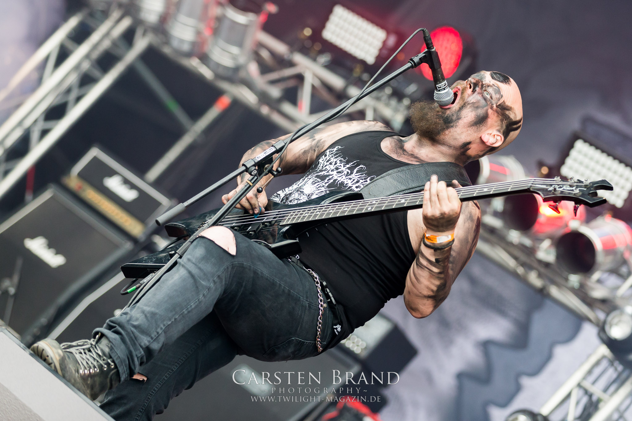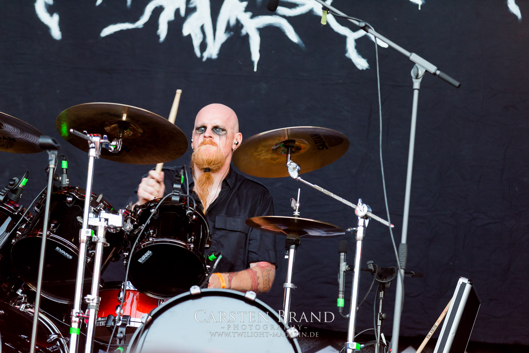 Erstmals seit einigen Jahren klemme ich mir den Frühschoppen im Zelt, nicht nur, weil es heute bis zum Finale mit Bloodbath noch ein verdammt langer Tag wird. GOAT EXPLOSION und BLACK MOOD sind nicht unbedingt meine Kragenweite. Sie haben aber vor allem aus meiner Sicht nicht das Format wie Cashley, Indian Nightmare oder Asomvel, die in den Vorjahren außergewöhnliche Vormittags-Gigs abgeliefert haben. Wobei ich selbst mit VULVODYNIA zum Hauptbühnen-Auftakt alles andere als warm werde. Der brutale Slam-Death der Südafrikaner mag zwar technisch überaus anspruchsvoll sein, wirkt aber auf mich ebenso steril und emotionsarm, da ziehe ich die schlichten Grindgemüter mit der Vorliebe für Einmalanzüge, Klobürsten und Gemüse vor. (JD) Am Samstag müssen SVARTIDAUDI dann frühzeitig in der für Isländer sicherlich ungewohnten prallen Mittagssonne auftreten. Im komplett schwarzen Corpsepaint keifen die Isländer ihren Metal in ebensolcher Färbung in den Schlotheimer Himmel und ziehen die mit Abstand meisten Besucher zu dieser Tageszeit nach vorn. (MS)
