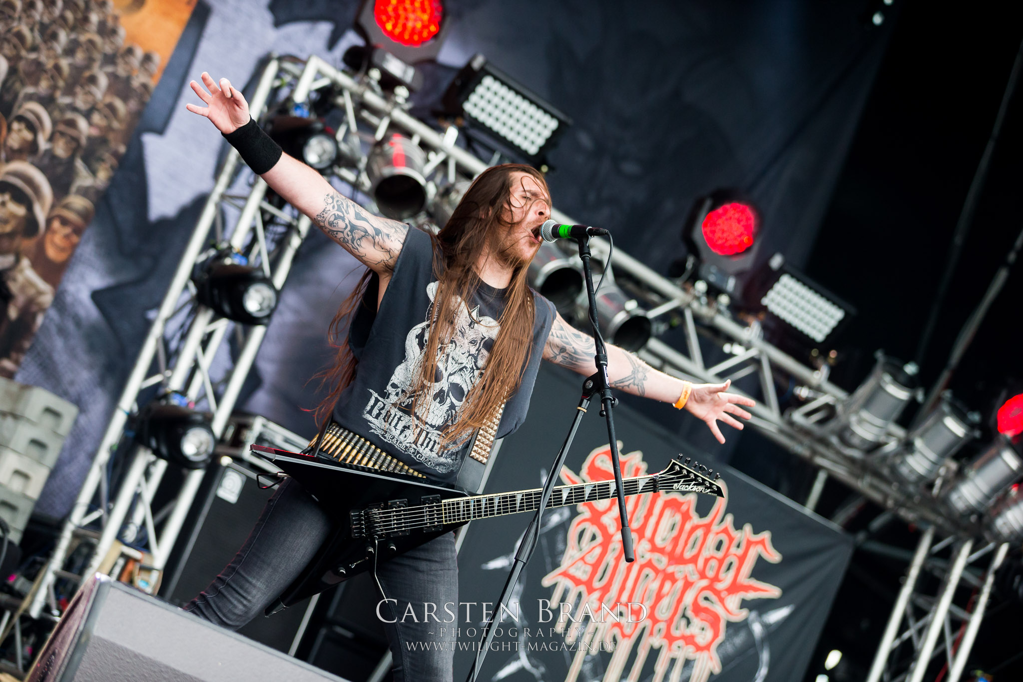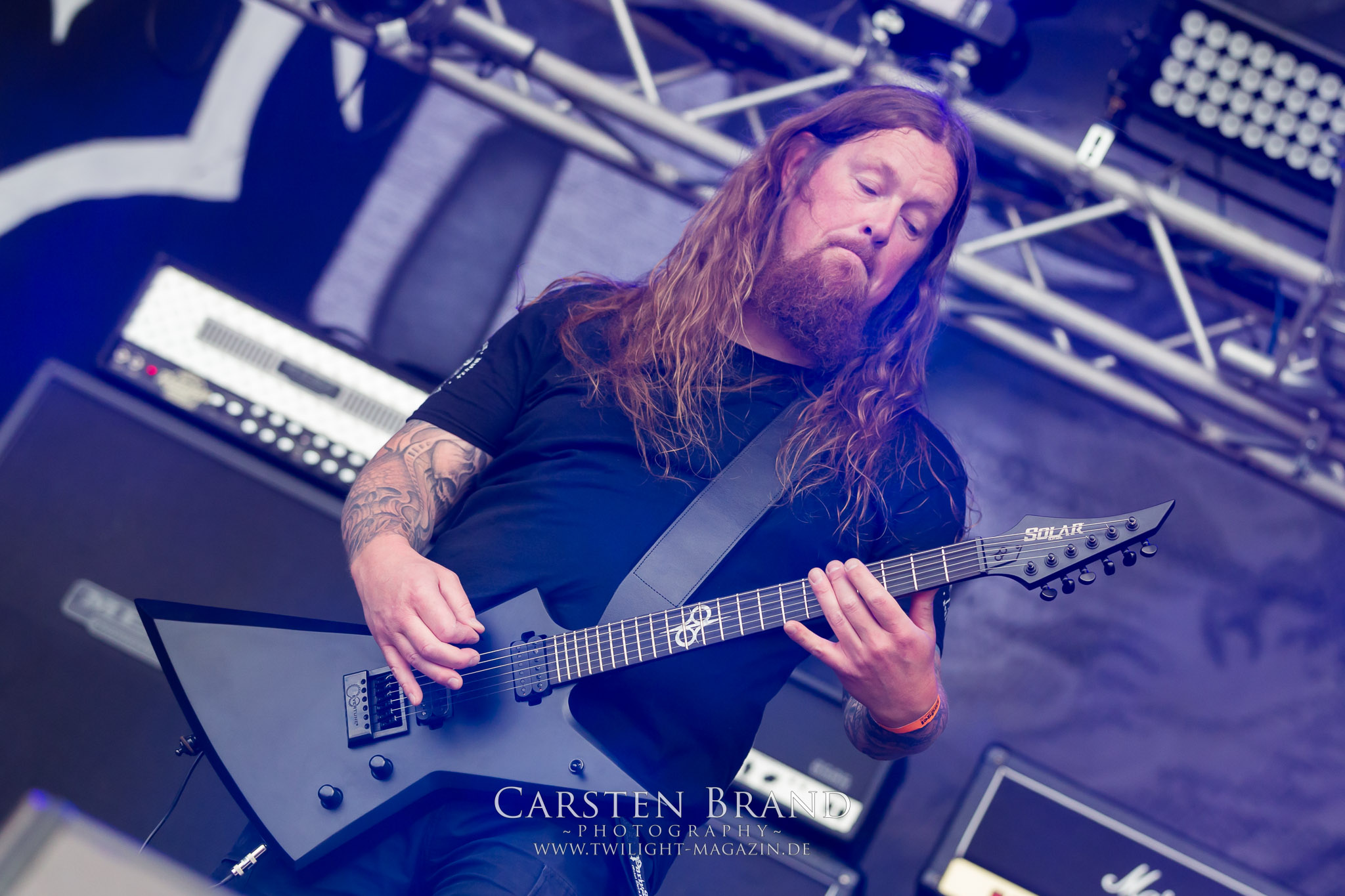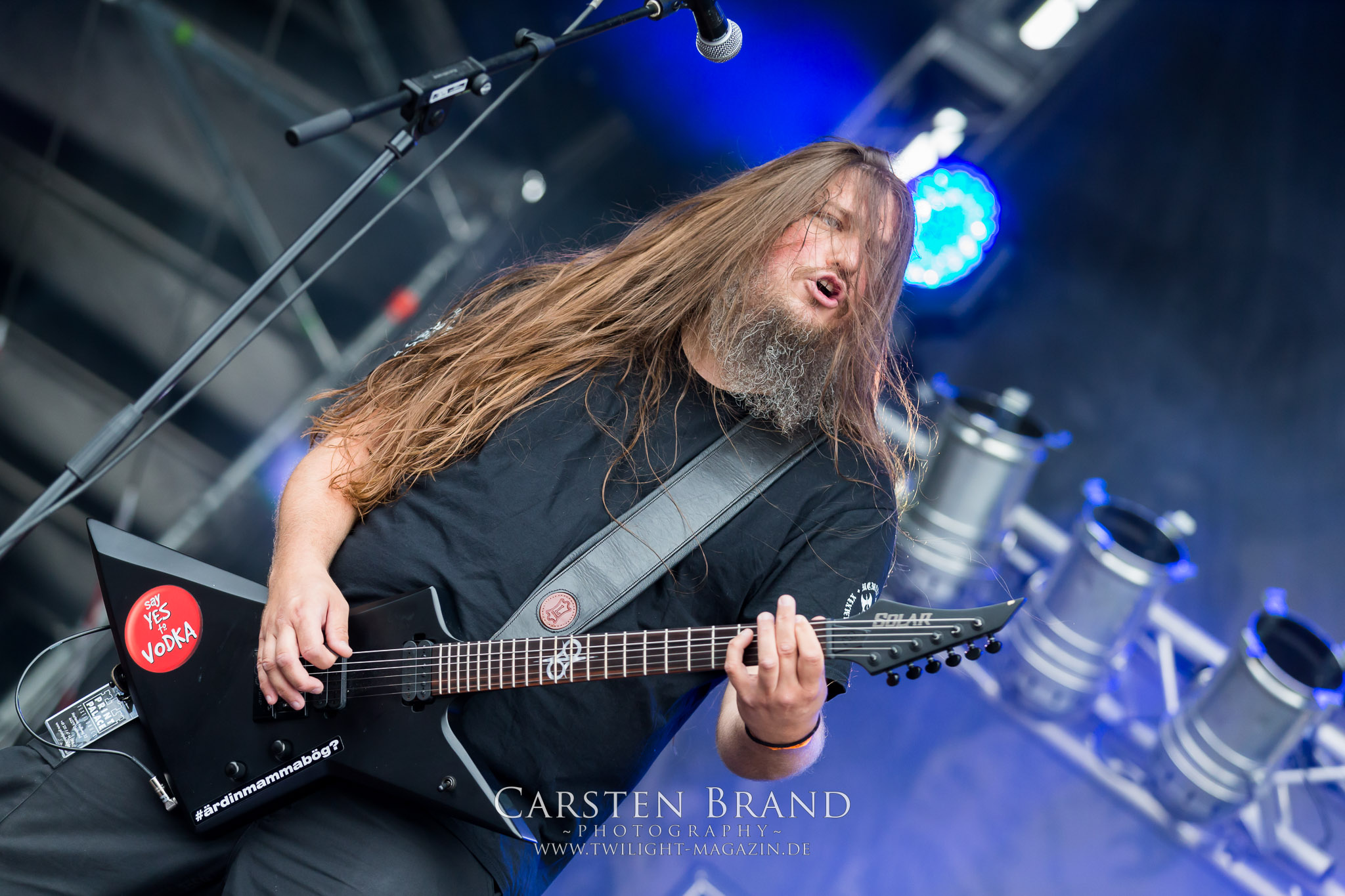 Die Befürchtung, dass die Live-Vorstellung von BLOODBATH als Headliner ähnlich blutleer wie das aktuelle Album "The Arrow Of Satan Is Drawn" wird (auch wenn Kollege Linus das in seinem Review deutlich anders sieht), bestätigt sich nach dem starken Auftritt von Solstafir glücklicherweise nicht, so dass die Jubileums-Auflage des PARTY.SAN METAL OPEN AIR mit der schwedisch-britischen Todesmetall-Breitseite rabiat zu Ende geht, wobei die Isländer um Aðalbjörn Tryggvason die Essenz der vorangegangenen Tage und von 25 Jahren PARTY.SAN auf den Punkt gebracht haben: "Love and Heavy Metal!". Das mag angesichts brutaler Musik, Kanonen neben der Bühne, martialischen Bildern und Inszenierungen absurd klingen. Und dennoch ist eine solche Zusammenkunft, egal ob bei der Organisation, auf, hinter und vor der Bühne ohne absolute Hingabe, Leidenschaft, Herzblut und Liebe zur Musik einfach nicht möglich.