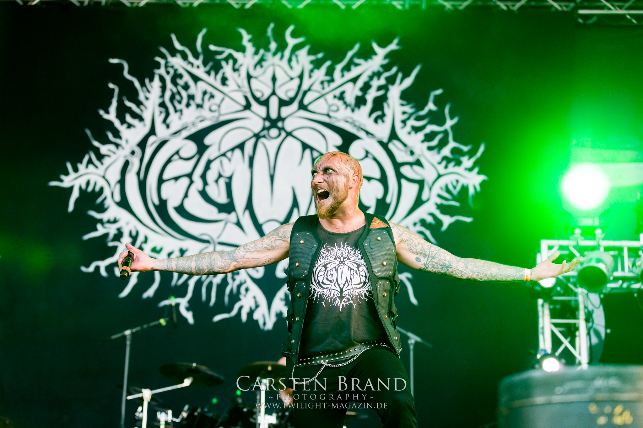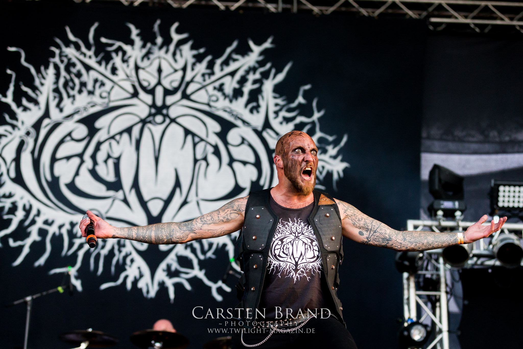 Zwischendurch bleibt kaum Zeit für Nachschub bei „Brathahn satt Satan“, da sich auf der Hauptbühne MGLA für einen ihrer seltenen Festivalauftritte die Ehre geben. Obwohl viele vermutlich auch ein neues Werk vom bald erscheinenden neuen Album erwartet haben, konzentrieren sich die Polen auf den nicht minder starken, aber schon vier Jahre alten Vorgänger. (MS)
