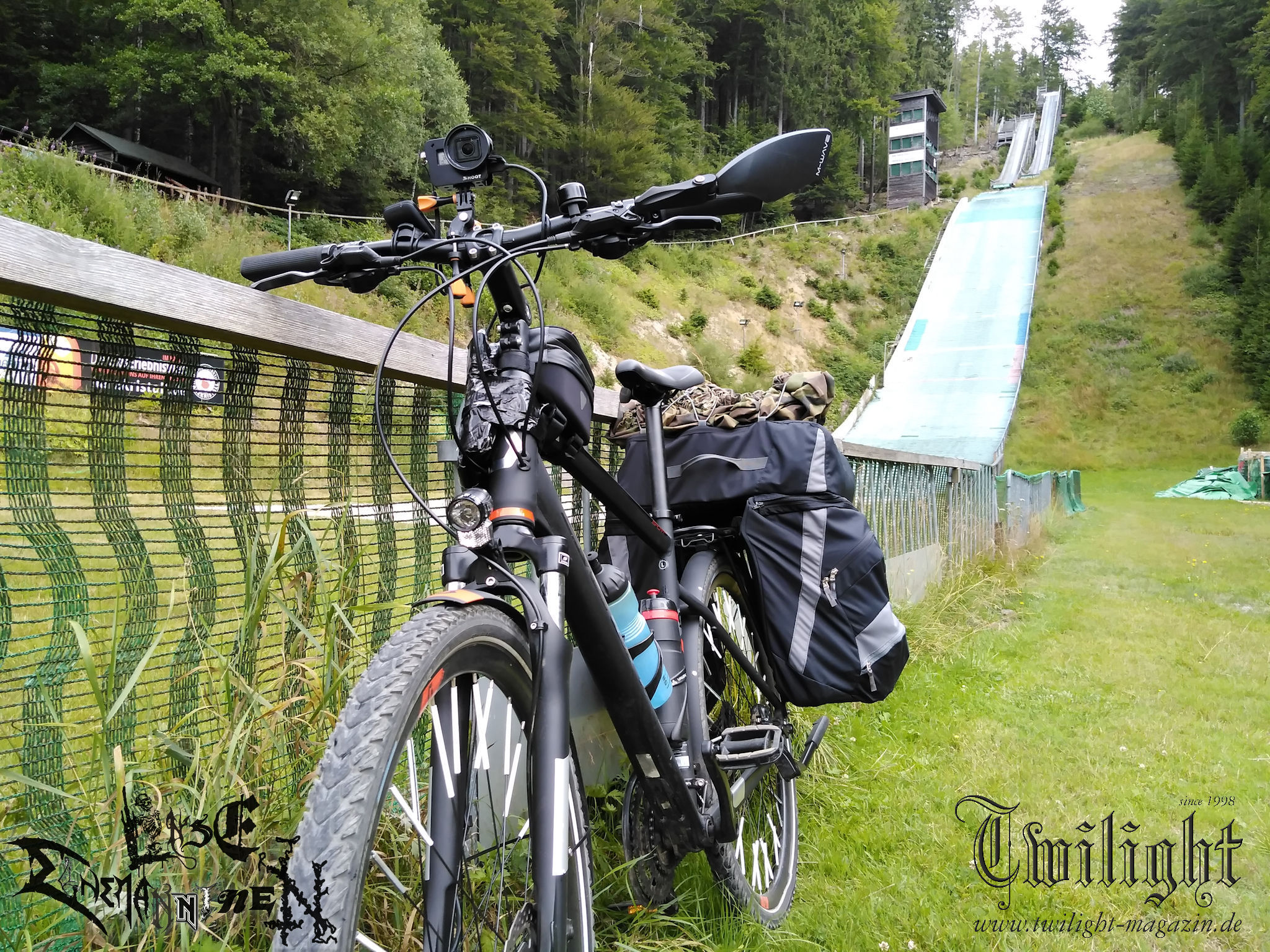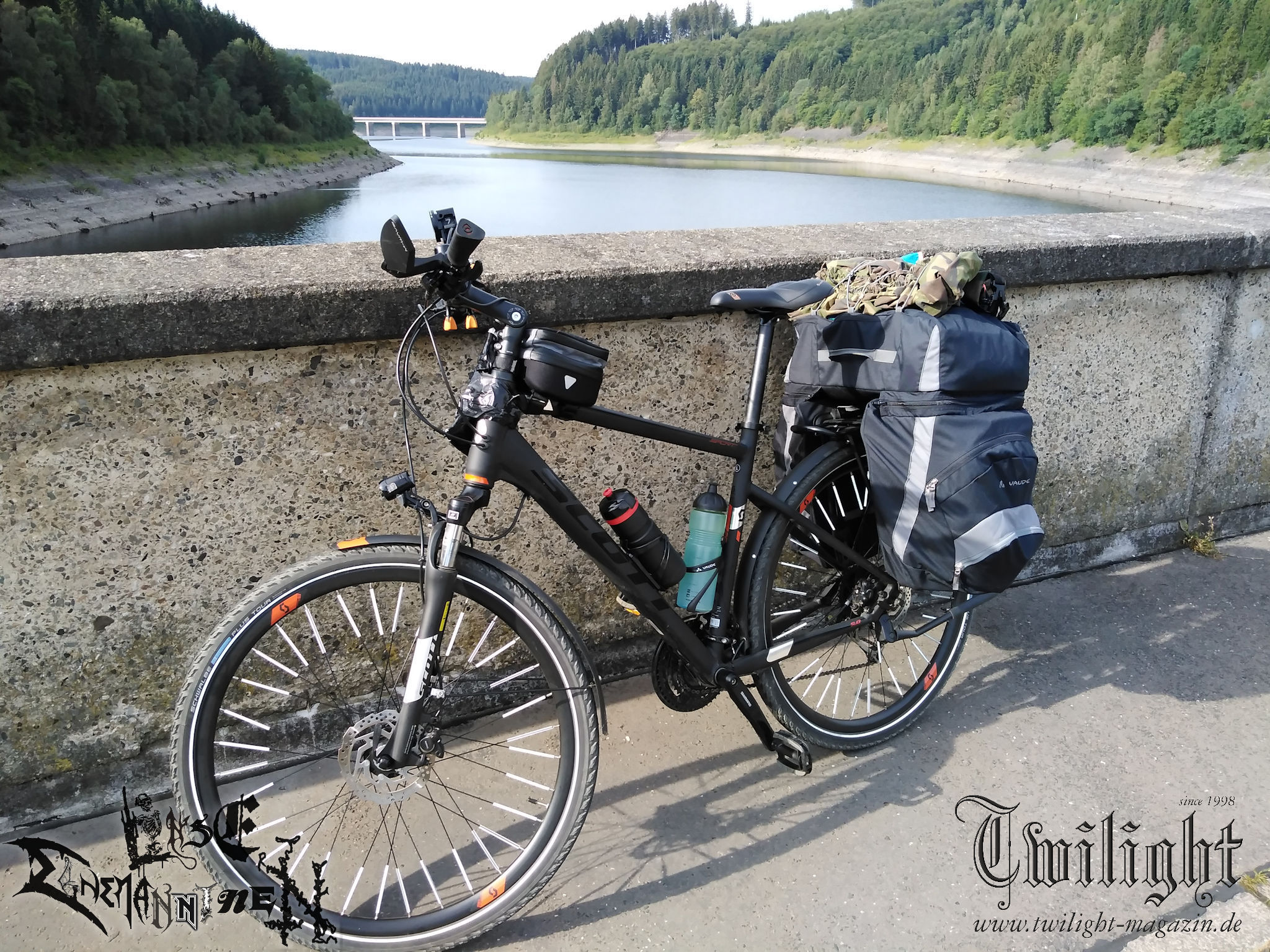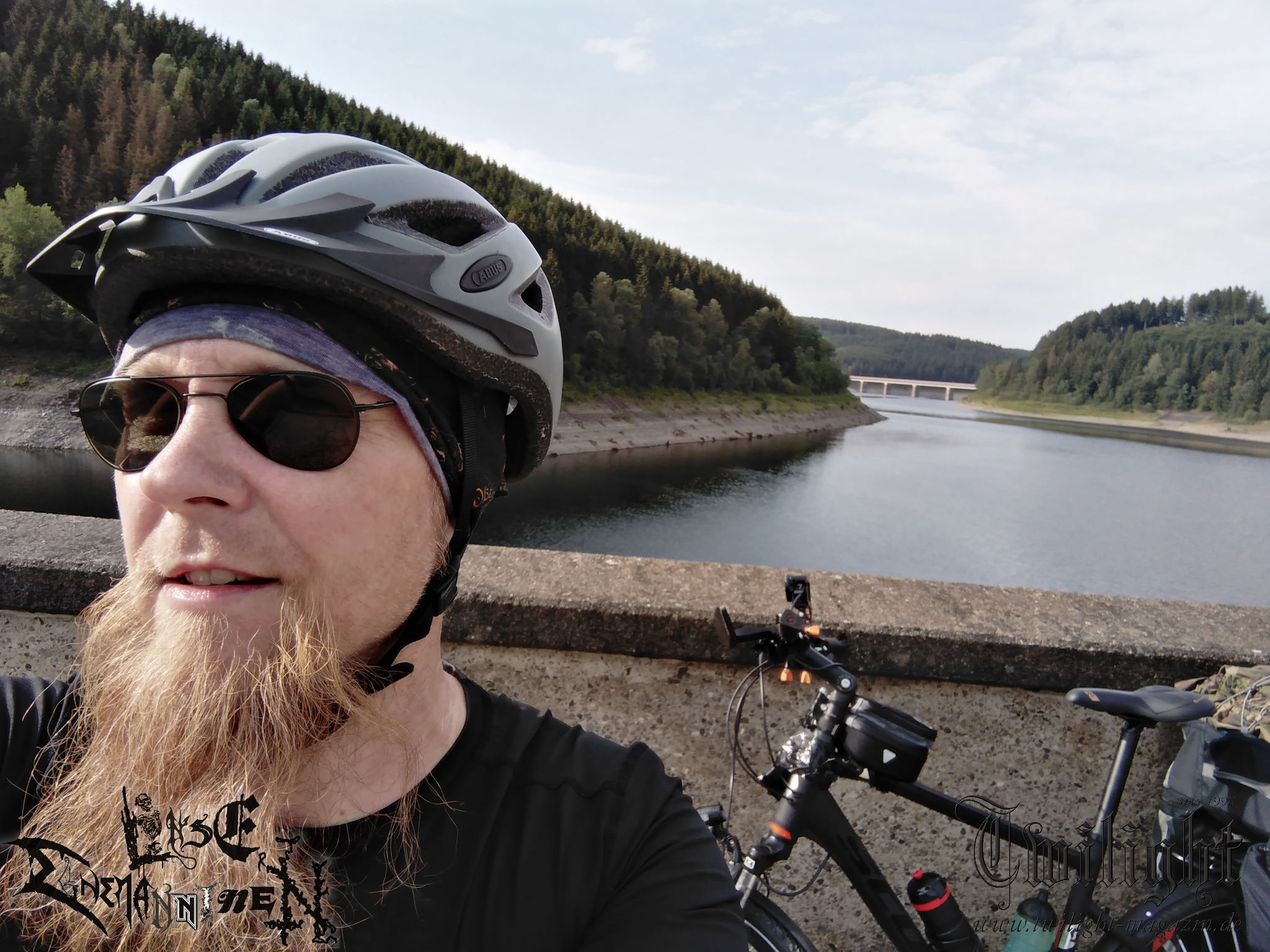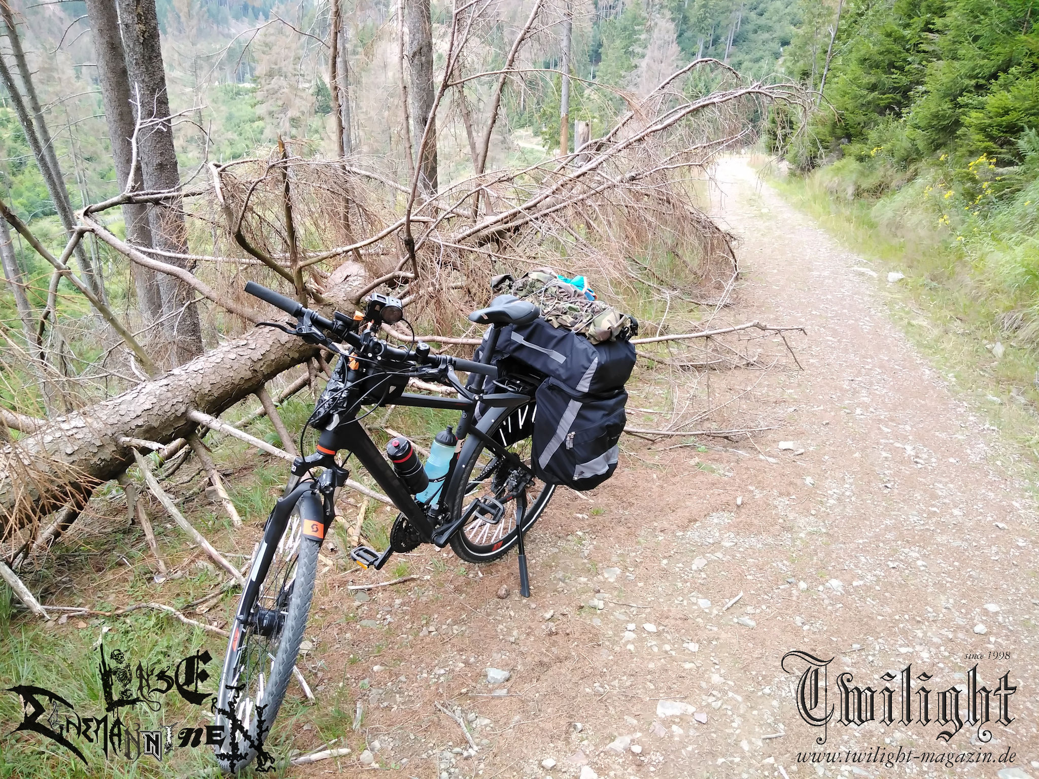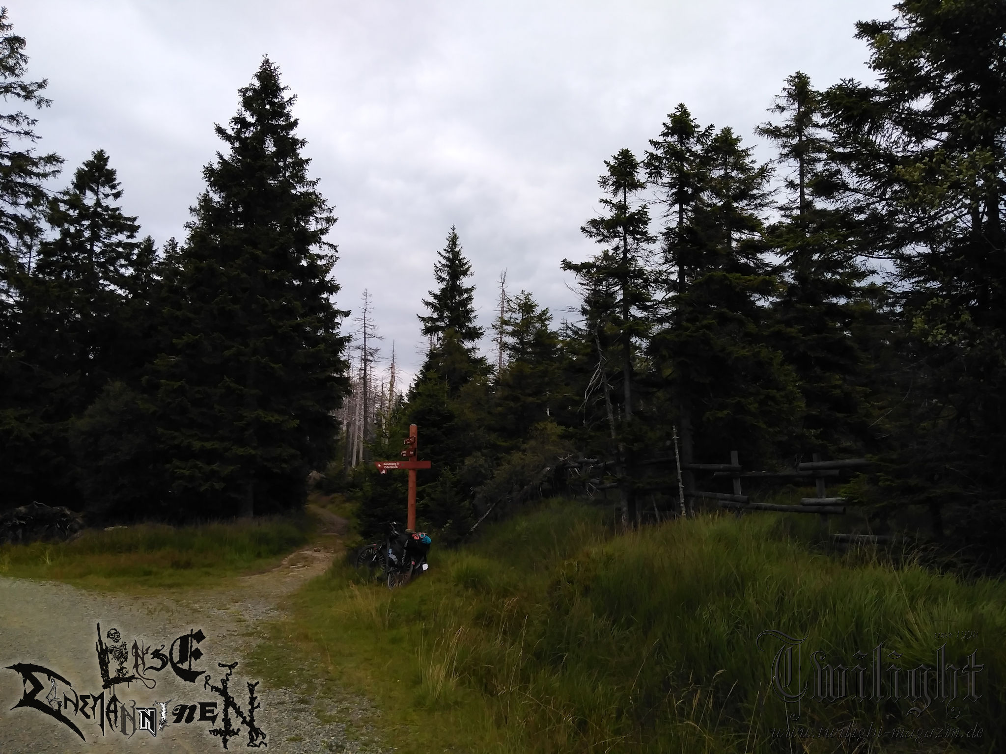 Nichts würde passieren, wenn ich das Unterfangen einfach abblasen würde, mich frustriert noch einen Tag auf die Couch krachen würde und am nächsten Morgen gemütlich im Auto gen PARTY.SAN METAL OPEN AIR fahren würde. Was mich davon abhält ist neben der Zeit, die ich bereits in die Vorbereitung investiert hatte, Frust und eine ordentliche Portion Wut im Bauch über das alternde Knochengerüst sowie Ehrgeiz und eine Alles oder Nichts - Mentalität, die sich den Malessen entgegen stemmt. Ich will es wenigstens versucht haben. Schließlich geht es ja gleich am ersten Tag mit rund 1000 Höhenmetern über das heimische Harz-Gebirge. Ich beschließe den Weg nach Schlotheim gedanklich einfach wie jede andere größere Radtour anzugehen. Sofern der Körper nicht mitmachen will, ist ein Abbruch bis zum Dach der Tour im Harz immer noch möglich. Mit dieser Einstellung komme ich Kilometer für Kilometer stetig voran und strampele mich von Goslar über die Okertalsperre gen Torfhaus in die Höhenlagen des Nationalpark Harz. Kurz vor dem Torfhause lote ich die Grenzen des Machbaren für mein Tourenrad aus. Dass das letzte Teilstück eigentlich allenfalls für trailgängige Mountainbikes gedacht ist, wusste ich im Vorfeld, hatte aber mein Gepäck nicht eingerechnet. Somit wird der Abschnitt nicht nur kurzzeitig zu einer abenteuerlichen "Tortour", sondern gleichzeitig zur erfolgreichen Nagelprobe, nach der ich mir sicher bin, dass die - wenn auch gefühlt einseitige - Bewegung dem Körper eher gut tut, als schadet. Nach einem kurzen Intermezzo auf der stark befahrenen B4 geht es durch den Nationalpark auf gut ausgebauten Forstwegen in die Wintersport Metropole Braunlage am Fuße des Wurmbergs, dem höchsten Berg Niedersachsens. Nach verdienter Pause mit Gebäck, Kuchen und Obst folgt noch eine Rampe aus dem Hochharzstädtchen hinaus, bevor es auf eine lange Abfahrt gen Wieda und Walkenried geht, die jedoch kaum weniger anstrengend als der lange Aufstieg des Vormittags ist. Es ist früher Nachmittag, als ich die Ruinen der beeindruckenden ehemaligen Klosteranlage aus dem 13. Jahrhundert in Walkenried erreiche, wo ich auf historischem Grund der Welterbestätte Kraft für das Tagesfinale tanke. Das Ziel in greifbarer Nähe werde ich leichtsinnig, biege falsch ab und drehe somit eine Ehrenrunde durch das niedersächsisch-thüringische Grenzgebiet, die mir am Hofladen eines Bauernhofes aber immerhin eine vorzügliche Mettwurst für das Abendessen beschert. Nach dem letzten planmäßigen Einkaufs-Zwischenstopp in Ellrich geht´s über - baustellenbedingt - autofreie Nebenstraßen dem Jägerhof und Tagesziel in Woffleben in der Gemeinde Harztor entgegen. Nach rund 80 Kilometern fühle ich mich zwar körperlich wie ein Cowboy, der den ganzen Tag im Sattel verbracht hat. Aber ich bin so stolz, als hätte ich eine dreistellige Anzahl an Rindern allein über das nördlichste deutsche Mittelgebirge getrieben. Die gesamte Pension, deren Betreiber selbst im Urlaub weilen, teile ich mir an diesem Abend mit einem Holzkutscher aus dem Thüringer Wald. In regem Austausch bei verdienter Feierabend-Gerstenkaltschale lassen wir zufrieden einen lauen Sommerabend ausklingen, wobei es früh in die Falle geht. Für den einen in Erwartung eines weiteren langen Arbeitstages auf dem Bock seines LKW, für den anderen in Erwartung, am nächsten Tag das heilige PARTY.SA-Portal in Obermehler mit dem Fahrrad zu durchqueren.