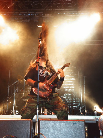 Krisiun wird dies egal gewesen sein, denn sie scheppern danach in gewohnter Manier alles in Grund und Boden. Man mag über die Brasilianer denken, was man will, erhaben über jede Geschwindigkeit, die Melodie zum Feind auserkoren, so blastet und frickelt sich diese Band seit Jahren wie keine zweite durch ihre Sets! Fazit: Stark wie gewohnt doch ohne weitere Höhepunkte!