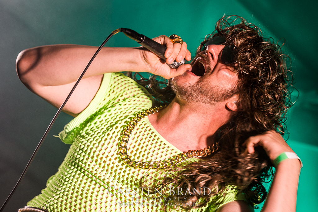 Aber nicht nur das Wetter sondern auch der Verkehr wirbeln den Zeitplan zum Auftakt mächtig durcheinander. Während Black Mood und die Kamikaze Kings noch im Stau feststecken beginnt der etatmäßige Headliner GORILLA MONSOON gegen 21 Uhr als Opener seinen Set, nachdem Sänger/Gitarrist Jack die Frage des Tontechnikers, ob man denn nach dem Einzel-Soundcheck noch einmal einen Song gemeinsam antesten wolle, mit einem verschmitzten Lächeln und einem lapidaren "NÖ" quittiert hat. Hier sind mittlerweile nicht einfach alte Hasen, sondern gestandene Silberrücken des deutschen Undergrounds am Werk, die um ihre Stärken und ihr Können wissen. Kraftstrotzend und mehr als souverän trommelt das Quartett dem Publikum seinen animalisch groovenden Höllenrock mit Doom-, Südstaaten und Stoner-Einflüssen vor die Brust. Das kann nach über anderthalb Dekaden in dieser Intensität keine andere deutsche Band. Das Zelt ist gerammelte voll, wie der Osten sagt, während draußen der nächste Platzregen niedergeht, die Pfützen mehr, größer und tiefer werden, das Lagerfeuer kaum brennen will und die Getränke-Beschaffung mangels Bar im Zelt bei einem Sprint quer über das "Infield" des Protzen Open Airs zu einem feuchtfröhlichen Vergnügen der anderen Art wird.