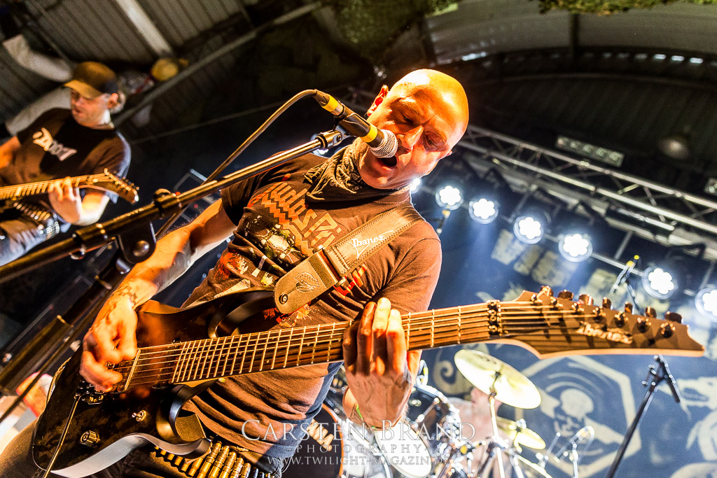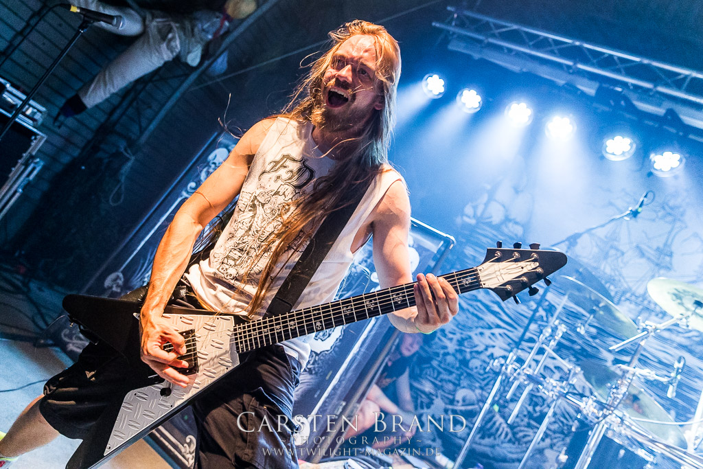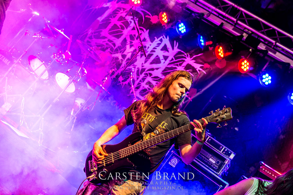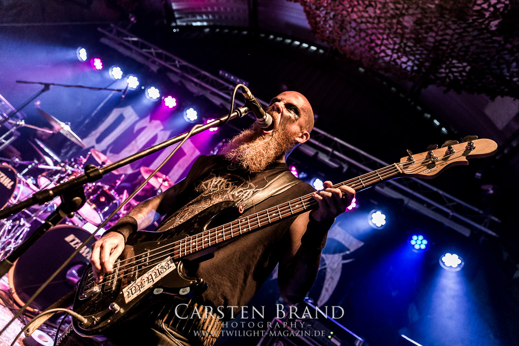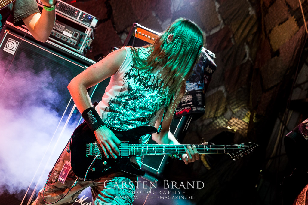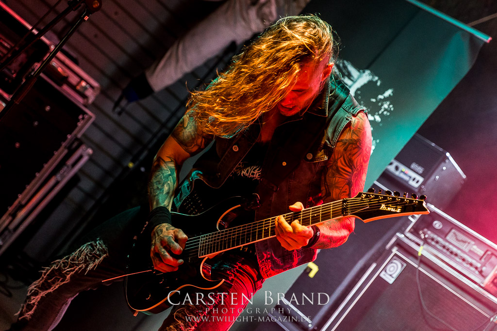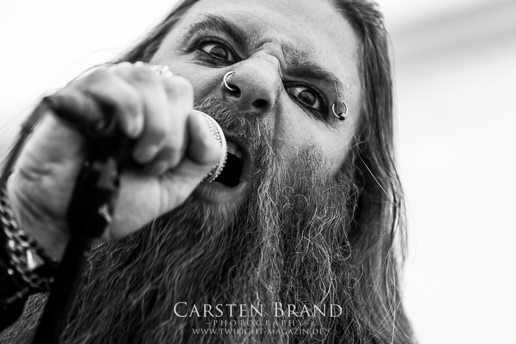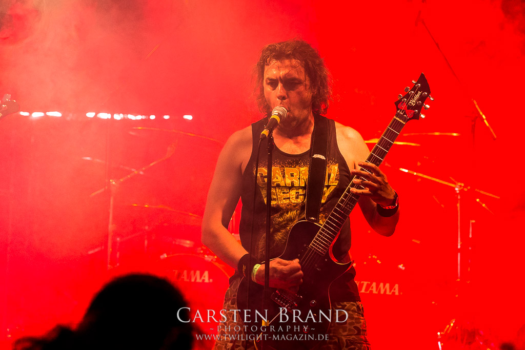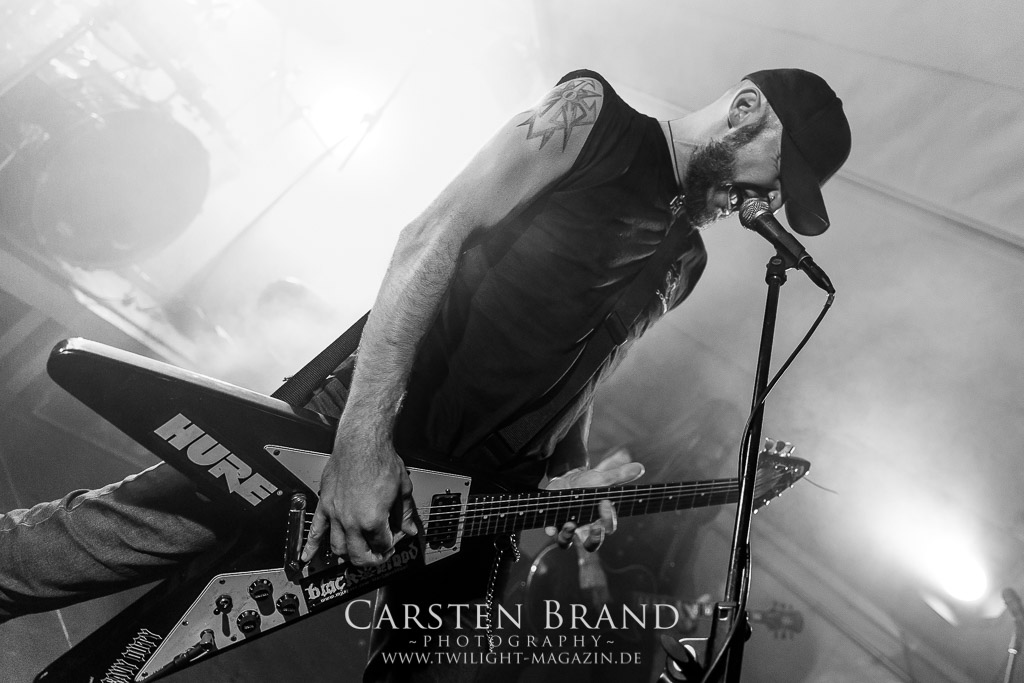 Die Magdeburger TORTURIZED haben in den letzten zehn Jahren eine gewaltige Entwicklung genommen, von der klassischen Old-School - Death Metal - Band zur modern ausgerichteten Tech-Death-Formation, und das komplett ohne Label im Rücken. Das jüngste Zeugnis "Omnivore" gleicht einer Urgewalt, die, gebündelt durch die spielerische Klasse der Musiker in kontrollierte Bahnen gelenkt wird. Das unterstreicht auch die beeindruckende halbe Stunde im Zelt, bei der der Sound heute leider nicht ganz so gut wie an den vorangegangenen Tagen ist. Dennoch würde ich mir zukünftig wieder mehr Bauch statt Kopf im Hause Torturized wünschen, sind Songs und handwerkliches Können zwar über jeden Zweifel erhaben, aber gerade Live wirkt mir das ganze mittlerweile zu klinisch, steril und klingt manchmal schon fast (Siggi, verzeih´ mir diesen Ausdruck!!!) wie Hipster - Death Metal. (JD)