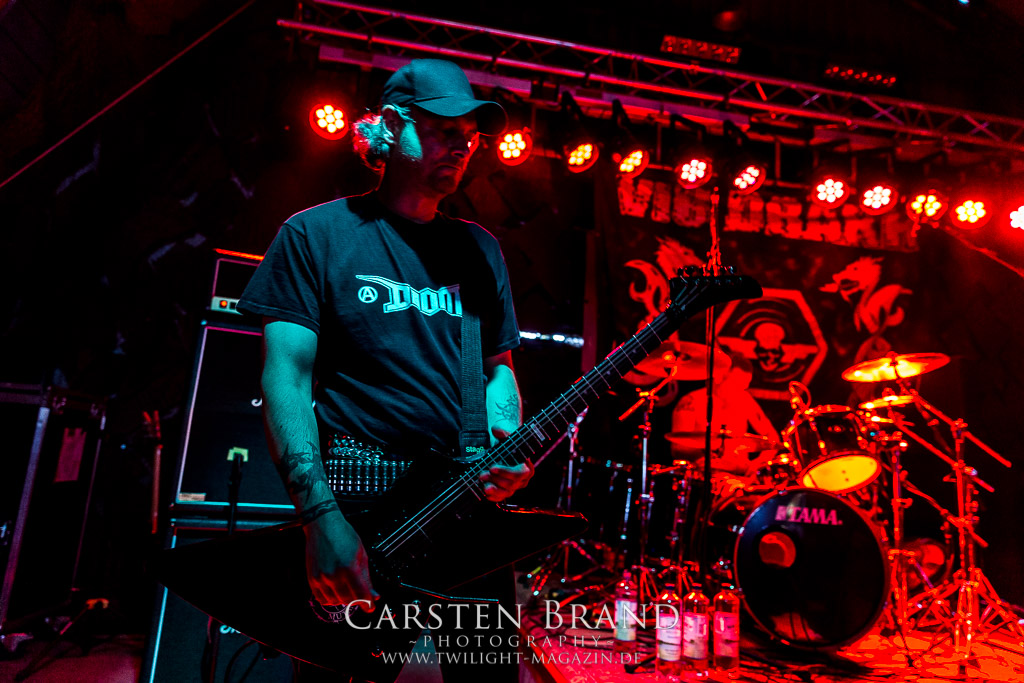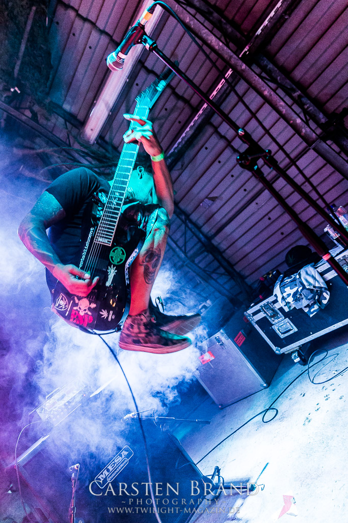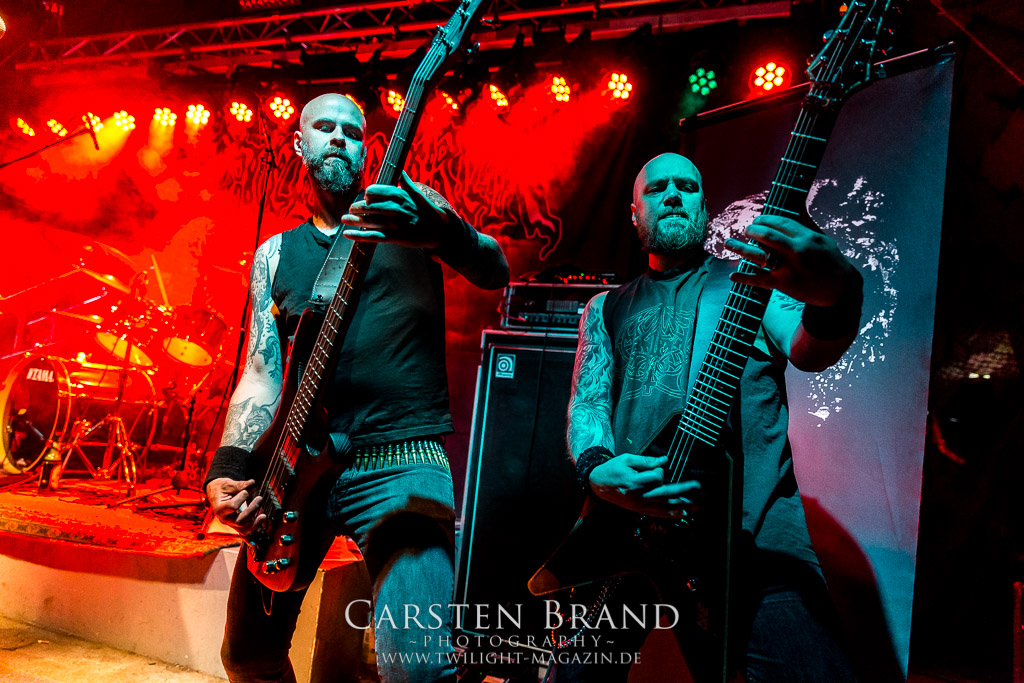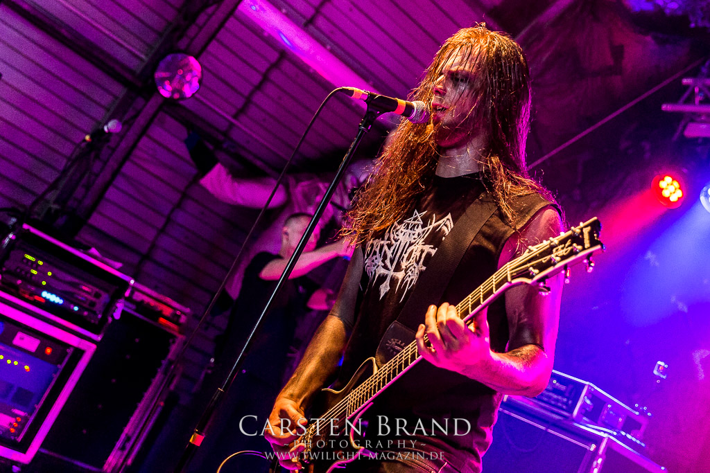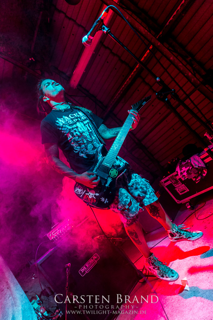 Dieser Slot war verflucht. Zunächst sagen Misery Index alle Europa-Gigs ab und dann wird es auch nichts mit dem Auftritt der ehemaligen Massacre-Mucker Kam Lee und Rick Rozz. Grund hier scheint Ego-Gewichse zu sein. Die Veranstalter sind gut vernetzt und so zaubern sie sehr kurzfristig mit SCHIRENC PLAYS PUNGENT STENCH einen würdigen Ersatz aus dem Hut. Die haben ja selber leidvolle Erfahrungen mit dem Weiterführen einer Band unter dem ursprünglichen Namen... Der Gestank im Hangar war für die meisten am ersten Abend noch nicht beißend genug, aber Schirenc Plays Pungent Stench sorgen dafür, dass sich der Schweißgeruch noch einmal potenziert. Wie schon 2014 liefern die Österreicher einen wirklich guten Gig ab bei dem die Stimmung vortrefflich auf das Publikum überspringt.(TT)