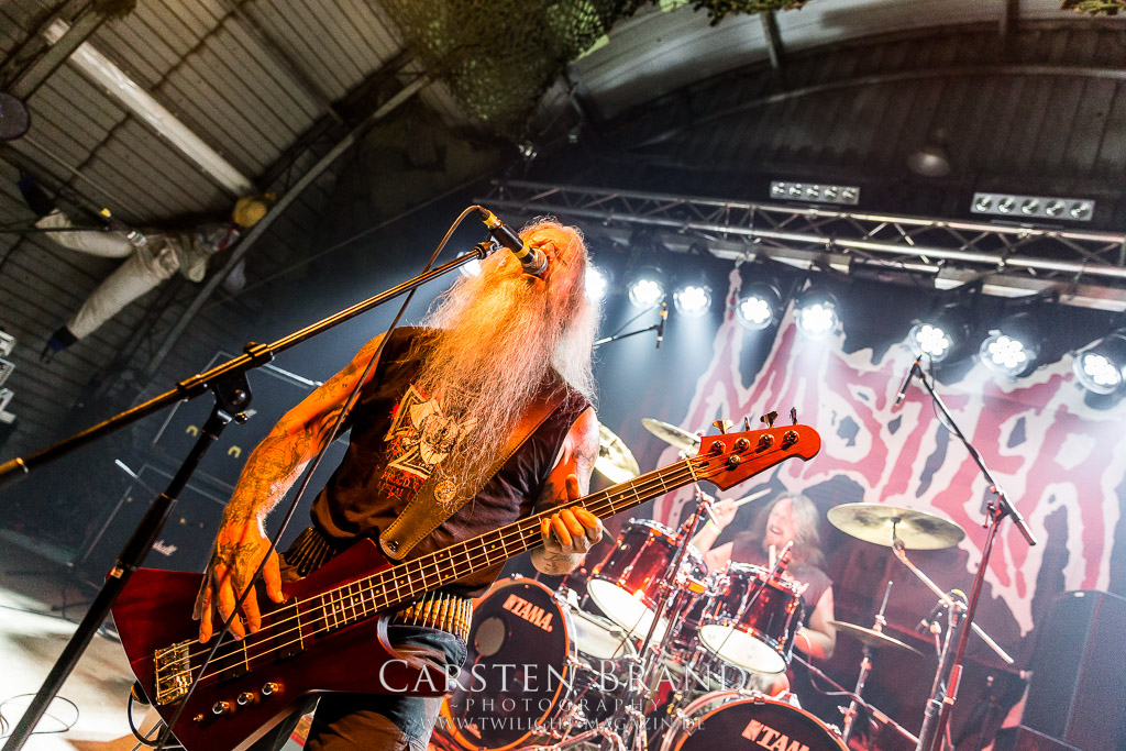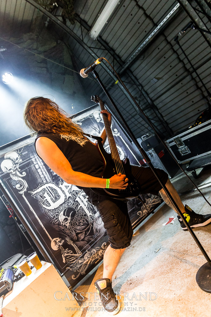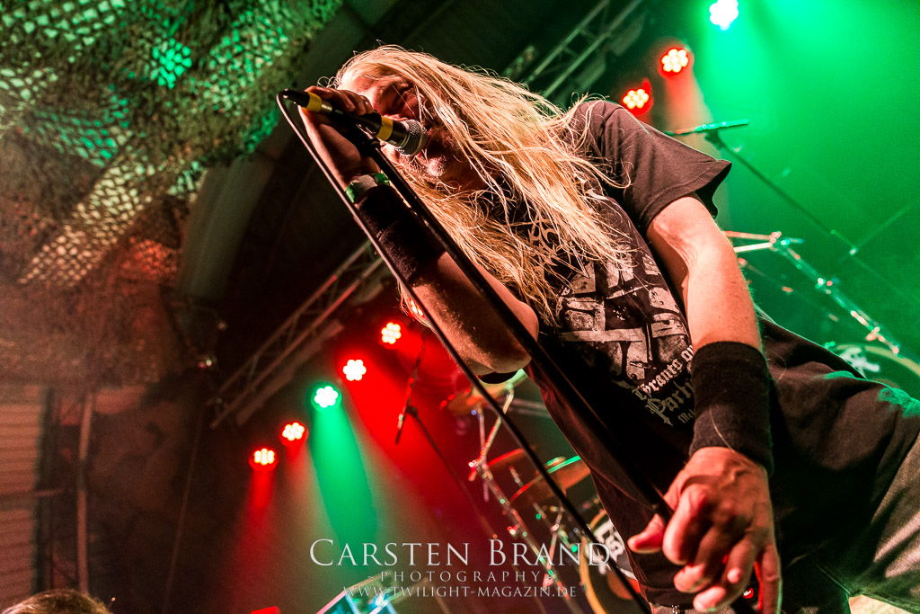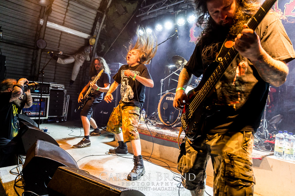 Mit Martin van Drunen folgt Speckmann nun die nächste angegraute Eminenz des Todesstahls auf die Bühne, darf er doch mit ASPHYX den Sack zu machen. Und wie: Zwar ist der Sound nicht ganz so brilliant wie auf dem Rock Hard Festival aber was das Quartett hier abzieht ist kaum in Worte zu fassen. Die gesamte Band sprudelt über vor Energie und ist fast schon übermotiviert, was bei diesem Set der Extraklasse jedoch kein Wunder ist. "MS Bismark", "The Sickened Dwell", "Der Landser", "The Rack", "Scorbutics", "Deathhammer", "Death: The Only Immortal", "Last One On Earth" und so weiter und sofort... Klassiker reiht sich an Klassiker und somit sind Asphyx die einzige Band der alten Garde, denen sich Deserted Fear heute nach punkten geschlagen geben müssen. Aber Asphyx in dieser Form zu unterliegen, ist wahrlich keine Schande. Ein denkwürdiger Abschluss, der Band und Fans die letzten Reserven abgetrotzt hat, unglaublich intensiv war und sehr viel Spaß gemacht hat.