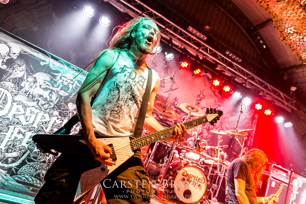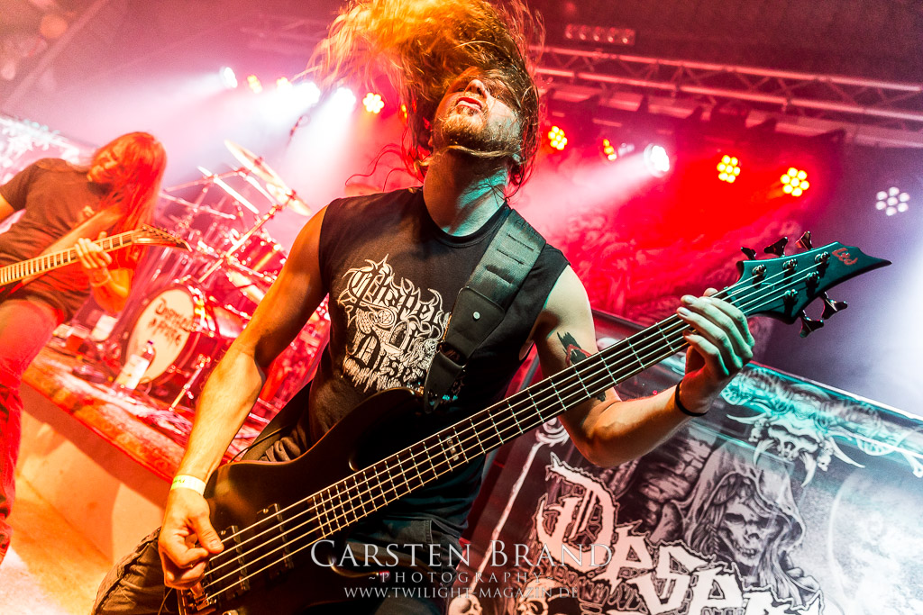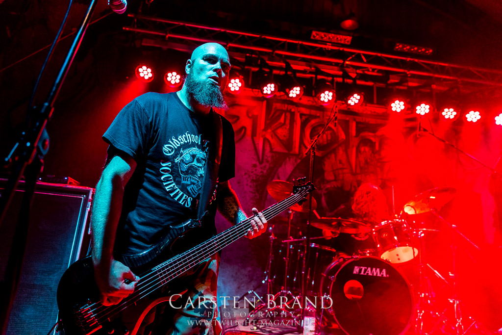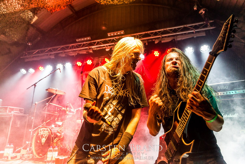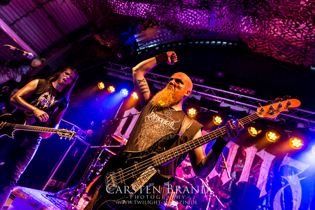 Mit Martin van Drunen folgt Speckmann nun die nächste angegraute Eminenz des Todesstahls auf die Bühne, darf er doch mit ASPHYX den Sack zu machen. Und wie: Zwar ist der Sound nicht ganz so brilliant wie auf dem Rock Hard Festival aber was das Quartett hier abzieht ist kaum in Worte zu fassen. Die gesamte Band sprudelt über vor Energie und ist fast schon übermotiviert, was bei diesem Set der Extraklasse jedoch kein Wunder ist. "MS Bismark", "The Sickened Dwell", "Der Landser", "The Rack", "Scorbutics", "Deathhammer", "Death: The Only Immortal", "Last One On Earth" und so weiter und sofort... Klassiker reiht sich an Klassiker und somit sind Asphyx die einzige Band der alten Garde, denen sich Deserted Fear heute nach punkten geschlagen geben müssen. Aber Asphyx in dieser Form zu unterliegen, ist wahrlich keine Schande. Ein denkwürdiger Abschluss, der Band und Fans die letzten Reserven abgetrotzt hat, unglaublich intensiv war und sehr viel Spaß gemacht hat.
