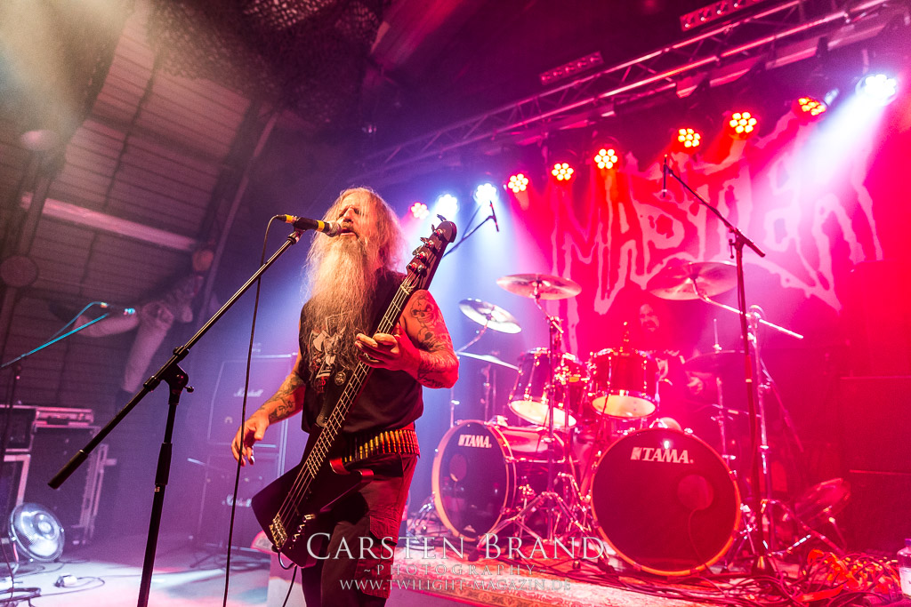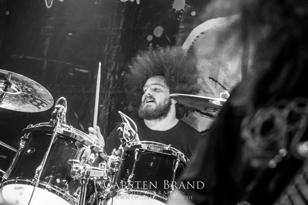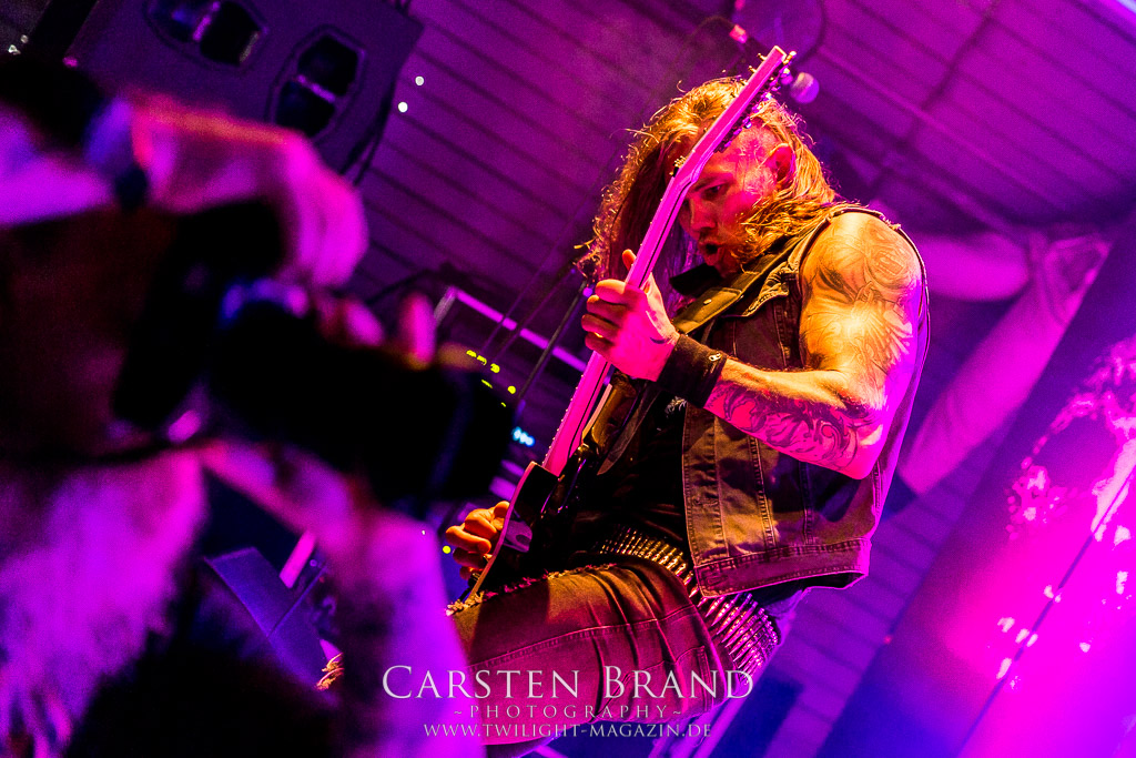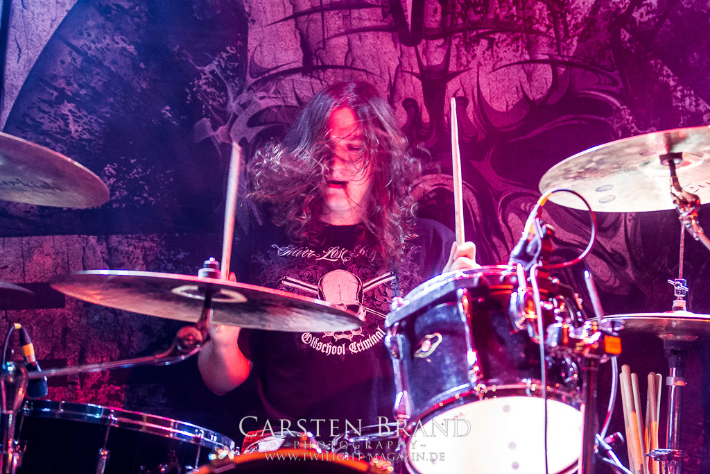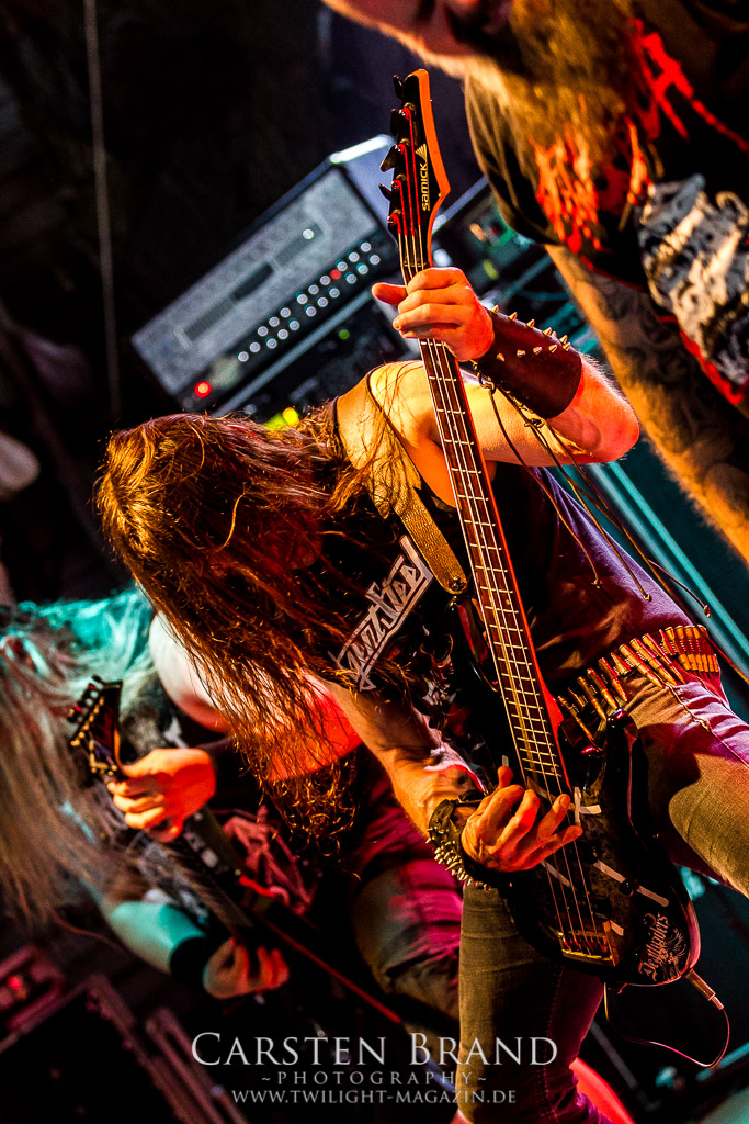 Paul Speckmann wirkt nicht nur optisch wie Vater Abraham, er ist tatsächlich der Methusalem der Death Metal - Szene. Zwar hat der MASTER-Frontmann musikalisch in über drei Dekaden meiner Ansicht nie die ganz hochkarätigen Klassiker erschaffen, sein Einfluss und vor allem seine musikalische Beständigkeit und Präsenz ist jedoch unbestritten und das rechtfertigt tatsächlich die hohe Position im Billing. Knochentrocken rotzt der Wahl-Tscheche mit seinen beiden Mitstreitern die tief im Thrash verwurzelten Brecher aus 35 Jahren Bandgeschichte aus dem Ärmel. Auch wenn ich dem alten Mann immer noch nachtrage, dass er Krabathor einst auseinanderdividiert hat, Master werden an diesem Abend ihrer Position gerecht.