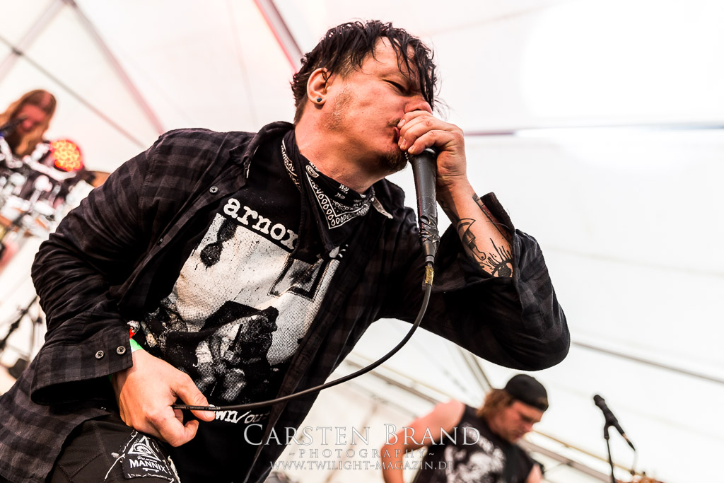 HARMONY DIES gehören irgendwie schon all die Jahre zum Protzen-Inventar und die Berliner Death Metaller um Bühnentechniker Kai und DJ Keksgrinder sind auch in diesem Jahr wieder eine absolute Bank. Staight, zielsicher und ohne jeglichen Firlefanz direkt in die Kauleiste. Mehr braucht es nicht zum Glück.