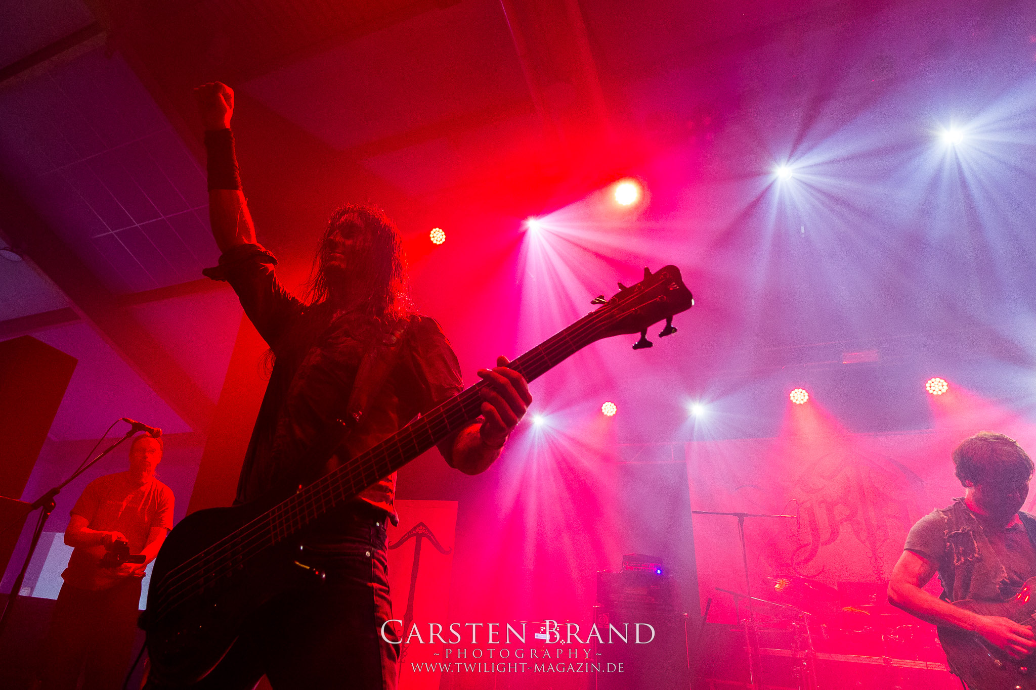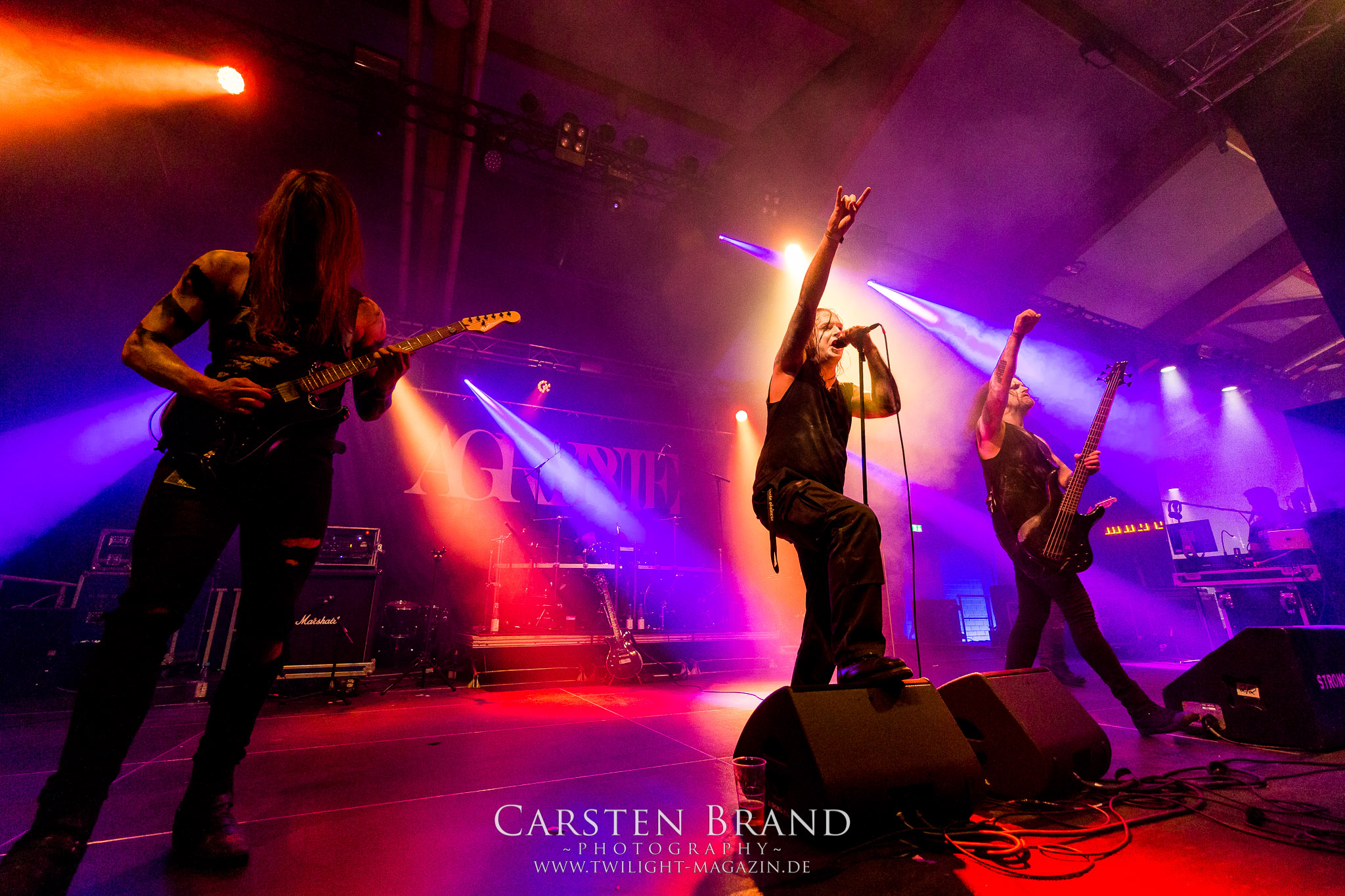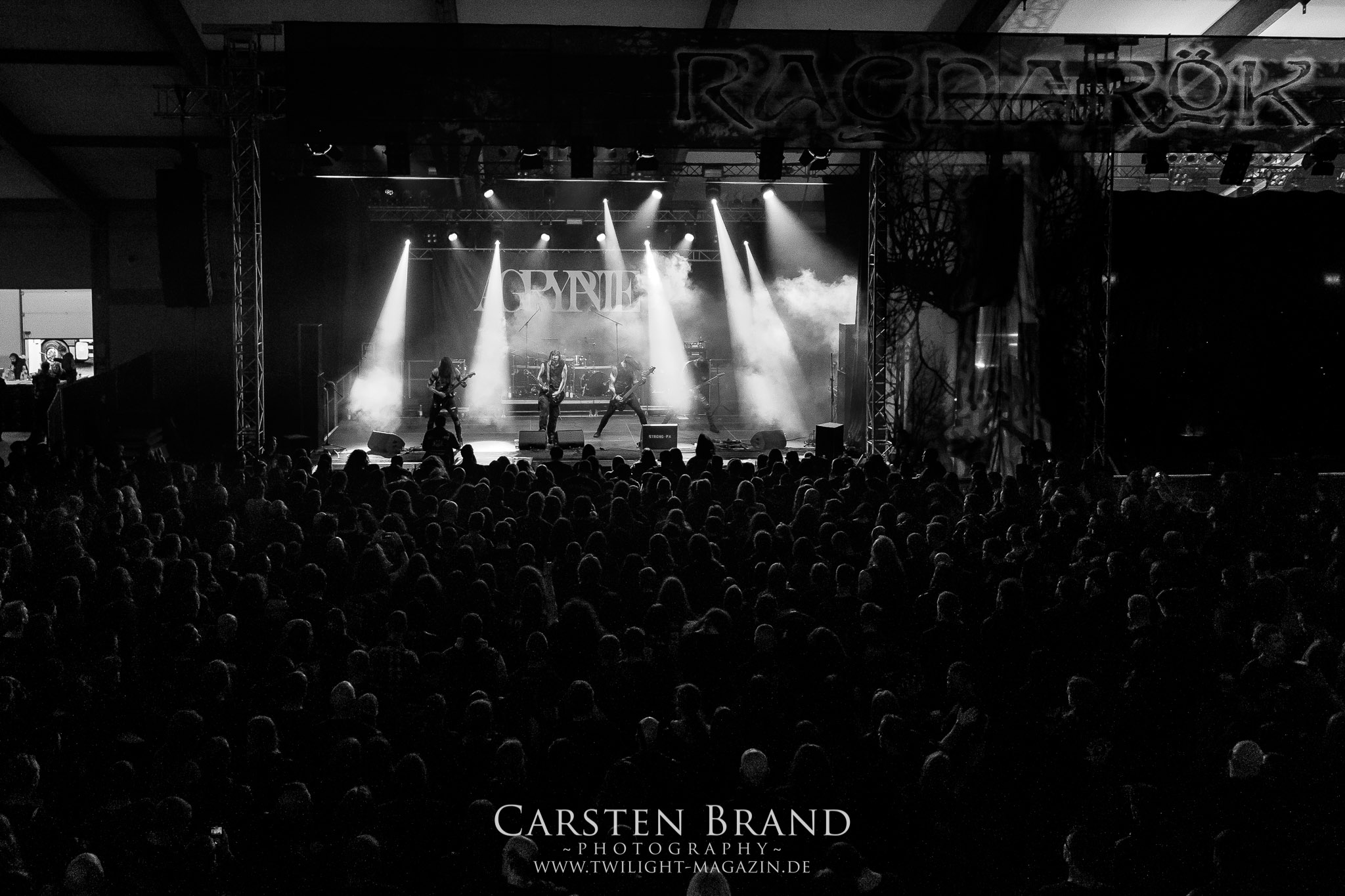 Deswegen stehen um kurz nach Sieben dann AGRYPNIE auf der Bühne, die auch nicht zum ersten Mal das Ragnarök beehren. Auch diesmal sind wieder neue Leute an Bord und wie schon zu erwarten gibt es auch wieder einen Gastauftritt: Frontmann J. J. von HARAKIRI FOR THE SKY darf bei „Die längste Nacht“ seine Stimmbänder malträtieren. Bei „Grenzgänger“ schnallt sich Frontmann Torsten dann selbst die Gitarre um und auch ein neuer Song vom demnächst erscheinenden Album darf auch nicht fehlen.