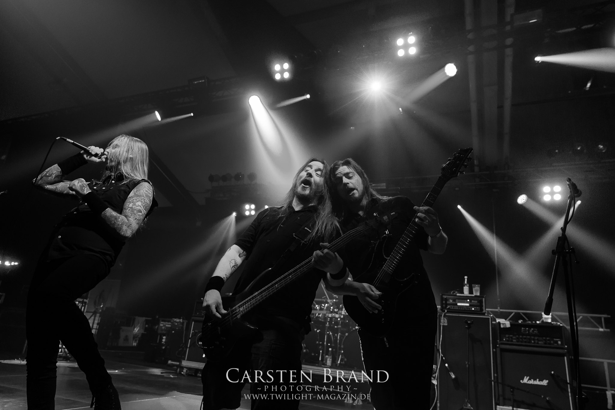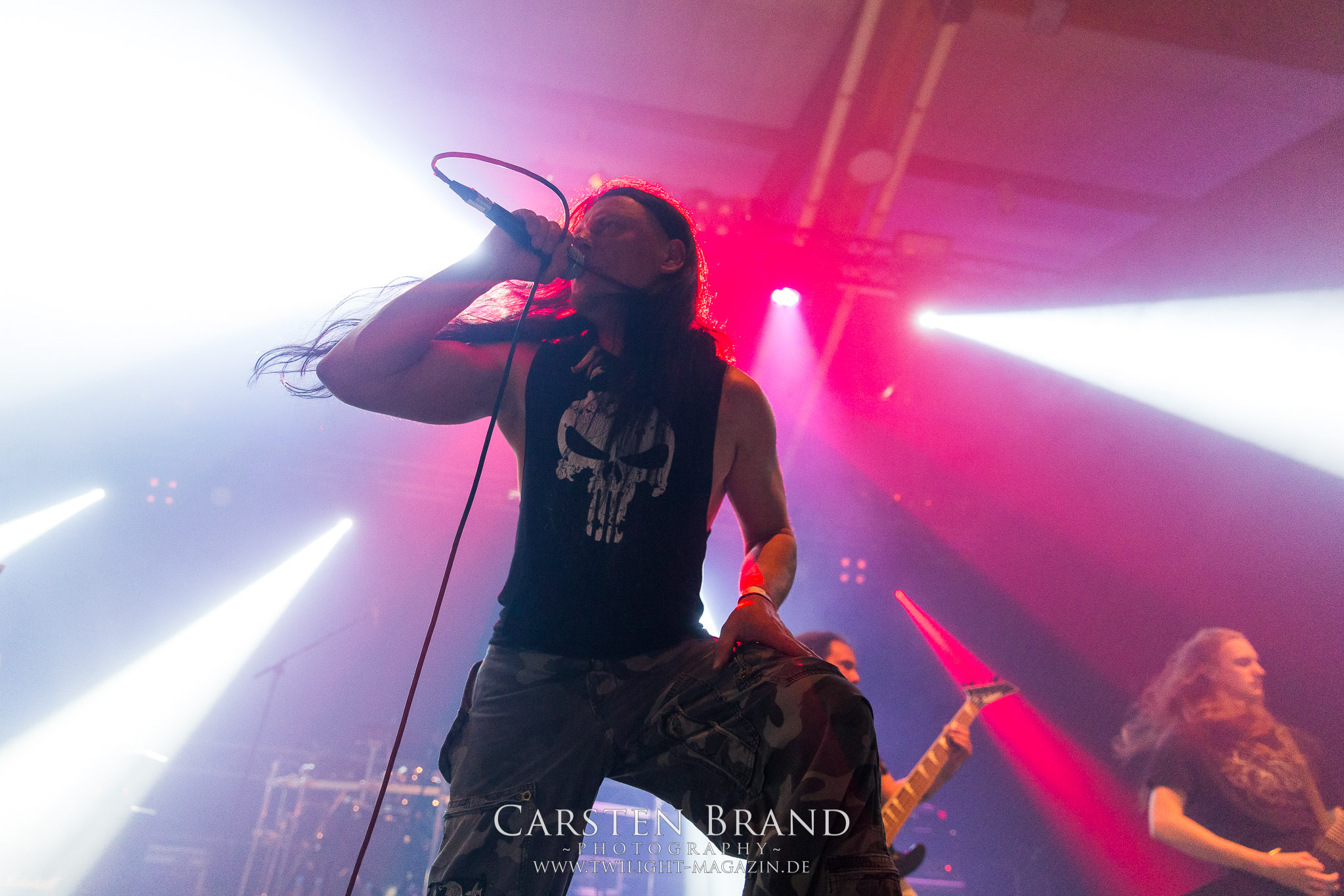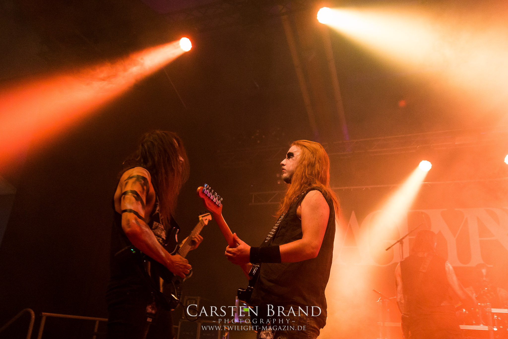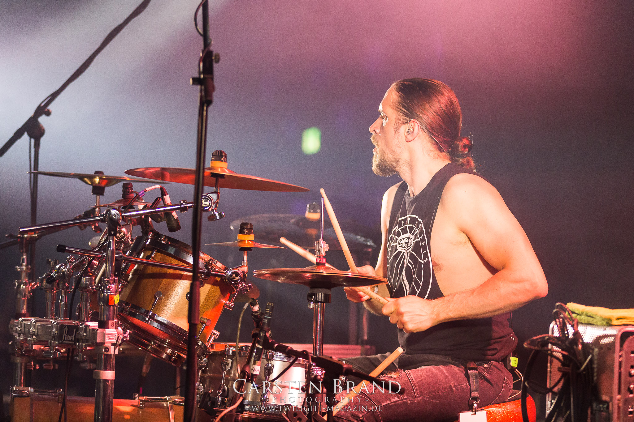 MORS PRINCIPIUM EST geben sich da um einiges abwechslungsreicher und die Finnen zeigen, wie frisch melodischer Death Metal klingen kann. Bei der Setlist konzentriert sich das Quartett vor allem auf das letzte sehr gute Album „Embers of a dying World“ und mit „Masquerade“ schaffen sie es, eine amtliche Moshpit vor der Bühne zu erzeugen.