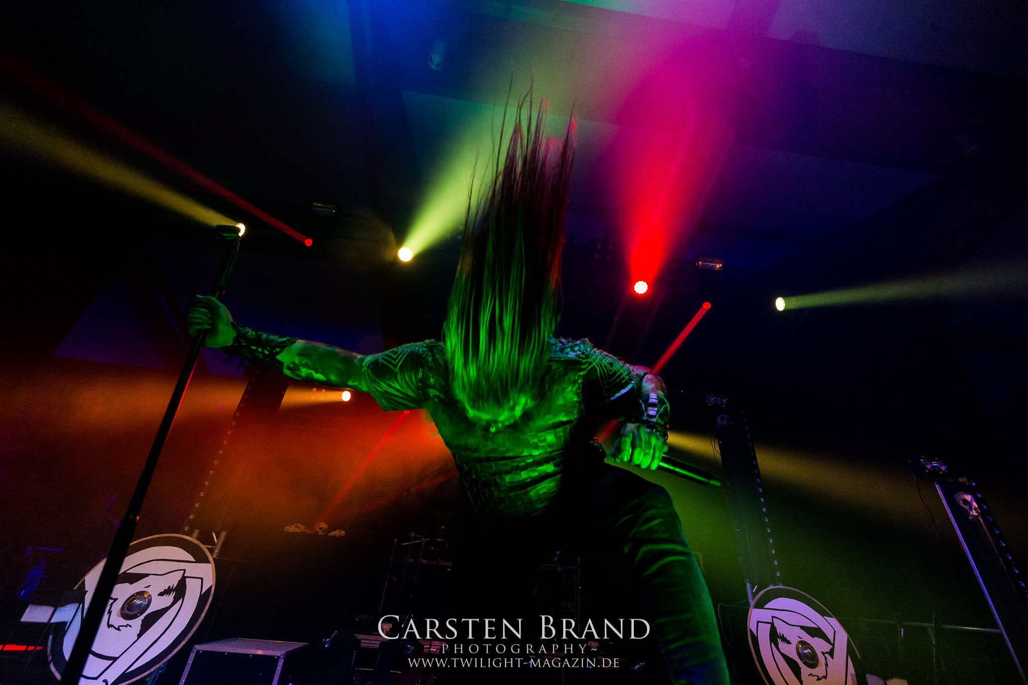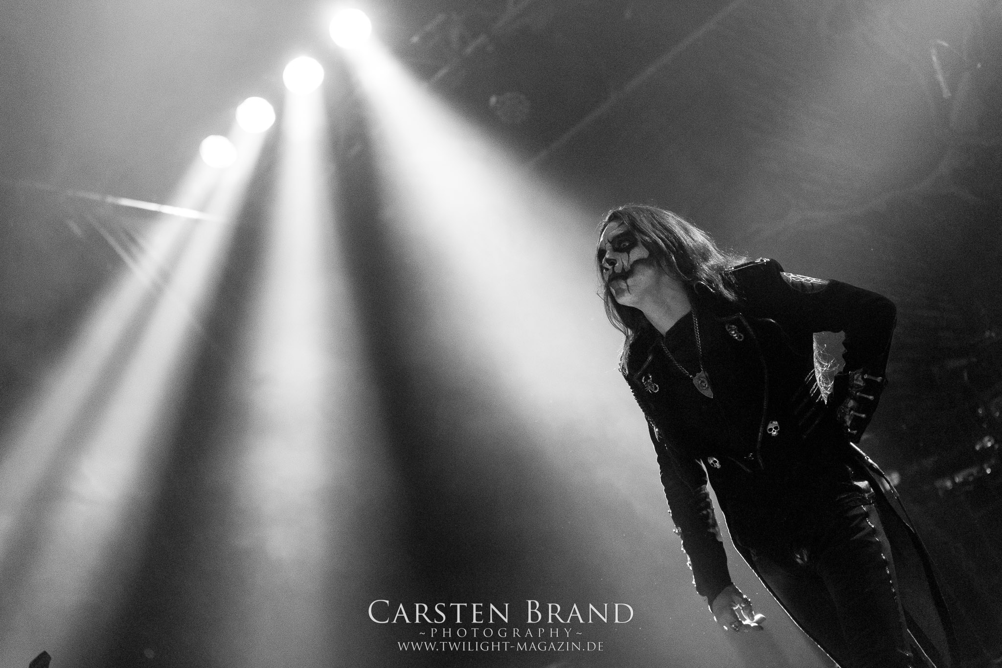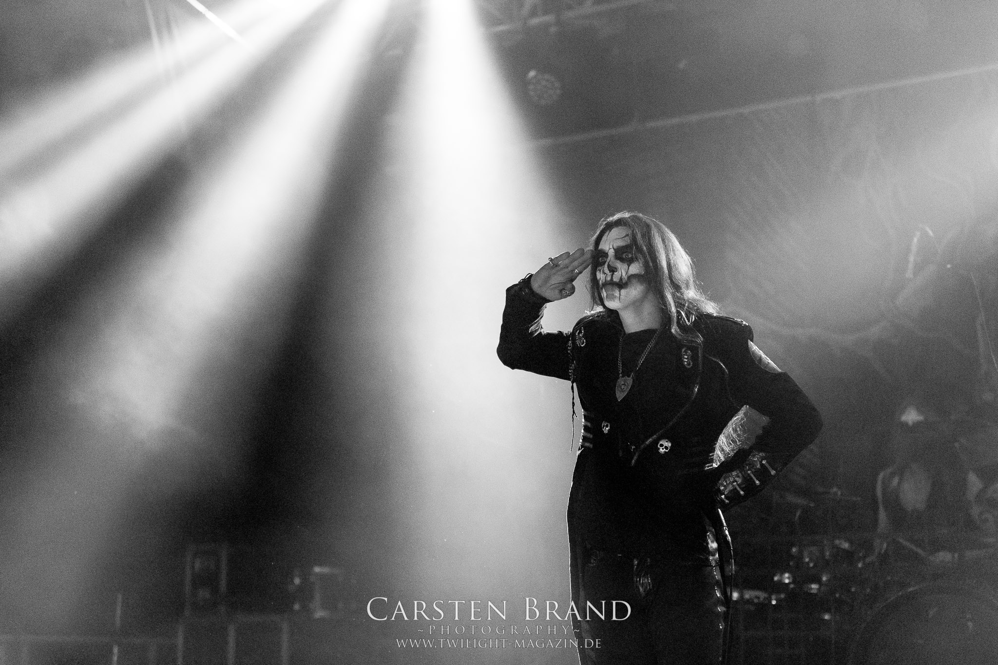 Wegen der zuvor erwähnten Ausfälle dürfen die Dark-Metaller CARACH ANGREN den Abend dann vorzeitig beenden. Dazu haben Sie ordentlich aufgefahren neben ordentlich Blitz und Nebel kommen Hebebühnen für Sänger und Gitarristen zum Einsatz. Trotzdem will der Funke nicht so recht überspringen und ein Großteil des Publikums, von ein paar Unentwegten direkt vor der Bühne abgesehen, schaut sich das Konzert eher interessiert als enthusiastisch an.