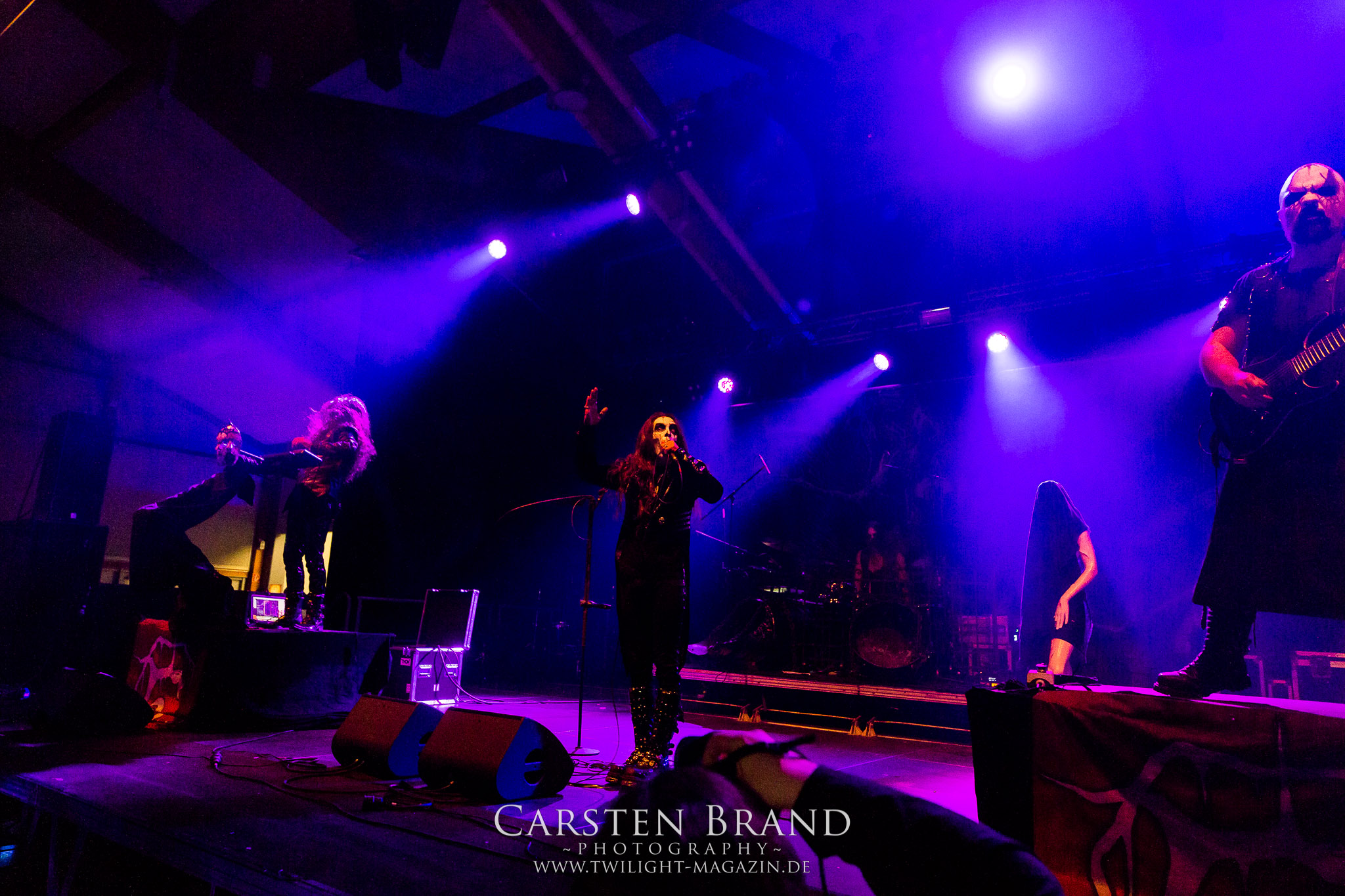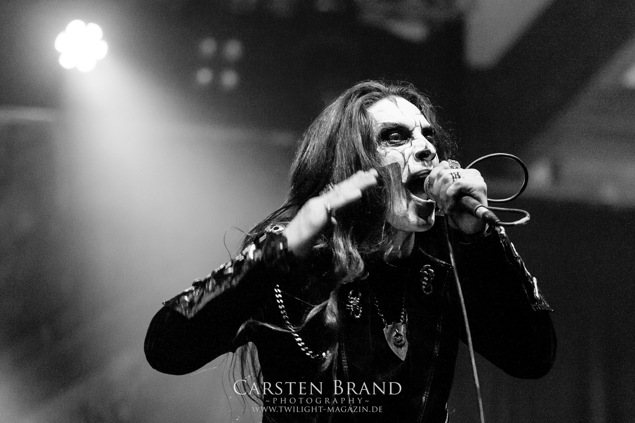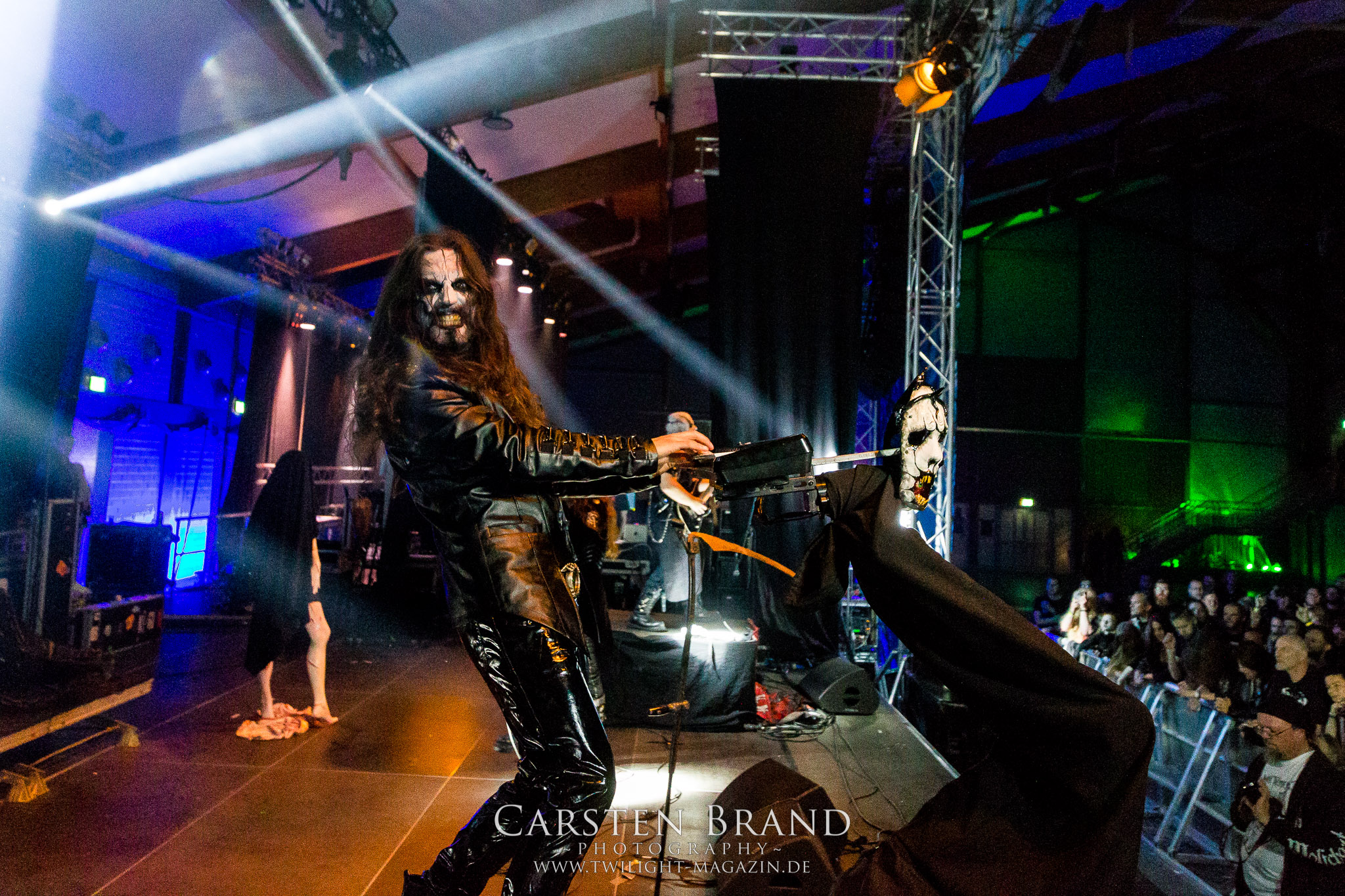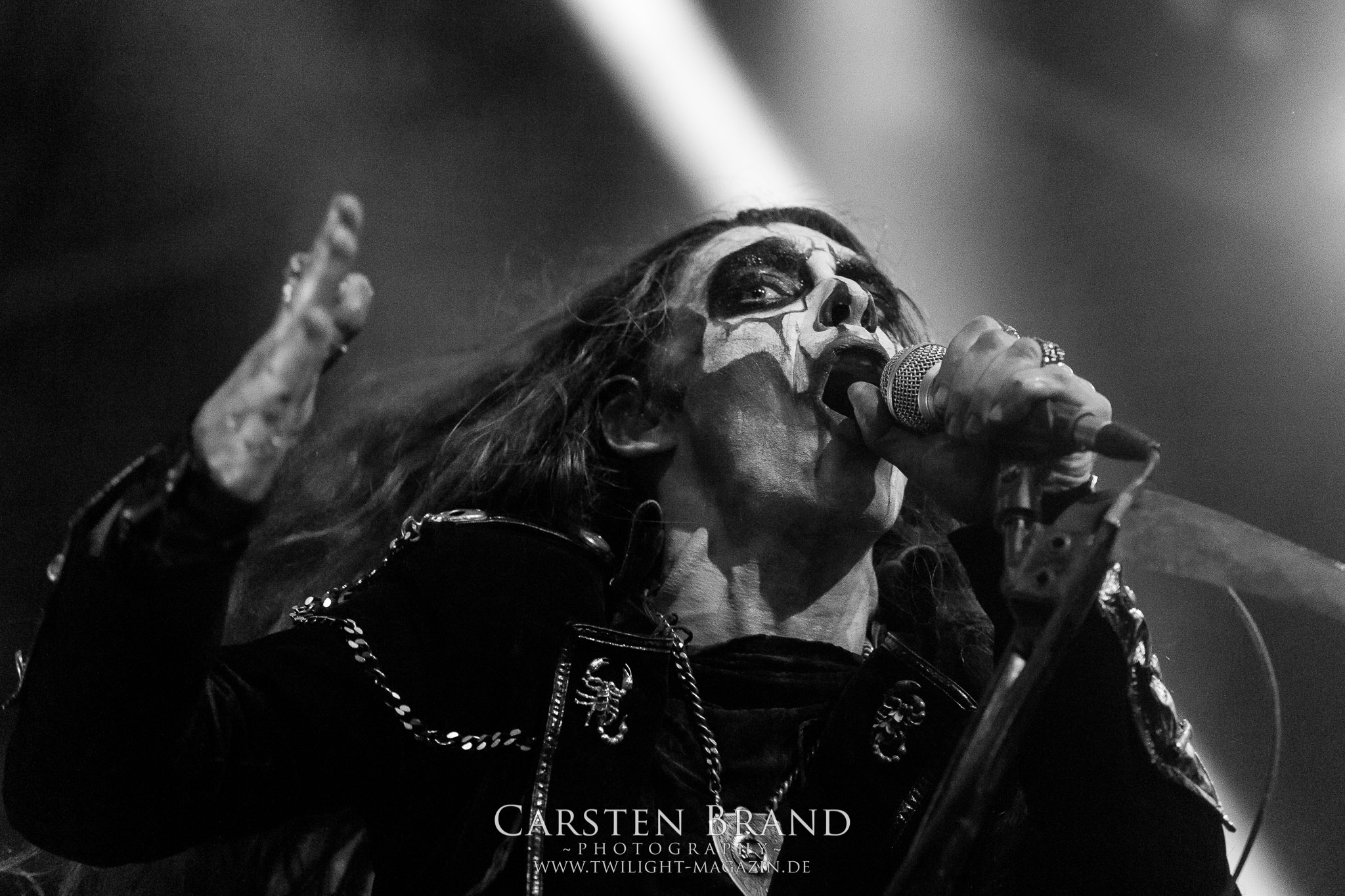 Wegen der zuvor erwähnten Ausfälle dürfen die Dark-Metaller CARACH ANGREN den Abend dann vorzeitig beenden. Dazu haben Sie ordentlich aufgefahren neben ordentlich Blitz und Nebel kommen Hebebühnen für Sänger und Gitarristen zum Einsatz. Trotzdem will der Funke nicht so recht überspringen und ein Großteil des Publikums, von ein paar Unentwegten direkt vor der Bühne abgesehen, schaut sich das Konzert eher interessiert als enthusiastisch an.