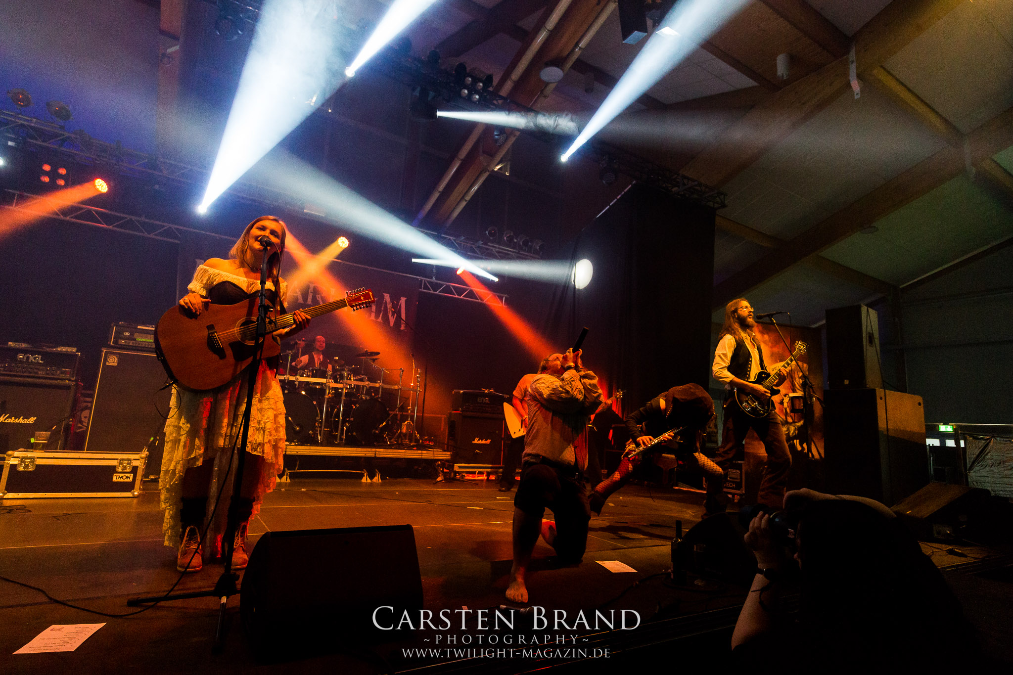 Musikalisch beginnt der Tag mit einer weiteren Hiobsbotschaft: Auch XIV DARK CENTURIES müssen ihren Auftritt absagen. Dieses Mal ist jedoch keine Fluggesellschaft schuld, sondern die Gesundheit des Frontmannes. Doch die Veranstalter lassen nichts unversucht und schaffen es tatsächlich, mit GERNOTSHAGEN sehr kurzfristig für Ersatz zu sorgen. So gibt es doch einige verwirrte Gesichter, als statt Orchester und Streichern auf einmal thüringische Wikinger auf der Bühne stehen und „Weltenbrand“ darbieten.