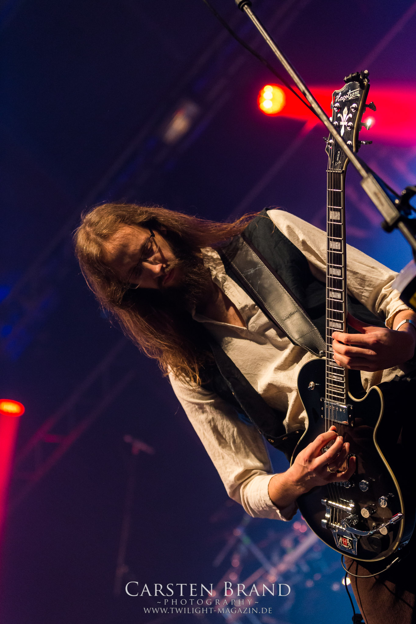 Mit tanzbarer Musik geht es bei ENSIFERUM weiter als inoffiziellem Headliner des zweiten Tages. Zur guten Stimmung trägt dabei bei, dass die Finnen „Lai Lai Hei“ schon als vierten Song spielen und dann bis zum Rausschmeißer „Iron“ die Qualität wie erwartet hoch halten.