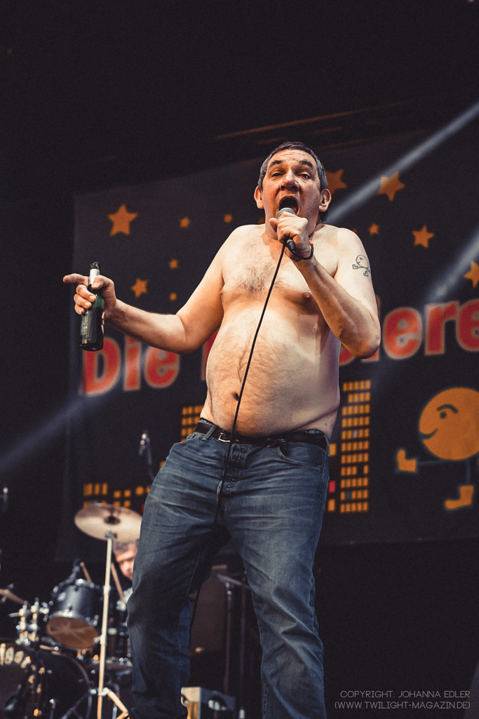 Der Promillehöhepunkt am Samstag wurde schließlich bei „Die Kassierer“ erreicht. Die Punkrock-Jungs aus dem Ruhrpott sind natürlich ein Klassiker, den man sich nicht entgehen lassen sollte. Mit ihren Hits wie "Blumenkohl am Pillermann, Mach die Titten frei denn ich will wichsen und Das schlimmste ist, wenn das Bier alle ist" hielten sie das Publikum bei Laune. Begleitet von witzigen Wortspielen zwischen dem Sänger "Wöfli" und seinen Kollegen krönte dieser den Auftritt standartgemäß mit einem Striptease. Die Menge gröhlte und die Stimmung war ausgelassen.