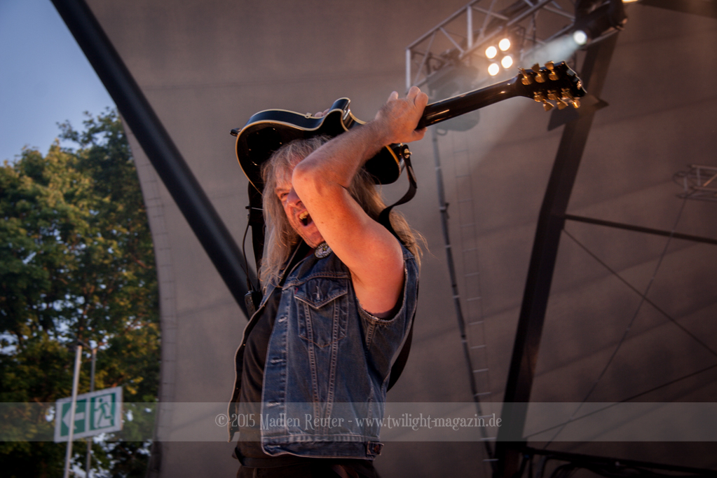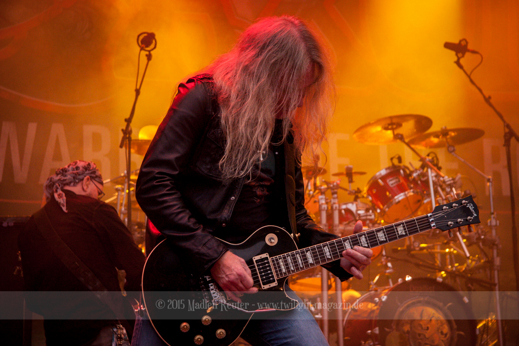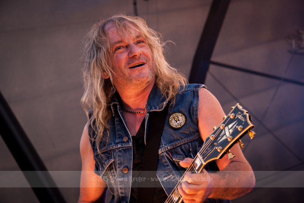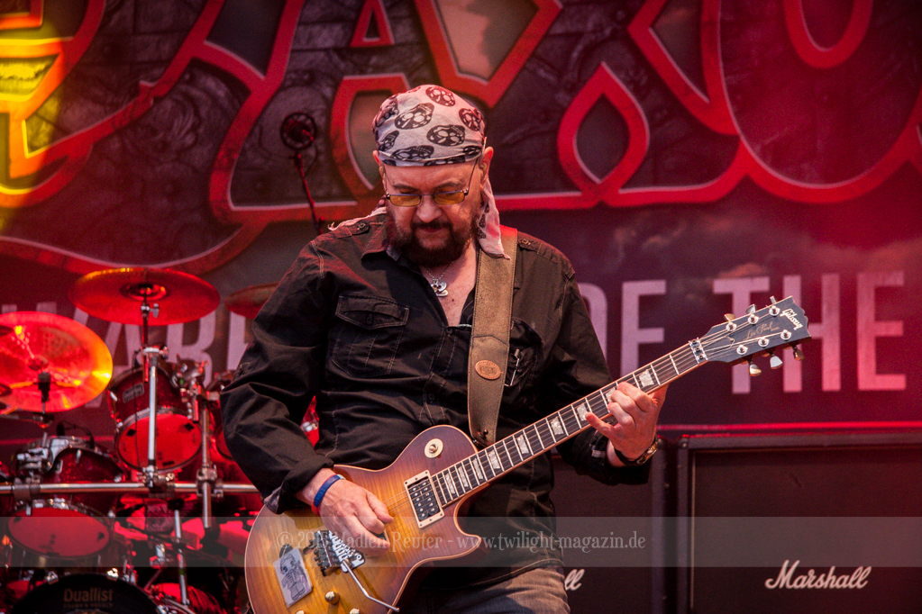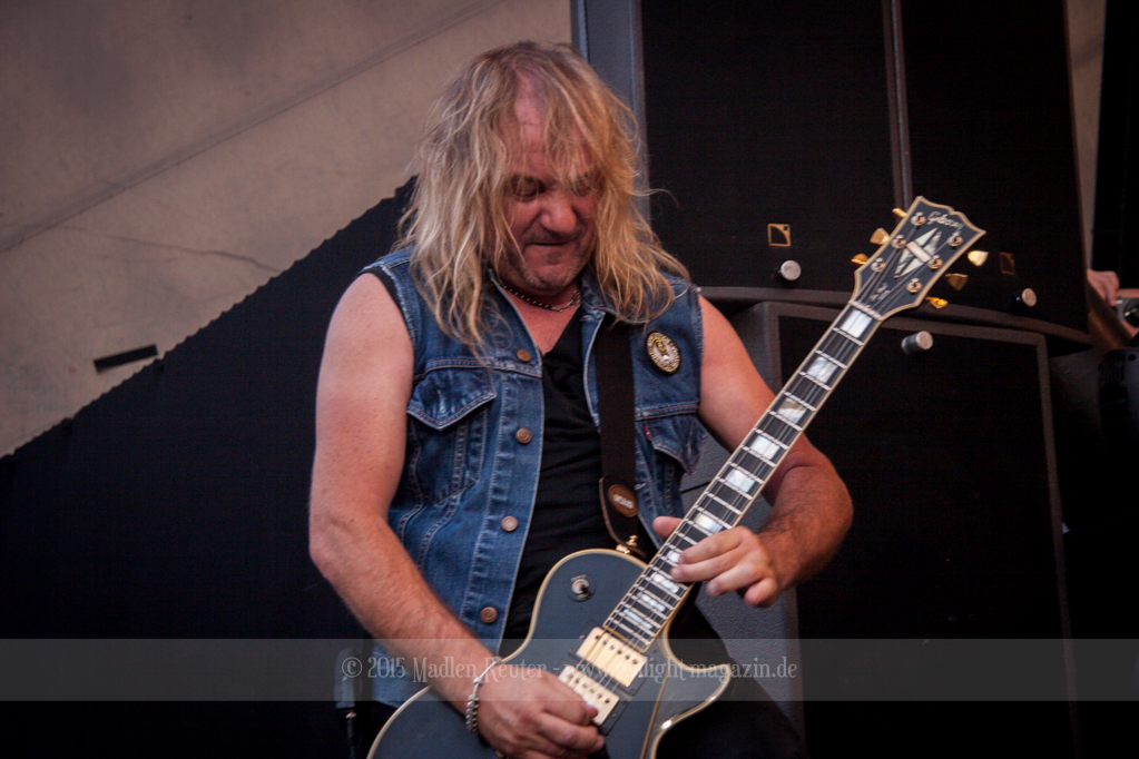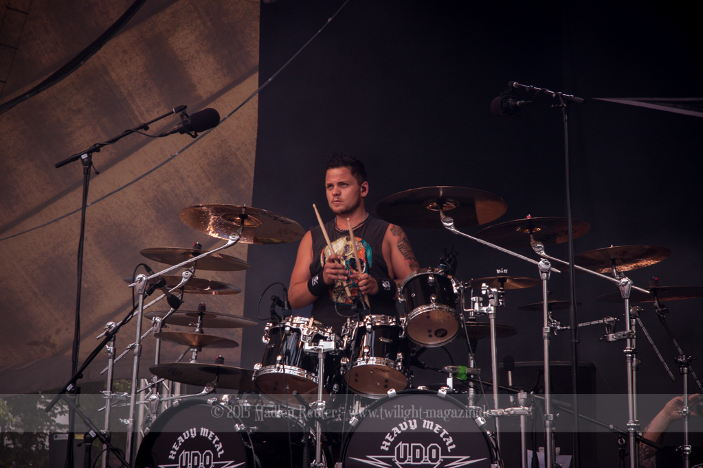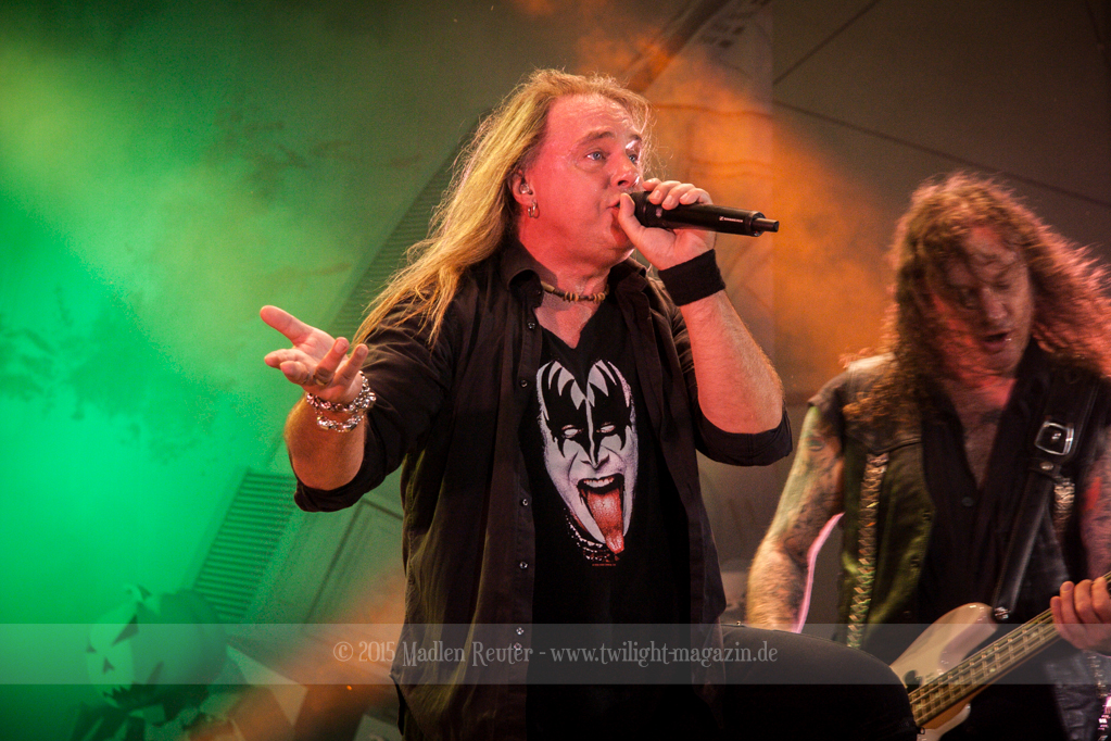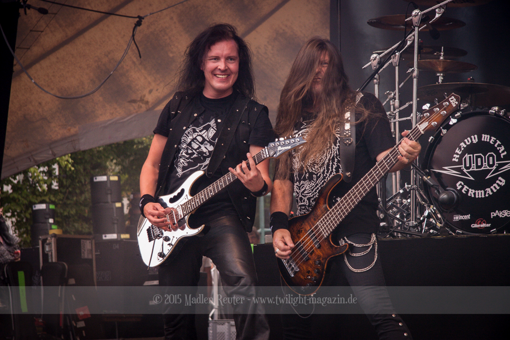 Als hätte das noch nicht gereicht, und als ob mein Nacken nicht schon genug beansprucht wurde, folgte U.D.O. als nächstes. Meine Laune wurde direkt nochmal besser, als die Herrschaften die Bühne betraten. Die haben einfach so eine Wirkung auf mich. Vor allem Kasperi und Fitty haben wieder viel miteinander „gespielt“, da muss man einfach Schmunzeln. Auch der Rest der Band hat alles dafür gegeben, das Publikum anzufeuern, und dies ist auch definitiv gelungen. Bei einer solch starken Setlist blieb eigentlich niemand mehr ruhig stehen. Vor allem habe ich mich sehr über „Metal Machine“ gefreut – Ich weiß nicht warum, aber ich liebe diesen Song abgöttisch. Lediglich die alteingesessenen ACCEPT-Fans hatten einen Grund sich zu beschweren, denn „Princess Of The Dawn“ wurde nicht gespielt. Für den letzen Song „Balls To The Wall“ bekamen die Jungs dann noch monströse Unterstützung, denn Mr Lordi gab sich ein Stelldichein mit dem German Tank. Das war ein Bild für die Götter!