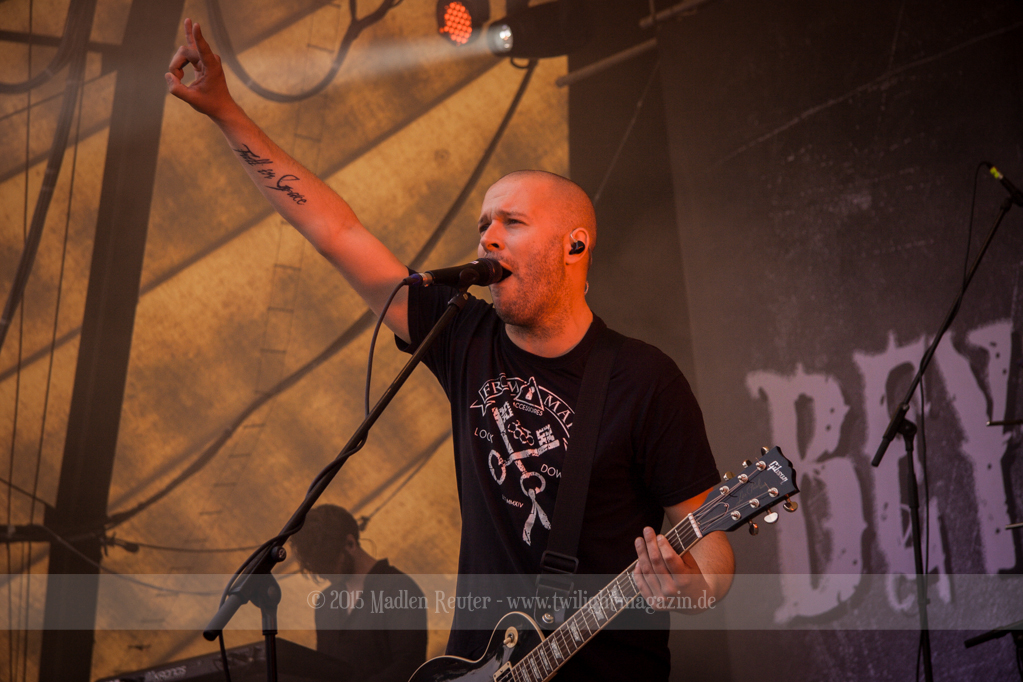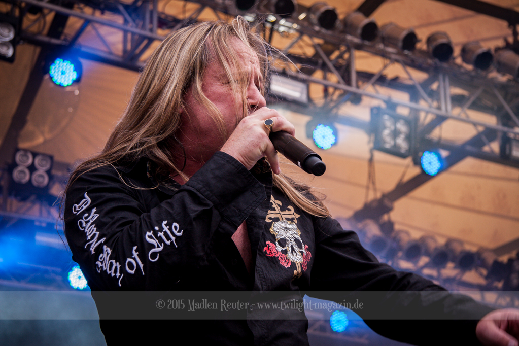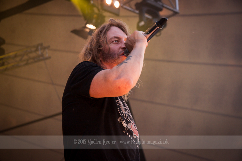 BRAINSTORM konnten von Anfang an Punkte sammeln, denn musikalisch war das ziemlich mein Ding. Dicke Songs, die ordentlich nach vorne gingen überzeugten allerdings nicht nur mich. Auch die verminderte Sonneneinstrahlung ließ eine schöne Lichtshow zu. Vor allem der Sänger flog quasi über die Bühne und spaßte mit dem Publikum herum. Der Rest der Band beschränkte sich aufs Headbangen, aber das reichte auch vollkommen aus. Bereits jetzt war die Laune extrem gut – Das konnte also nur noch super weiter gehen.