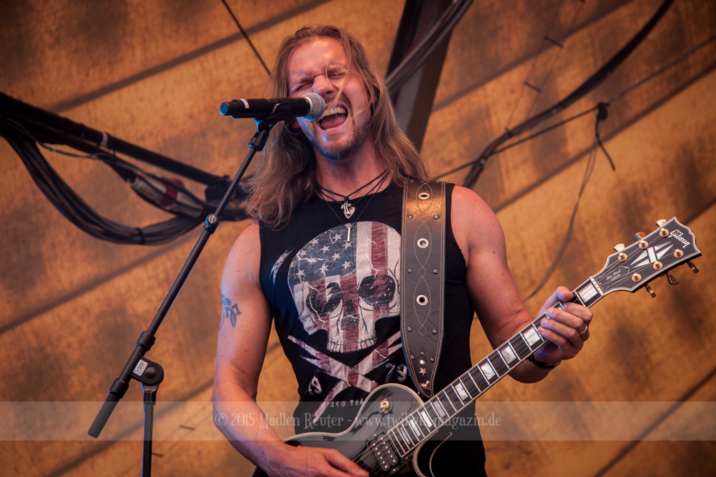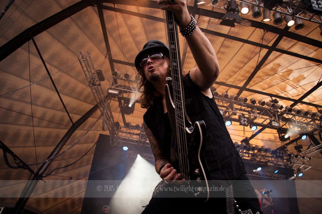 Weiter ging es mit GOTTHARD. Musikalisch finde ich die Band ziemlich gut, darum hatte ich mich schon sehr auf den Auftritt gefreut. Von ruhigen Songs bis zu fetten Rockhymnen haben die Jungs alles im Gepäck, und dies erfreute auch das Publikum sichtlich. Da nun die Sonne untergegangen war, wurde die Stimmung in den Zuschauerreihen, von Song zu Song, besser. Auch die Lichtshow konnte man nun viel besser wahrnehmen, und das war auch gut so. Bei einem Song durfte dann auch eine Handvoll Leute auf die Bühne, die zusammen mit der Band abfeierten. Sehr guter Auftritt, der für ausgelassene Stimmung sorgte, und Bock auf den Headliner machte.