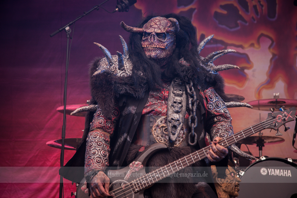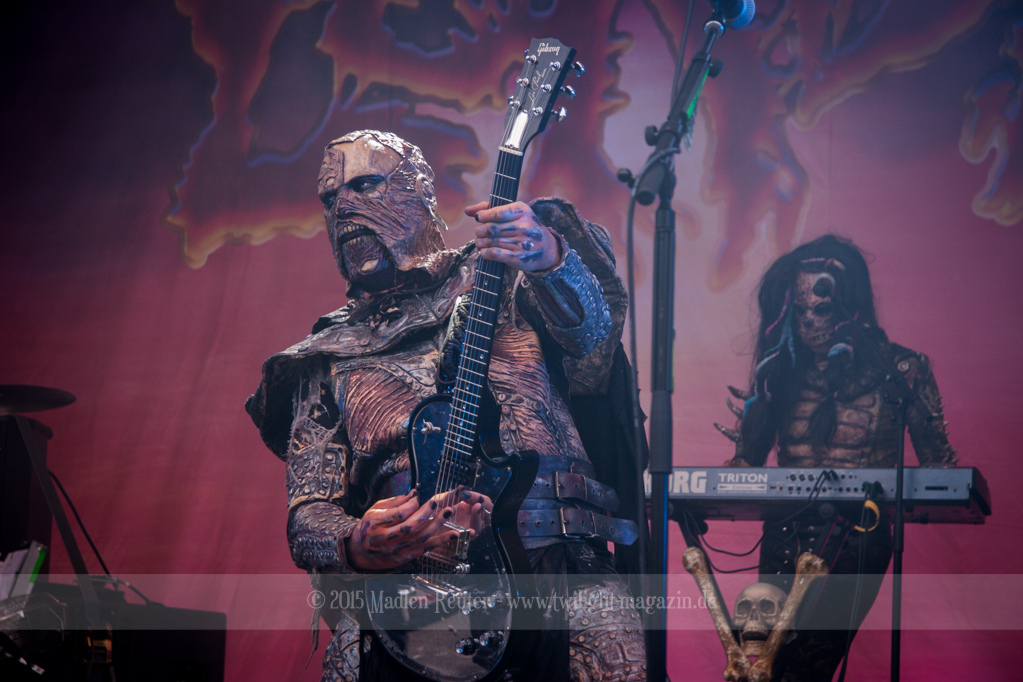 Dann wurde es auch schon Zeit für meine Lieblingsband, LORDI. Bei dem Wetter zolle ich noch größeren Respekt an die Monster, als ich es sonst schon tue, denn bereits vor dem ersten Song floss der Schweiß in Sturzbächen an ihnen hinunter. Einzig das Bassmonster scheint etwas träge, Gitarrist Amen und Aushilfskeyboarder Nalle geben dafür 120%. Halleluja, Nalle ist vielleicht ein geiler Typ – Der gute steht Hella in absolut gar nichts nach. Leider war die Setlist recht kurz, und kaum neue Songs fanden Platz darin. Lediglich „Nailed By The Hammer Of Frankenstein“ & „Scare Force One“ wurden gespielt. Auch der Livehit „Sincerely With Love“ wurde gestrichen, dafür fand jedoch „They Only Come Out At Night“ (Nein, kein Besuch von Udo.) einen Weg auf die Bühne. Als größte Überraschung entpuppte sich dann das ALICE COOPER Cover „He’s Back“ – Absolut geiler Song, und die Version der Monster ist einfach der Knaller! Und passend dazu, bekamen die Monster einen kurzen Besuch von Jason Voorhees. Ansonsten bleibt mir nicht viel zu sagen, die Show war der Hammer, und auch der Rest der zahlreichen Zuschauer war begeistert. Mit jedem Auftritt verliebe ich mich mehr in diese wunderhübschen Motherf*cker!