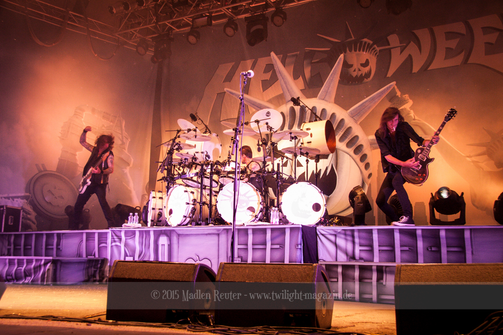 Mit HELLOWEEN wurde es dann auch schon Zeit für den Headliner des Wochenendes. Dies wurde auch dadurch unterstrichen, dass sich hier eindeutig die Meisten Zuschauer vor der Bühne versammelt hatten, und die Stimmung am besten war. Wie bereits bei SAXON konnte ich mit der Musik nicht viel anfangen, aber dafür war die Show ein Kracher! Vor allem das Backdrop und die absurd geniale Lichtshow haben mich vom Hocker gehauen. Auch das übertrieben große Drumkit, und der dahinter drapierte, riesige Zombie-Schneemannkopf machten ordentlich Eindruck. Auch die Band selbst legte sich kräftig ins Zeug und bot eine würdige Headlinershow.