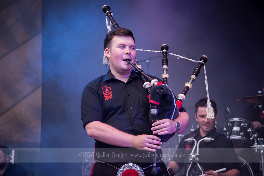 Mit den RED HOT CHILLI PIPERS ging es dann etwas anders weiter. Dieses Gespann hat sich in den letzen Jahren einen Namen gemacht, und durfte auch schon mehrfach in Wacken abrocken. Viele Spielereien, vorzugsweise mit dem bewundernswert aktiven Publikum, hatten oberste Priorität. Nebenbei überzeugten sie mit musikalischen Leckerbissen, in ihrer ganz eigenen Variante. Wäre es nicht so sengend heiß gewesen, hätte das ganze mehr Spaß gemacht.