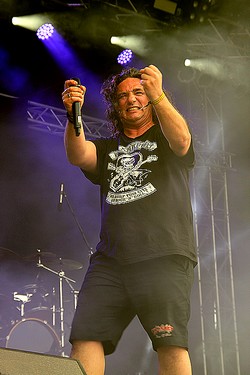 Wenn eine Band mit „Zombie Attack“ ins Set einsteigt und anschließend sofort „The Morning After“ vom Stapel lässt, kann ja eigentlich nicht mehr viel schief gehen. Die Frankfurter Biermetaller gehörten für mich zu den besten Bands des Festivals und Sänger Gerre tobte wie ein Irrer über die Bühne – und das obwohl ihm Wolle offenbar zumindest Teile des Bauches, den Gerre beim Rockharz Anno Dazumal in die Menge geworfen hatte, wiedergegeben hatte. Aber auch Basser Frank und Sechsaiter Andreas lieferten ein beachtliches Laufpensum ab. TANKARD haben nun wahrlich genügend bühnentaugliche Party-Metal-Thrash-Granaten im Petto, doch aufgrund der begrenzten Spielzahl von nur 45 Minuten musste eine Auswahl getroffen werden. Mit „Rules for Fools“, „Not One Day Dead“, „Rectifier“ und „A Girl Called Cerveza“ wurde vor allem der jüngeren Bandgeschichte gehuldigt, bevor nach „Freibier“ und dem obligatorischen „Empty Tankard“ schon wieder alles vorbei war. Einziger Kritikpunkt blieb für mich somit, dass kein Song des legendären „Meaning of Life“ Albums gespielt wurde. Aber wo sollte man hier anfangen, schließlich hätte ich auch gerne „Alien“, „Poison“, „Maniac Forces“ oder „Live to Dive“ gehört. Immerhin gab es mit „Chemical Invasion“ noch einen Song aus der guten alten Zeit. Während Sänger Gerre stellenweise als Grimassendouble für Vorabend-Dokusoap-Choleriker Detlef hätte einspringen können, wird es wohl bis in alle Ewigkeit ein ungelöstes Geheimnis bleiben, was gegen Mitte der Show mit Gerres Gürtel passierte.