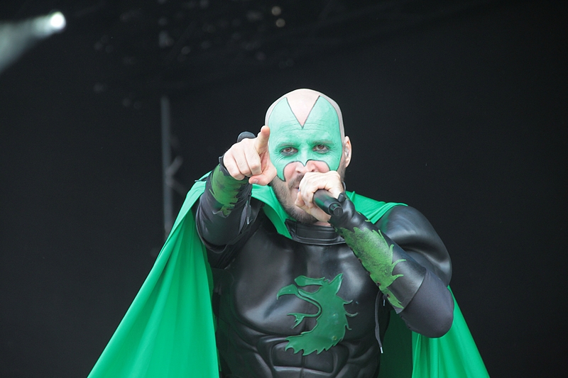 „Schon wieder Kostüme.“ hat sich so mancher Purist gedacht. Doch eine große Mehrheit der Rockharzer hatte den Auftritt der Heroic Fantasy Power Metaller GLORYHAMMERsehnsüchtig erwartet. Die 2010 von ALESTORM Frontmann Christopher Bowes gegründete Band nahm die Bühne im Sturm. Angus McFife XIII, Prince of the Galactic Empire of Fife, seines Zeichens “Voice Modulated Star Nucleus”, hat nicht nur einen bescheuerten Bühnennamen, sondern auch ein grenzwertiges Kostüm, trotzdem versprühte der sonnenbebrillte Frontmann jede Menge Energie und gute Laune.
