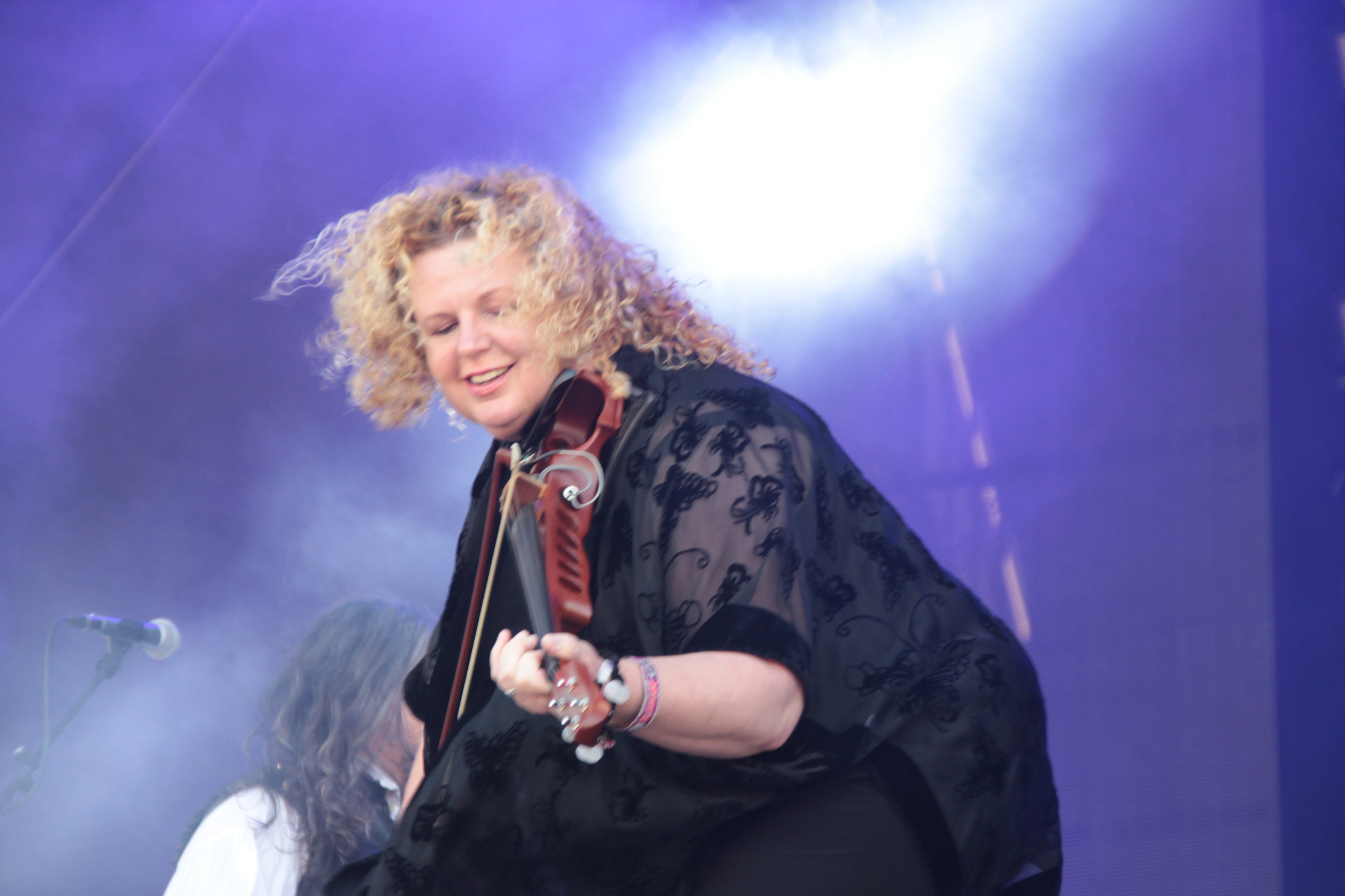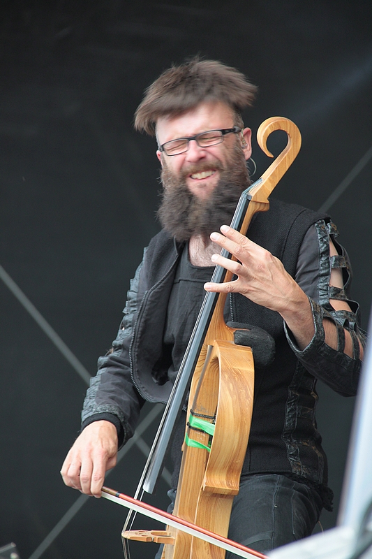 Die hohen Temperaturen und die fortgeschrittene Tageszeit waren der Grund, weshalb ich von WINTERSTORM nicht viel mitbekommen habe. Während die Band aus Bayreuth ihre Mischung aus Power, Folk und Epic Metal über das Infield ergoss, testeten wir das kulinarische Angebot und die Getränkestände. Dass der Heavy Metal mittlerweile in der Mitte der Gesellschaft angekommen ist, erkennt man nicht nur daran, dass man sich im Mutantenstadl bedienen lassen kann, sondern auch daran, dass sich die bösen Rocker des Nachts in ihrem Hotel über Ruhestörungen durch Schlagerfans beschweren sowie daran, dass ich noch nie auf einem Festival so viele (Kleinst-)Kinder gesehen habe wie auf diesem Rockharz. Bin gespannt, ob es im nächsten Jahr eine Kita geben wird. Dass sich ein Säugling wirklich an den Mittelalter-Rockern von BANNKREIS erfreuen kann, wage ich zu bezweifeln. Die zahlreichen Mittelalterfans hingegen schon. Tja, darf man die Band um Multi-Instrumentalistin Johanna Krins als Nebenprojekt von SUBWAY TO SALLY bezeichnen? Ich weiß es nicht. Ich finde ja, Delia sieht es anders. Fakt ist jedenfalls, dass neben Eric Fish am Mikro auch Bodenski, Simon Michael und Ingo Hampf bei Subway in Lohn und Brot stehen. Stilistisch orientiert man sich am 90er Jahre Sound von SUBWAY TO SALLY und entsprechend schunkelte die Fangemeinde auch vor der Bühne mit. Insgesamt ein durchaus unterhaltsamer Auftritt und so oder so wird man behaupten können, dass man zu den Ersten gehörte, der die Band auf der großen Bühne gesehen hat. Weitere Auftritte in Wacken und beim Mera Luna folgen.