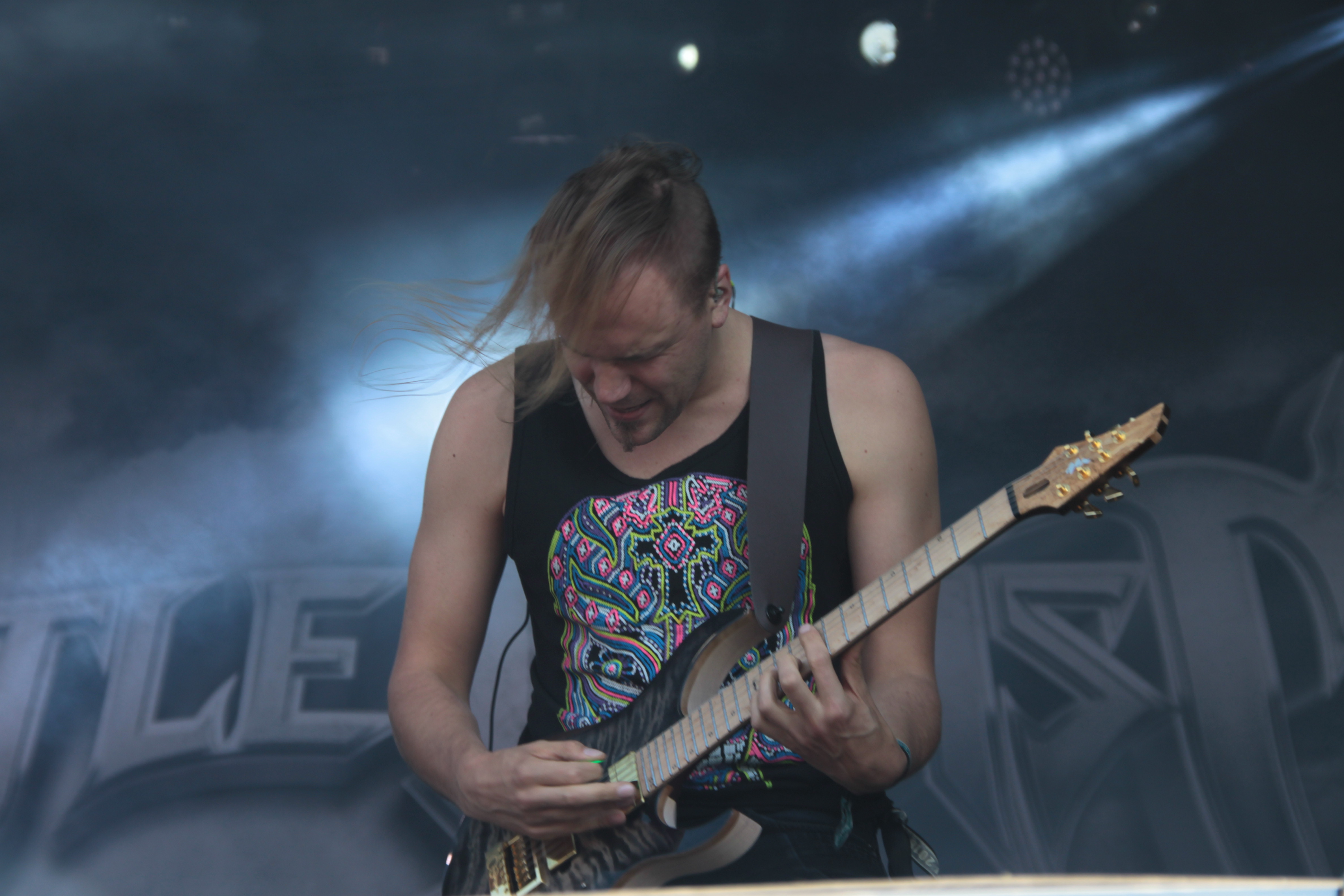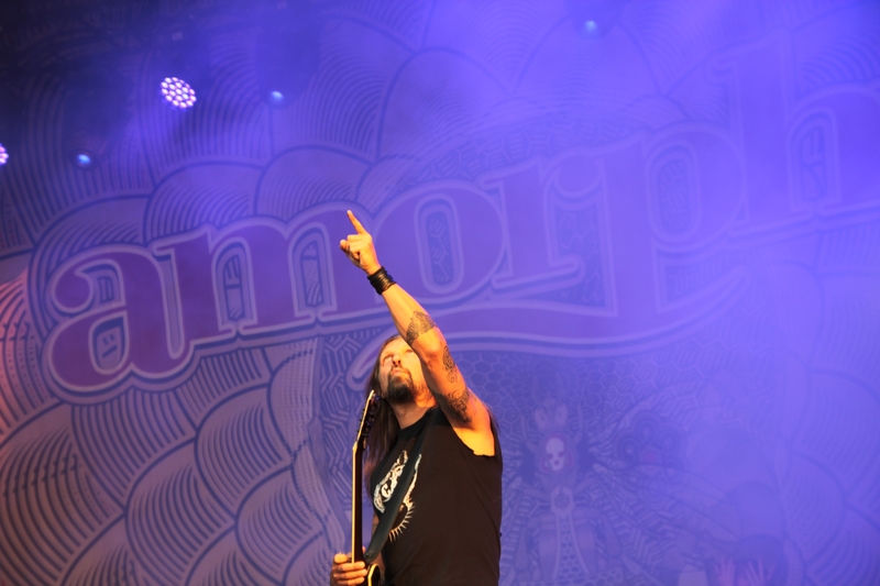 Etwas Linderung brachten AMORPHIS, auf die ich mich ebenfalls gefreut habe. Meine letzten Liveerfahrungen mit den Finnen liegt wohl in den Jahren vor dem Logo-Relaunch Mitte der 90er Jahre. Ob beim Wacken oder im Capitol in Hannover, die Band hatte seinerzeit stets mit miesem Sound zu kämpfen und einen wahrlich schlechten Ruf als Liveband. Insofern war ich gespannt, was die Jungs um die Axtmänner Tomi Koivusaari und Esa Holopainen anno 2018 zu bieten haben würden. Los ging es bei strahlendem Sonnenschein mit dem Opener des aktuellen Longplayers „Queen of Time“: „The Bee“.