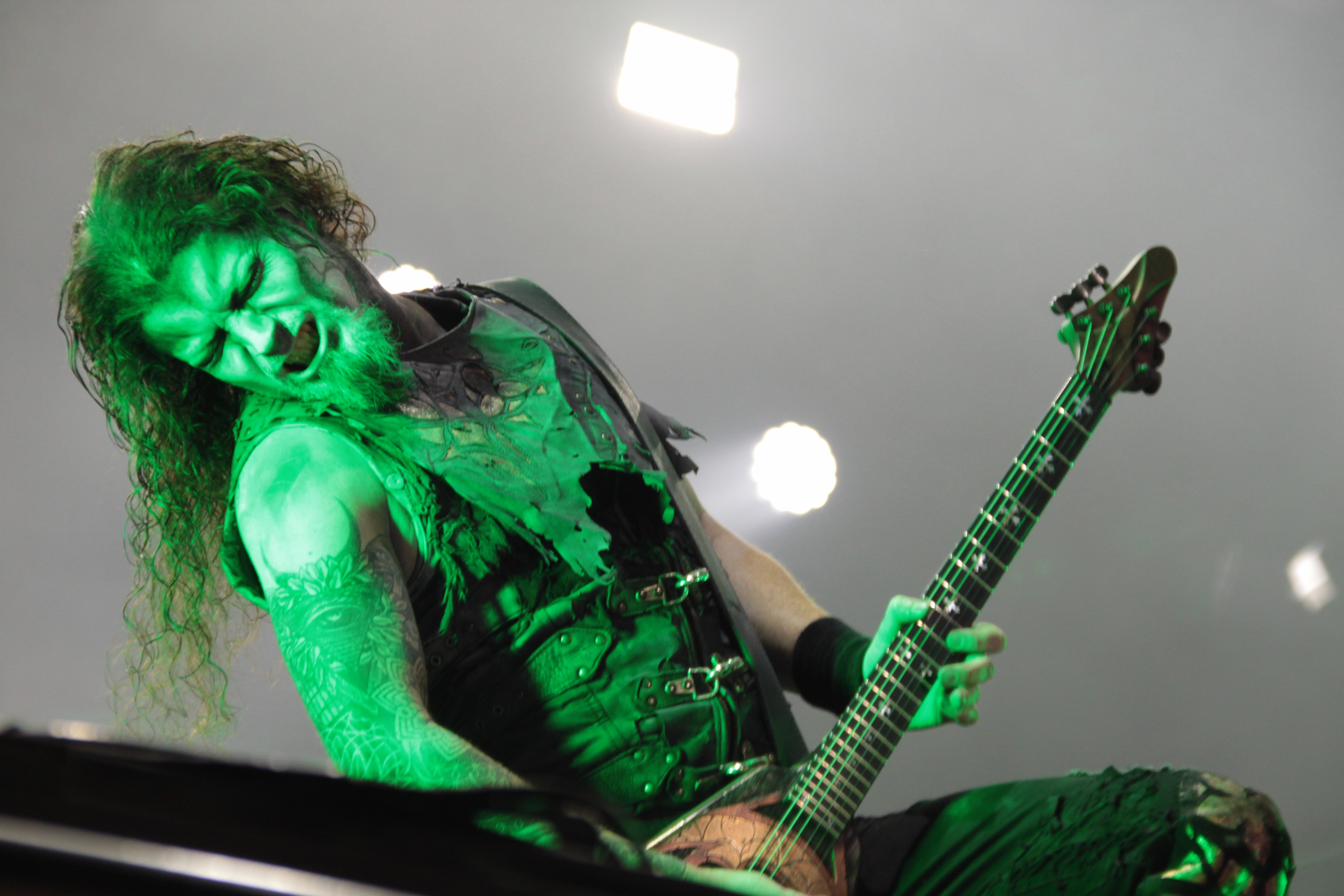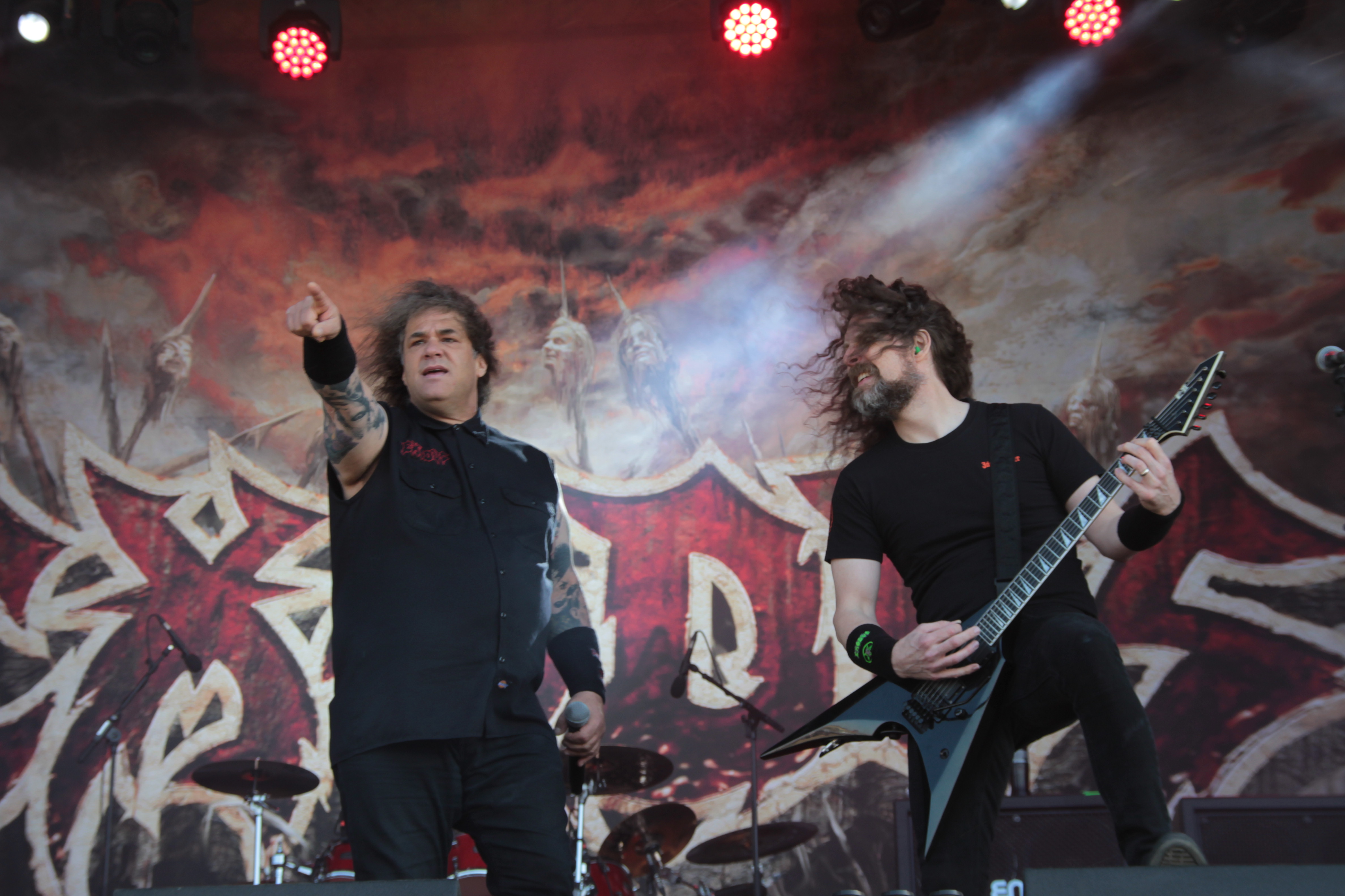 Der erste große Metalmagnet des ausverkauften Samstags war zweifellos die Bay Area Thrash Legende EXODUS. Während sich Klampfer Gary Holt weiterhin mit SLAYER vergnügt, thrashten sich Steve Souza & Co freudig durch deutsche Lande und gastierten nun also auch in Ballenstedt. Den Gitarrenposten an der Seite von Lee Altus übernahm ein weiteres Mal sein HEATHEN Mitstreiter Kragen Lum, der optisch auch gut ins Line Up passt. Mit wehenden Haaren und jeder Menge Spielerfahrung donnerte der kalifornische Fünfer neues und altes Material durch die Boxen, z. B. „Blood In, Blood Out“, „And then there were none“ oder „A Lesson In Violence“. Der Höhepunkt der Show war natürlich der Schluss mit Klassikern wie dem genialen „Blacklist“, „Toxic Waltz“ und „Bonded By Blood“. Wieder einmal bewiesen die Amis weshalb sie seit so vielen Jahren zur Speerspitze des internationalen Thrash Metal gehören. Trotz einer gewissen Routine auf der Bühne versprühte die Band doch auch Spielfreude und am Ende war klar: Für diese zentnerschweren Riffs müssen die Jungs im Flugzeug sicher Übergepäck bezahlen.