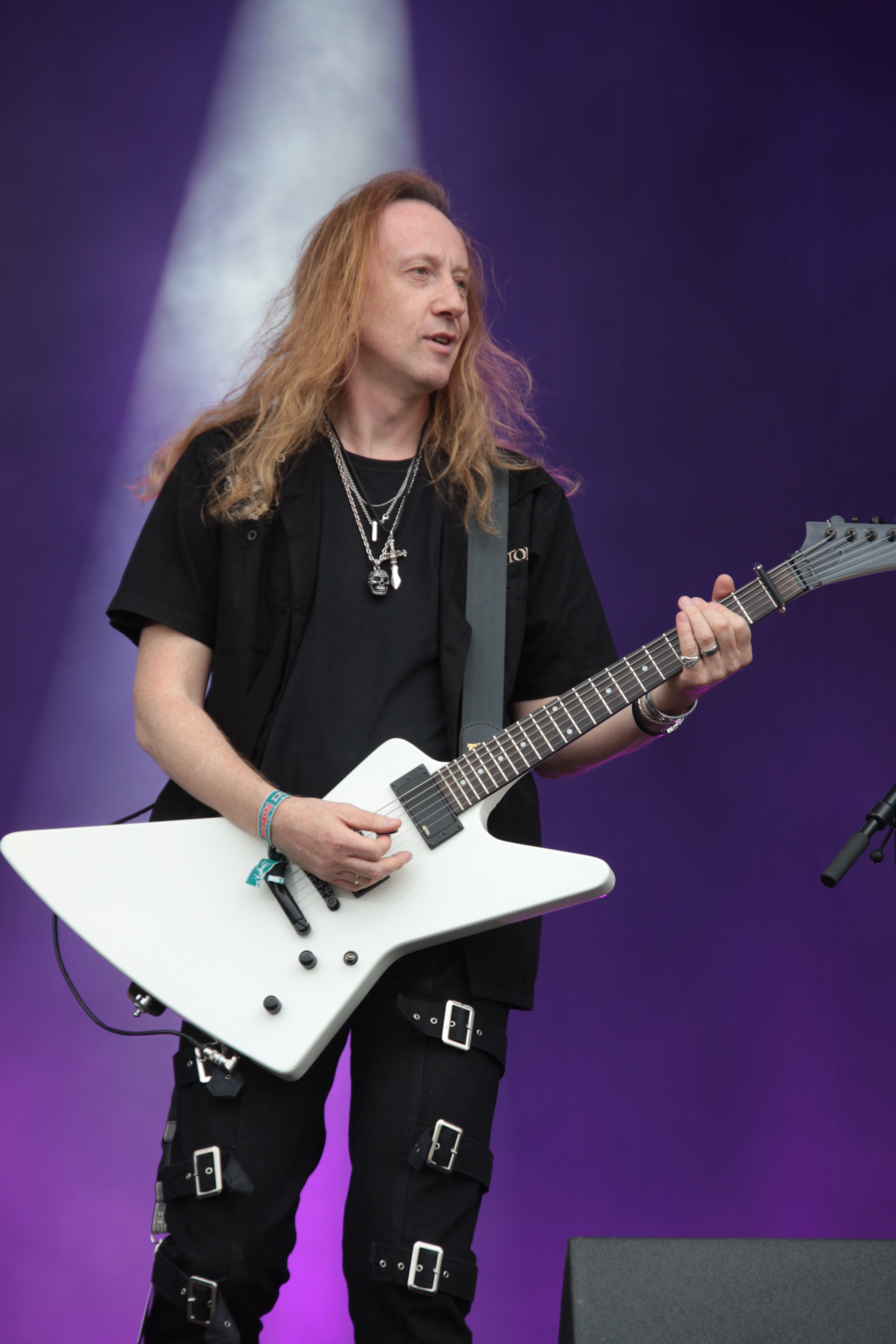 ROSS THE BOSS jagt natürlich jedem truen Metaljünger einen epischen Schauer durch den Baumwollschlüpper, immerhin hat der New Yorker Ross Friedman mit MANOWAR sechs Alben aufgenommen. Dementsprechend würde man wohl auch lügen, wenn man behaupten würde, dass die Fans vor der Bühne gekommen waren, um Songs von den ROSS THE BOSS Alben zu hören. Nein, die Metalheads waren scharf auf MANOWAR Klassiker. Mittlerweile ist mit dem Ami Marc Lopes ein neuen Sänger an Bord. Und auch wenn man das Gefühl hatte, dass sich der Lockenkopf zu sehr im hinteren Teil der Bühne verstecke, so war er stimmlich doch durchweg präsent und lieferte einen richtig guten Job ab. Klar, dass Songs wie „Fighting the World“, „Blood of my Enemies“, “Battle Hyms” oder „Hail and Kill“ richtig abgefeiert wurden.