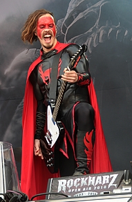 Um kurz vor Elf war dann die Zeit für den heutigen Headliner HAMMERFALL gekommen. Die Schweden hatte – passenderweise – eine „Harz on Fire“ Show angekündigt. Die Erwartungen waren hoch. Ursprünglich war die Power Metal Band ja ein Projekt von IN FLAMES Klampfer Jesper Strömblad und Oscar Dronjak, der damals noch bei der Death Metal Band CRYSTAL AGE klampfte. Das hatte sich nach den schnellen Erfolgen mit HAMMERFALL jedoch bald erledigt und 1997 löste „Glory to the Brave“ einen wahren True Metal Boom aus – und leitete für das Label Nuclear Blast eine neue Ära ein. Wie auch immer, Frontmann Joacim und seine Jungs stürmten die Bühne und feuerten ihr True Metal Feuerwerk ab.