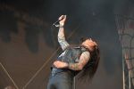 Da waren AMARANTHE doch von ganz anderem Kaliber. Auf die Schweden, die ich noch nie live gesehen hatte, habe ich mich am meisten gefreut. Und es sollte sich zeigen, dass die Veranstalter mit dem „Einkauf“ der Truppe definitiv ein gutes Händchen bewiesen haben. Mit dem Opener „Maximize“ vom aktuellen Album „Maximalism“ konnte Sechser die Bühne und das Infield sofort in seinen Bann ziehen. Das Trio Nils Molin (der im letzten Jahr Jake E. Lundberg ersetzt hatte), Henrik Englund Wilhelmsson und Elize Ryd füllte die Bühne von der ersten Sekunde an aus und strahlte fast mehr Energie aus als die brennende Julisonne. Mit „On The Rocks“ ging es aktuell weiter – das umstrittene „That Song“ sparte man sich. Wäre live allerdings interessant gewesen. „Digital World“ leite zum brachialen „Dynamite“ über, bevor es mit „1000000 Lightyears“ den ersten Superhit gab. Grandioser Song, grandiose Performance! Mit „Invincible“ wurde den Fans kaum Zeit zum Durchatmen gegeben. Erst mit dem langsamen, aber doch genialen „Amaranthine“ gab es eine kurze Verschnaufpause im Modern Metal Zirkus. Das Ende der Show kam viel zu früh und mit „Hunger“, „Drop Dead Cynical“ und „The Nexus“ sogen die Schweden nochmal alle Register. Ich bin bekanntlich kein Modern Metal oder Metalcore Fan, aber AMARANTHE holten sich an diesem Freitag ohne Probleme den Pokal für die beste Band des Tages. Und wie sich zeigen sollte, konnte auch im weiteren Verlauf des Festivals keine Band an die energiegeladene Performance von Elize und ihren Jungs herankommen. AMARANTHE ist gelungen, was vielen Bands nicht gelingt: sie haben das Publikum mit ihrem Auftritt bestens unterhalten. Alle Daumen hoch für AMARANTHE!