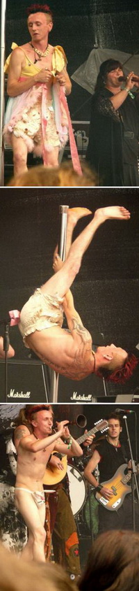 "Wir sind fett, wir sind hässlich, wir sind asozial, wir sind Schelmish" – so kündigt sich die vielköpfige Mittelalter-Rock-Formation für gewöhnlich an. Und man möchte hinzufügen: "Wir sind spaßig!" Denn die Band, die ein mir nahe stehender Zuschauer charmant als "Kelly-Family der Metal-Szene" vorstellte, war in Rockbesetzung angereist, und brannte vor grauem Himmel ein wahres Feuerwerk ab. "Wir haben wenig Zeit, daher werden wir wenig reden", kündigte Zweitsänger und Gitarrist Dextro an – nur, um dann umso weitschweifiger die Geschichte eines schwulen Renaissance-Königs aus Italien zu erzählen. Eben jener König habe einen Haus- und Hoftänzer namens "Daphne" gehalten, den "wir euch mitgebracht haben. Seid gewarnt: Es wird nicht sehr anmutig..." Zu Dudelsäcken und Schalmeien kommt von hinten Pfeifensackspieler Luzi auf die Bühne eingekleidet mit ulkiger Renaissance-Mode. Unter dem Gejohle der Menge und mit vielen hölzernen Bewegungen, die wohl lasziv wirken sollen, wird er ein ulkiges Kleidungsstück nach dem anderen los, tanzt an der Stange und spielt das nächste Lied nur im Häschen-Tanga. "Wir haben schon versucht, den kleinen Scheißer zu vermieten, hat nur bis jetzt keiner angebissen", verkündet Dextro. Wir wissen, warum...