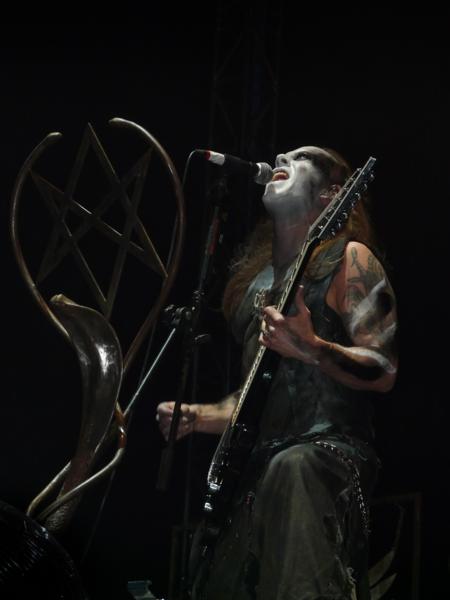 Behemoth starteten mit schweren Soundproblemen. Von vornerein kam bei der Schar der Fans nur musikalischer Brei an, der das Heraushören der einzelnen Titel schier unmöglich machte, was aber nach mehrfacher Rücksprache mit den Technickern langsam besser wurde. Die anwesende Meute kümmerte das aber ohnehin eher weniger, denn die machte schon am Anfang mit vollem Einsatz mit. Und während Sänger Nergal in einem Pseudo-Bauchmuskel-Suit vor seinem in Hexagramm-Form gehaltenen Mikrofon rumzeterte, bekam man obendrein noch eine sehr gute Lichtshow zu sehen.