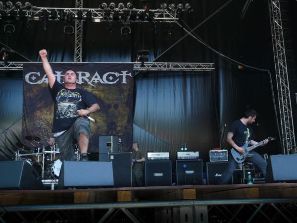 "Nö." Das fasst so ziemlich alles zusammen, was ich zu Cataract, meiner ersten Band für den Tag, zu sagen habe. Denn irgendwie wurde ich den Eindruck nicht los, dass die Metalcore-Fraktion aus der Schweiz eine Dreiviertelstunde lang ein und denselben Song spielte: Flaches Akkord-Gebrate, ein wenig Geschimpfe dazu, kaum bis keine Bühnenaktivität. Zum Glück sah das wohl nicht jeder so, denn ein paar der knapp 500 Leute vor der Mainstage starteten immerhin eine kleine Strohschlacht, während die Festivalsicherheit mit einem Feuerwehrschlauch kühles Nass von oben spendete, um den Anwesenden die Mittagshitze etwas zu erleichtern. So konnte man - wenn man dem Gig schon nichts abgewinnen konnte - wenigstens nebenher duschen. =P