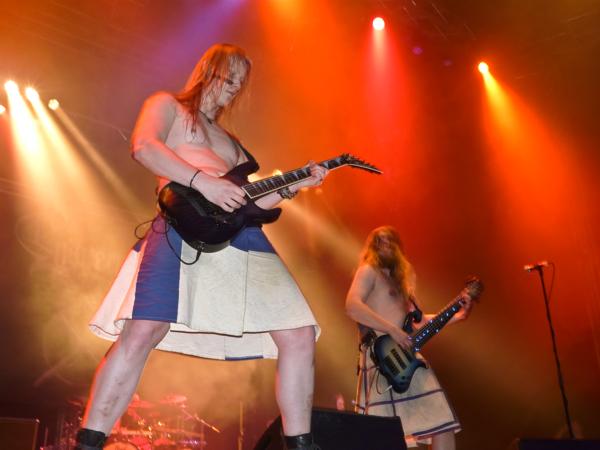 Als nächstes standen Ensiferum in Röcken und mit Kriegsbemalung vor uns auf der Bühne und legten einen Auftritt hin, der sich gewaschen hat. Trotz leichter tontechnischer Schwierigkeiten machten Lieder wie "Tale of Revenge", "Treacherous Gods" und "Iron" richtig Stimmung und verleiteten die Menge zum lauten Mitsingen. Neben begeistertem Klatschen und einer Polonaise gab es vergleichsweise viele Surfer, die freundlich von den Securitys aufgefangen wurden. Der Aufruf zur Wall of Death wurde zwar nicht erhört, was der Laune des Publikums aber keinen Abbruch tat, und so wurde der die dargebotene Viking-Folk-Mischung so richtig gefeiert.