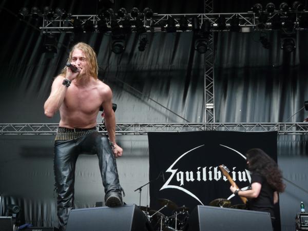 Weniger Gesabbel, mehr Mucke. Das schien das Motto zu sein, unter dem Equilibrium ihren Auftritt auf der Mainstage antraten - und sie taten Recht damit. Eine knappe Stunde lang präsentierte der Fünfer mit einem bunten Mix aus alten Titeln von "Turis Fratyr" und neuen Krachern vom jüngsten Album "Sagas", ohne dabei viel Zeit mit langwierigen Ansagen zu verschwenden. Das zahlreiche Publikum dankte es mit kleineren Moshpits zu "Unter der Eiche" und "Blut im Auge", ein paar Crowdsurfern zu "Unbesiegt" sowie bravem Mitsingen bei "Met", blieb aber alles in allem eher mittelmäßig. Mich hingegen rissen Equilibrium ziemlich mit: Gerade seit die Band sich mit "Sagas" aus dem engen Germanen-Metal-Korsett befreit hat, besticht die Band - auch live - mit Spielfreude, Originalität, wie man sie im Genre oftmals vermisst. Das sahen ein paar "Zugabe"-Schreihälse ganz ähnlich. Und so legte die Band nach dem eigentlich letzten Titel, "Nordheim", noch den "Sturm" oben drauf. Ein echtes Brett von einem Auftritt!