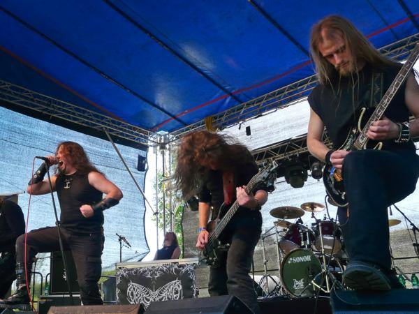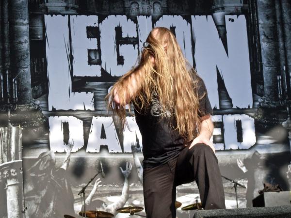 Legion of the Damned war die erste Band, die ich zu sehen bekam und auf die ich mich mit am meisten freute. Die Jungs begannen mit "Son of the Jackal", was beim eher mäßig vorhandenen Publikum auf grosse Begeisterung stieß. Frontmann Maurice tobte von Anfang an in seiner gewohnt aggressiven und keifenden Art über die Bühne. Auf die Frage: "Are you aggressive?" reagierte das Publikum eher verhalten, was aber morgens um 14 Uhr niemanden wundern sollte. Von ihrem neuen Album "Cult of the Dead" gab es auch den namengebenden Song, der es so richtig in sich hat. Auch die folgenden Songs "House of Possession" und "Diabolist" brachten die Mähnen zum Fliegen. Bei der verkürzten Version von "Werewolf Corpse" legten sich Band und Banger so richtig ins Zeug, inklusive diverser kleinerer Moshpits. Zu guter Letzt wurde der Masse "Legion of the Damned" aufgetischt, welches mit einer ausgewachsenen Wall of Death begann und mit glücklichen Metalfans endete.