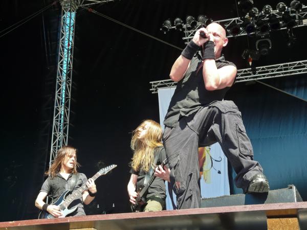 Zu Mercenary war es dann vor der Mainstage schon gehörig voll: An die tausend Besucher waren gekommen, um sich eine Dosis Heavy Metal-Action mit gelegentlich harscheren Vocals abzuholen. Die sechs Dänen legten sich auch gleich heftig ins Zeug und gaben sich wirklich eine Menge Mühe. Umso ärgerlicher, dass das nicht die verdienten Früchte trug, denn der Mann am Mischer hatte sich wohl ebenfalls mächtig angestrengt, um den Sound so matschig wie nur irgend möglich zu machen. Auch das Publikum konnte nicht so recht warm mit der Band werden, allen Versuchen zum Trotze. Am Ende stand daher leider ein wirklich solider Gig, mit dem aber weder das Publikum, noch die Band so wirklich glücklich gewesen sein dürften.