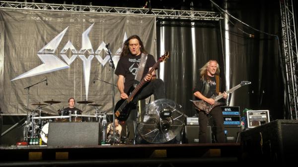 Auf Sodom habe ich mich gefreut wie ein kleines Kind auf seine tägliche Dosis Ritalin. Dann legten sie endlich los und das gleich mit Krachern wie "Napalm in the Morning" und "Outbreak of Evil", bei denen gleich die ersten Surfer zu sehen waren. Erhobene Fäuste und Sodomrufe aus der Meute bis in die letzte Reihe ließen mich die Begeisterung der Fans spüren. Bei "Wachturm" gab es ein gemeinsames Singen vom Allerfeinsten und während "The Saw is the Law" flogen die Mähnen, dass es eine Freude war zuzusehen. "Agent Orange" brachte mich doch zum Schmunzeln, da die Menge im Eifer des Gefechts jedesmal ihren Einsatz verpasste und Onkel Tom nur noch den Kopf schüttelte. Mit dem folgenden Statement gaben sich die alten Herren des Festivals sehr bodenständig - "Wir sind ganz normale Metalfans" - und wollten nach dem Auftritt runter kommen und mitfeiern. Als nächstes kam "City of God" von ihrem etwas aktuelleren Album "Sodom", bei welchem leider jede Melodie vom Bass gefressen wurde, was die Bangenden aber nicht störte. Auch die folgenden Titel "Blasphemer", "Remember the Fallen" und "Bombenhagel" wurden von der Basedrum zerknüppelt... schade, es fing so gut an. Am Ende gab es noch ein einfaches "Danke" als Verabschiedung und das war's dann.