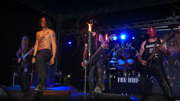 Blau ausgeleuchtete Bühne, Fackeln, Flaggen - Varg hatten gehörig in die Trickkiste gegriffen, um ihre Show so atmosphärisch wie möglich zu machen. Bemalt und bemüht startete man in einen Auftritt, der von der ersten Sekunde an mitriss: Bis hoch zur Burg und bis hinten zum Mixer klatschte ein Meer aus Armen und Händen die Lieder mit, und auch das Sauflied "Skål" wurde so laut mitgesungen, wie ich es bisher auf dem Festival noch nicht gehört hatte. Kleine Wehmutstropfen blieben allein die reichlich breiige Soundabmischung und einer der Titel, während dessen ellenlangen, faden Intros die Band nur doof in der Gegend herumstand (das hätte man auch schneiden können). Ansonsten nutzte die Band mit Titeln wie "Asatru", "Wolfszeit" oder der Zugabe "Heldentod" jede Gelegenheit, um auch noch das Letzte aus ihrem Publikum herauszuholen. Ein toller Auftritt!".