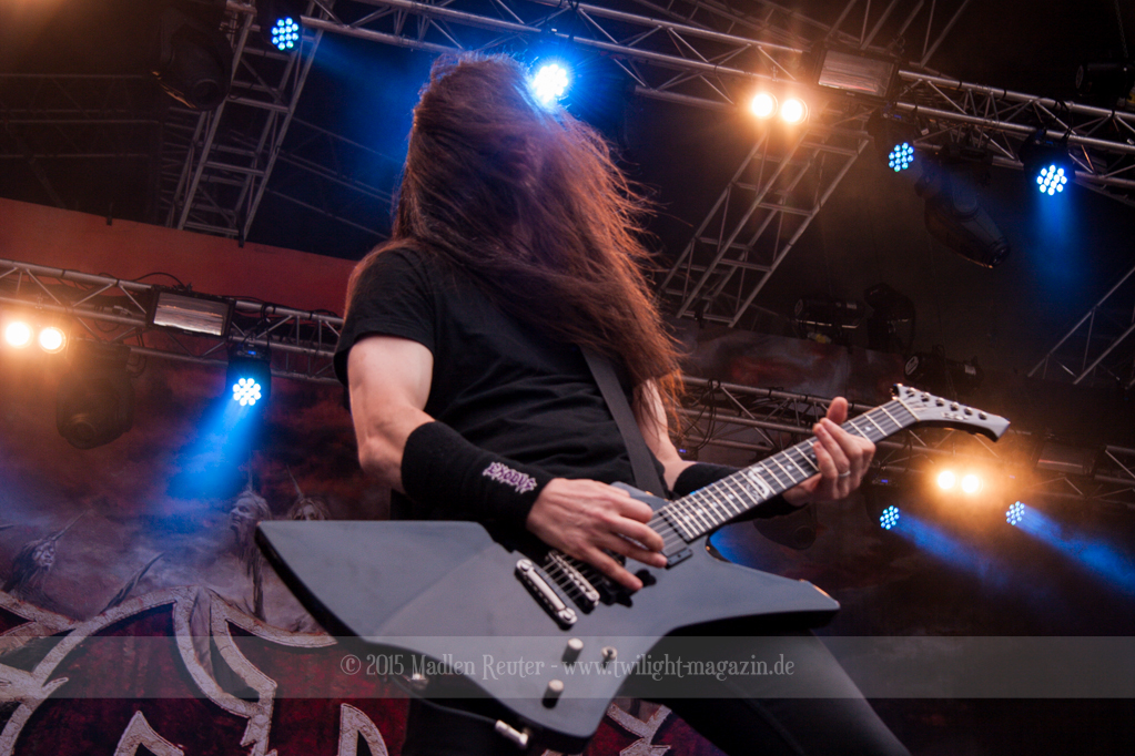 Dann war es auch schon Zeit für das erste Highlight des Tages – EXODUS. Ich muss gestehen, ich konnte sehr lange nichts mit dieser Band anfangen. Seit einem vorangegangenen Konzertbesuch, hat sich meine Meinung allerdings stark geändert. Ein gewaltiges Thrash Metal Feuerwerk, bestehend aus einer angenehmen Mischung von Klassikern und neuen Tracks, wurde für das Publikum abgefeuert. Dabei blieb kaum jemand ruhig stehen und der Zuschauerraum verwandelte sich bald in einen wahren Hexenkessel. Der extrem fette Sound unterstrich die Größe dieses Auftritts noch. Aber auch lobend sei der Einsatz von Nebel und Licht erwähnt – Da wurde nicht nur dem Ohr eine Freude geboten.